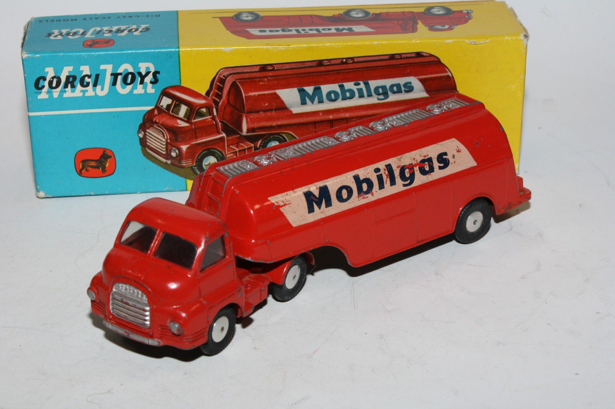 A nice example of this early issue 1950's-60's Corgi model. Original paintwork is good but with some chips, please study the photos for exact condition. Perfect original tyres on smooth hubs, crystal clear windows, original Mobilegas livery decals with some minor losses. Mint underside.