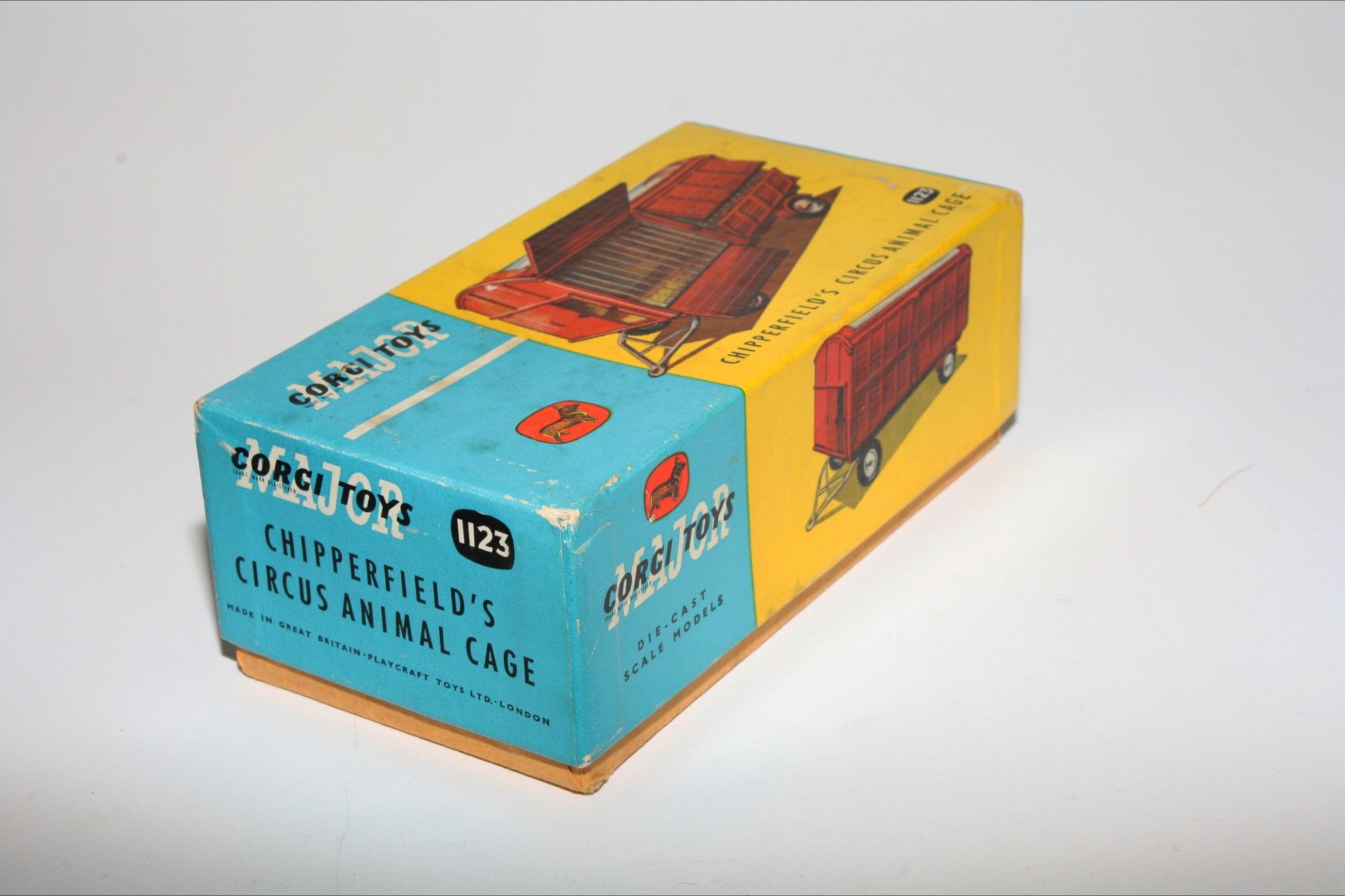 Comes with its original earlier lift off lid yellow and blue carded box which is in good condition and includes original packing piece, nice and firm with good colours, just some light wear to corners. Please study the photos.