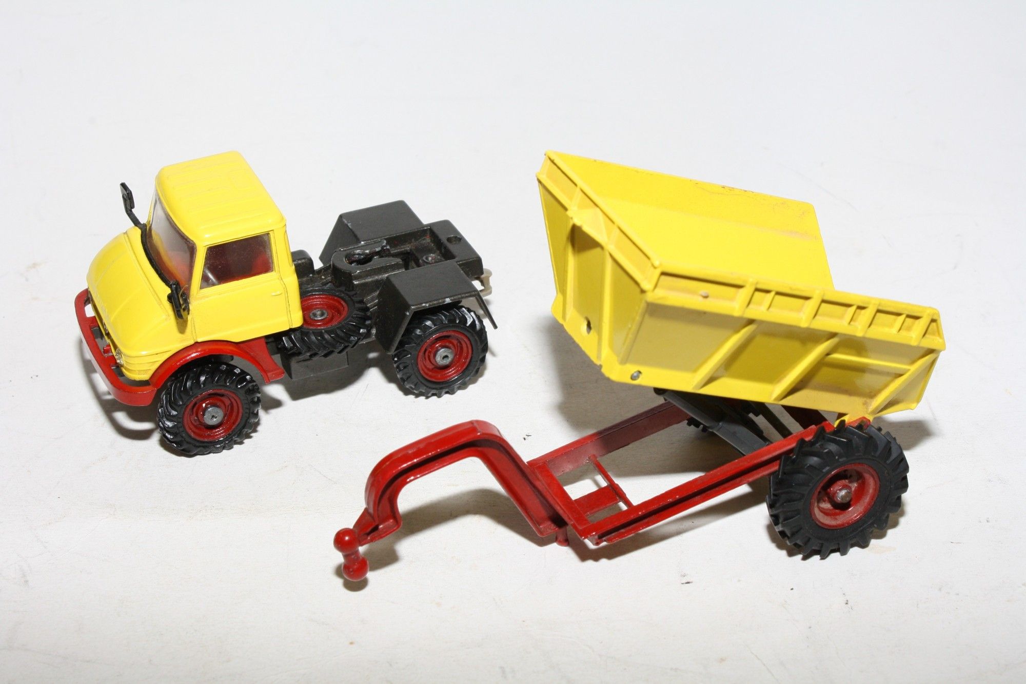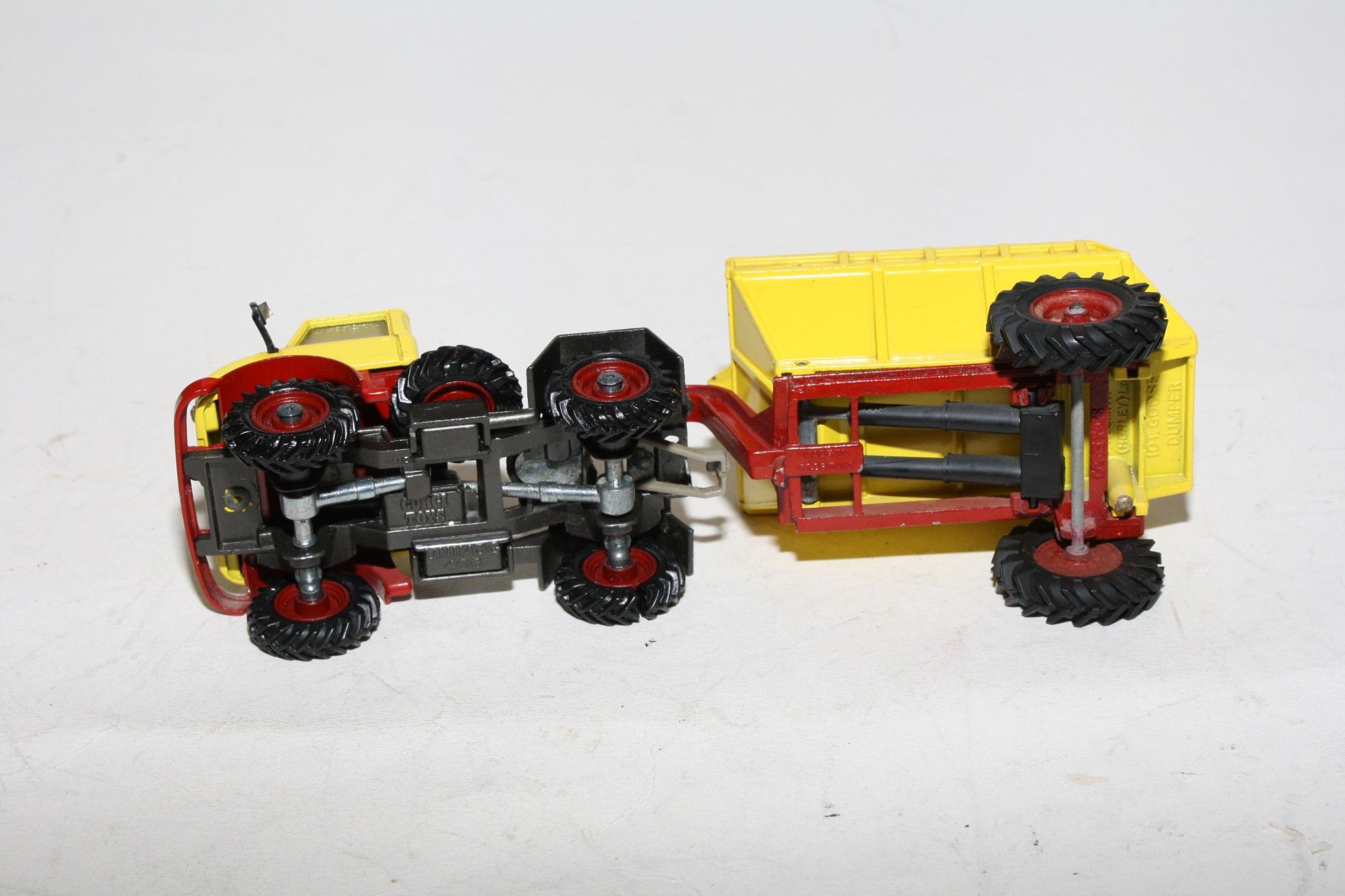 A superb example of this Corgi model. Gleaming original yellow and red paintwork is virtually mint, please study the photos for exact condition. All perfect hubs and tyres, windows good, one side window misty, red interior, mirrors, jewelled headlights, perfect Goose dumper. Mint underside.