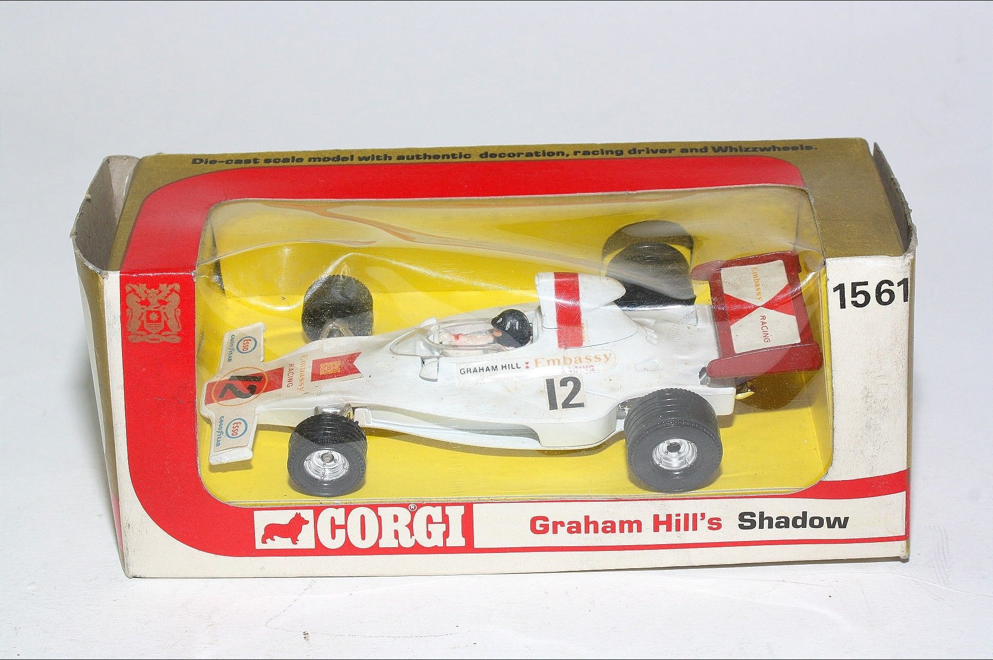 Part of a collection of vintage Corgi F1 cars I'm currently listing. Gleaming original paintwork in near mint condition, please study the photos for exact condition. Whizzwheels, original racing numbers and decals are mint. Graham Hill figure, cockpit glass all superb, mint underside