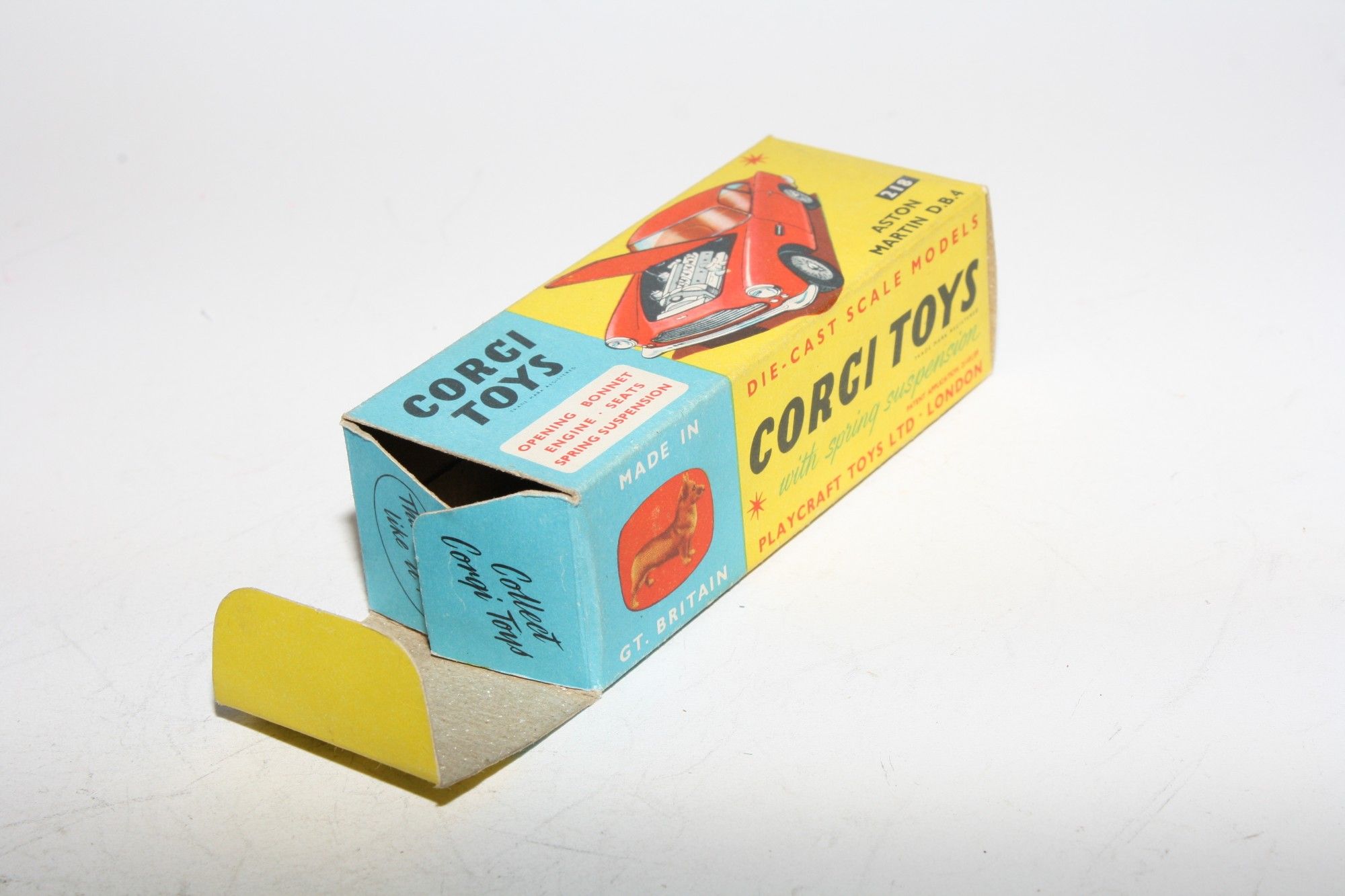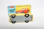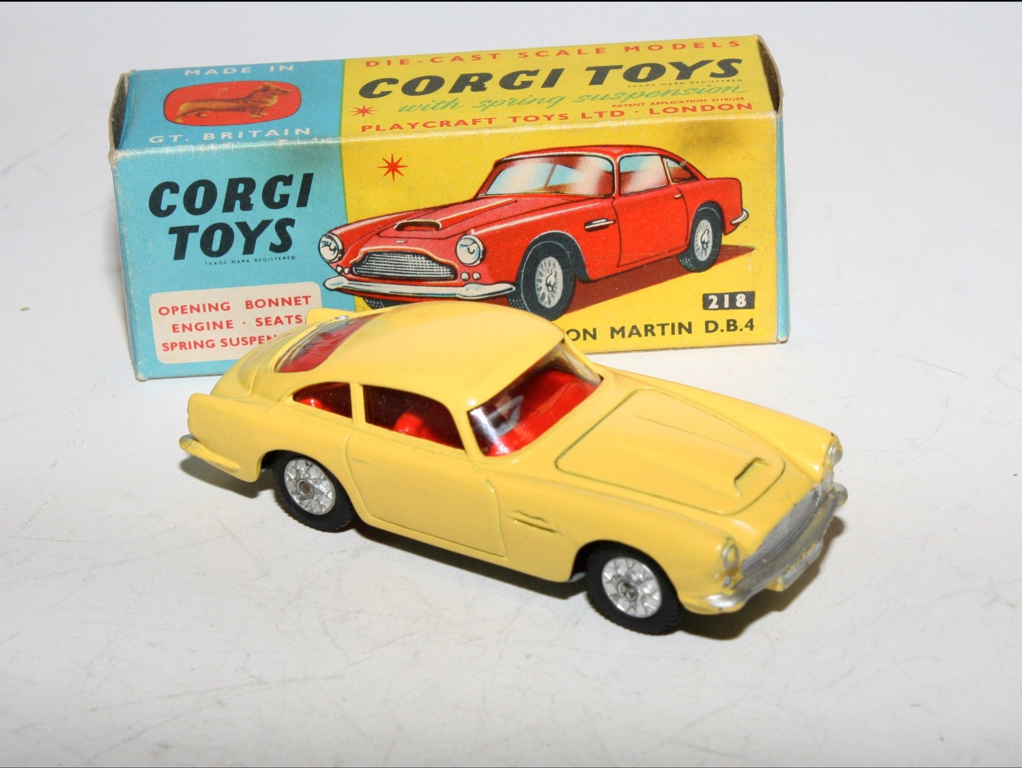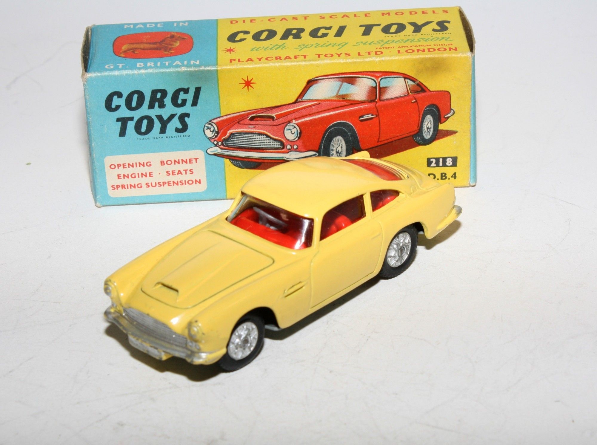 A superb example of this vintage Corgi. Part of a lovely collection recently acquired from a client in Italy. Never used. Gleaming yellow paintwork is virtually mint, just a couple of fleabites, please study the photos for exact condition. Original tyres on rare criss-cross cast hubs, suspension has failed on o/s rear so sits a little low on that corner, crystal clear windows with red interior, opening bonnet and mint gloss grey baseplate,
