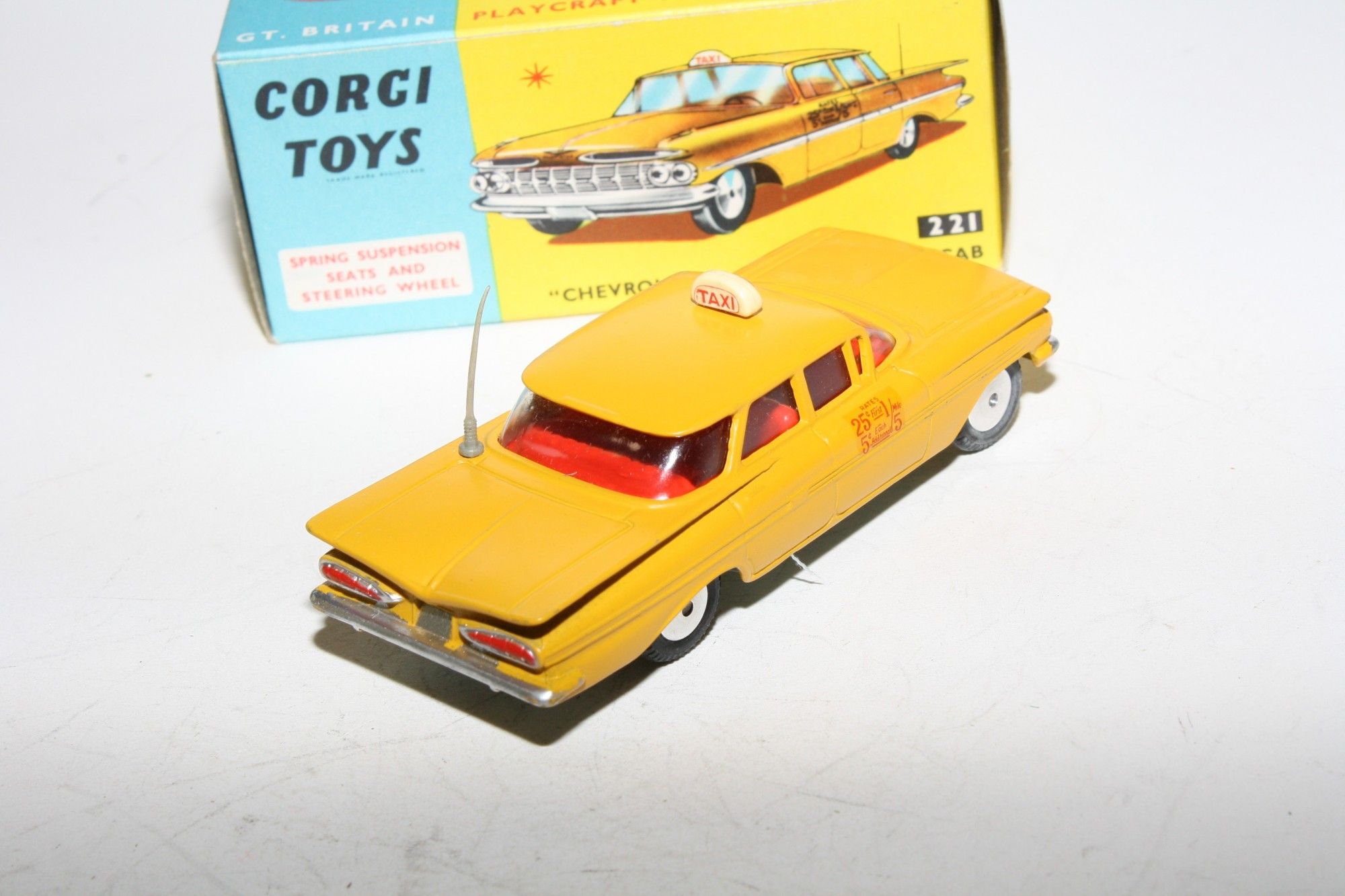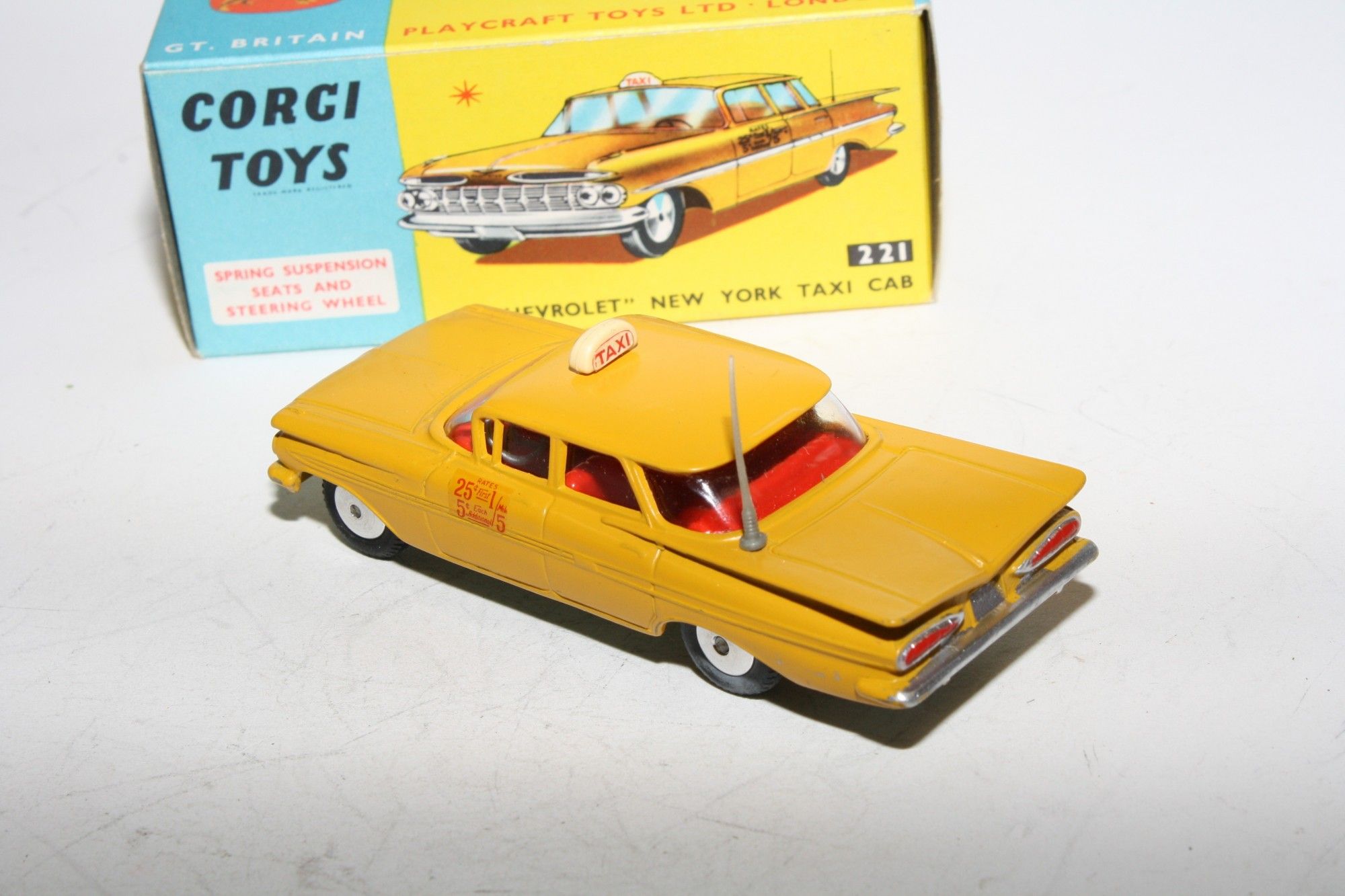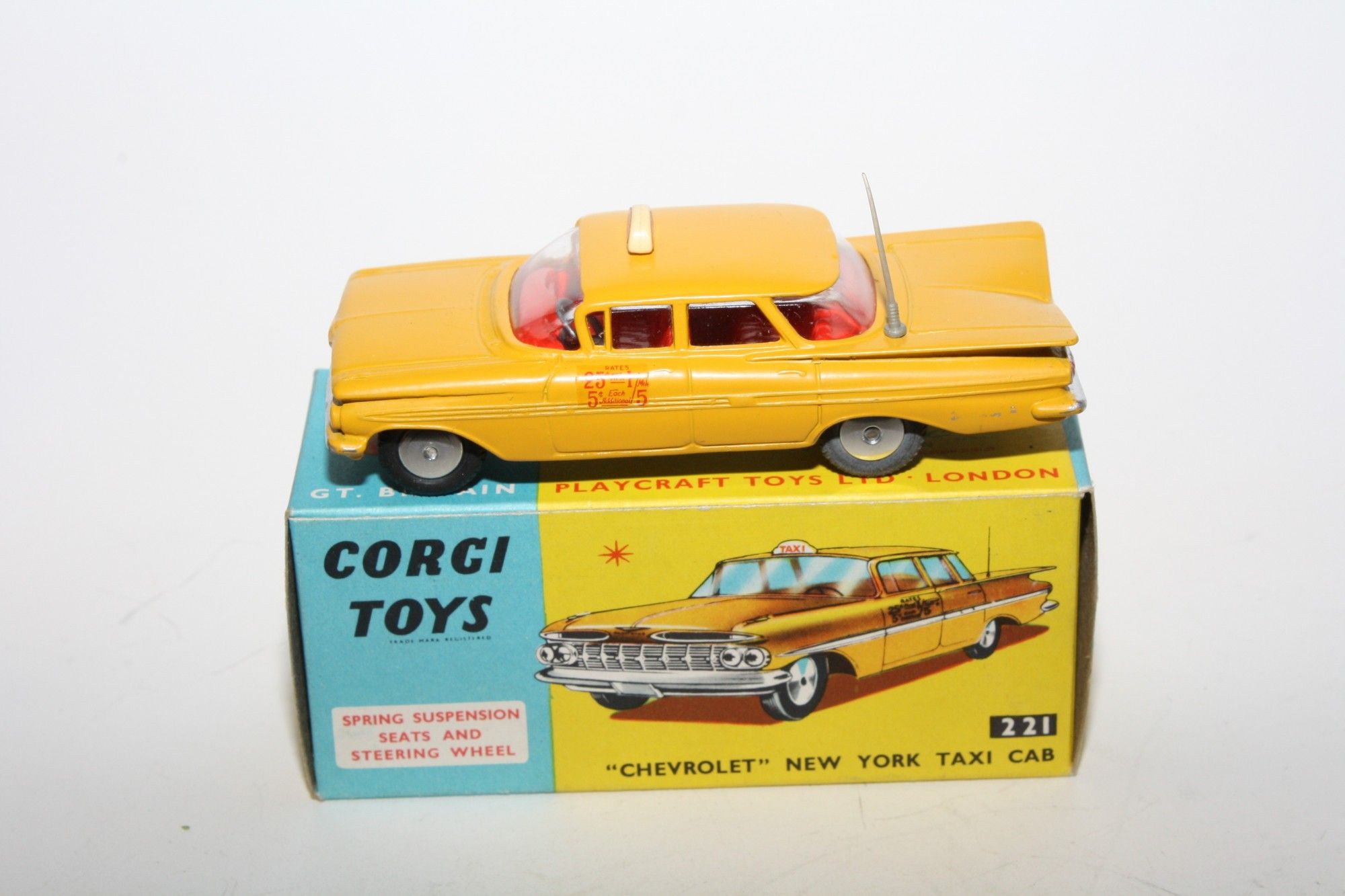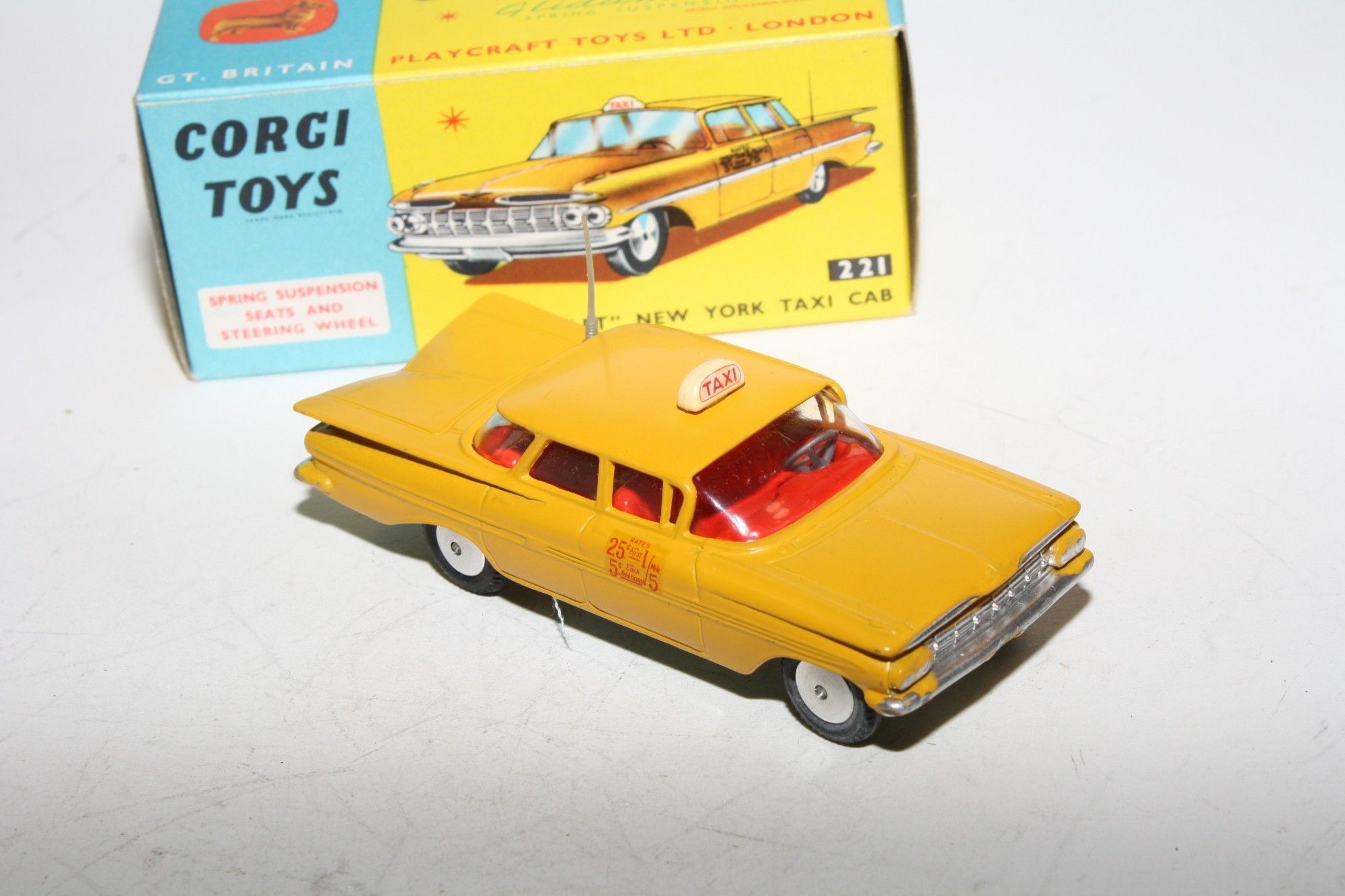 A superb example of this 1960's Corgi. Part of a wonderful collection recently acquired from a client in Italy. Original paintwork is mint, please study the photos for exact condition. perfect original tyres, smooth hubs, suspension, crystal clear windows with red interior, door decals as new, original aerial perfect and roof sign, mint grey underside.