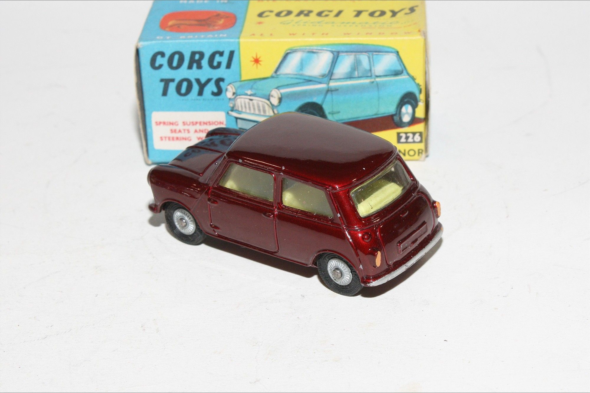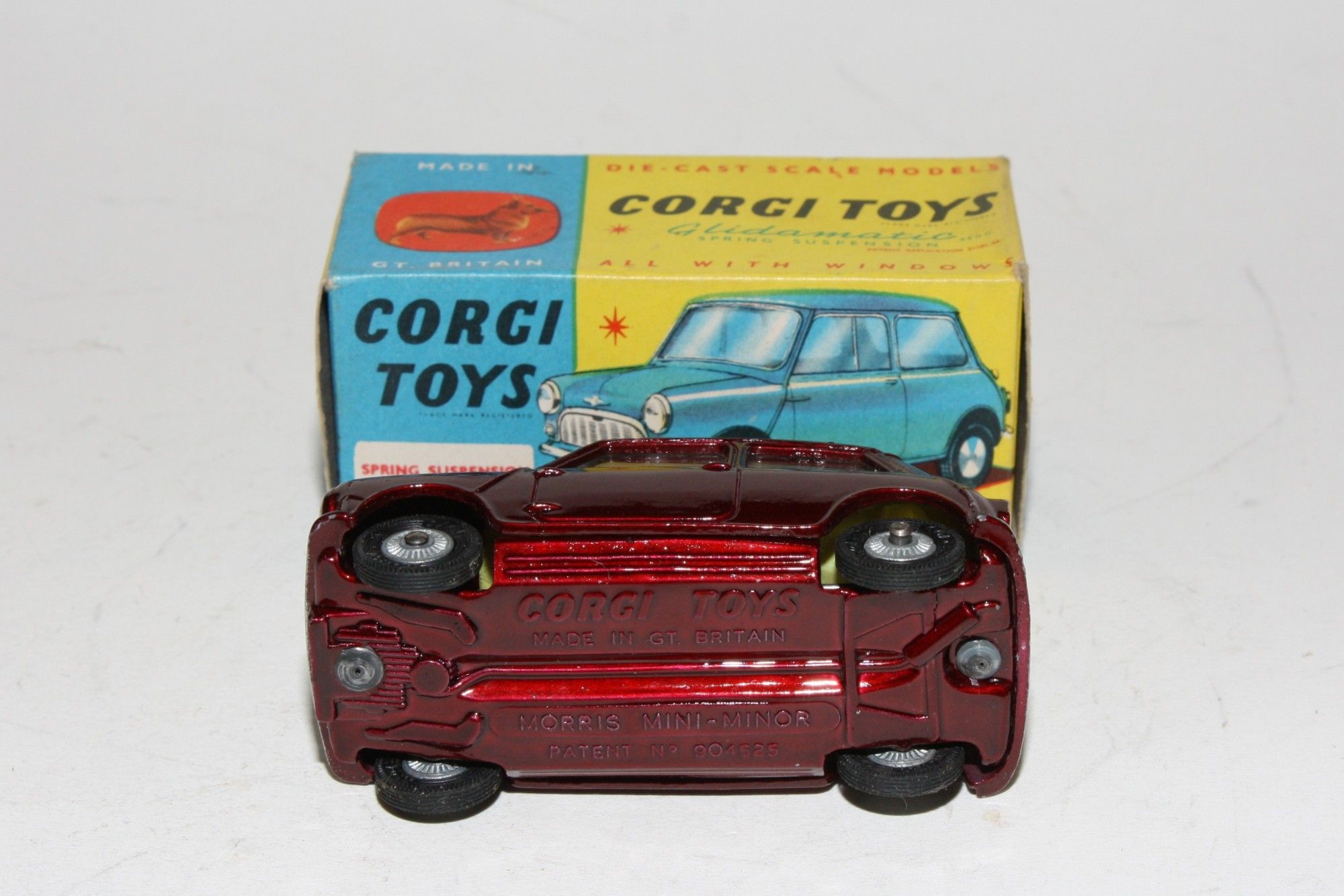 A superb example of this lovely Corgi. Gleaming metallic maroon paintwork is very near mint. a few tiny fleabites, mainly to roof edge. Please study the photos for exact condition. Perfect original tyres on cast hubs, strong suspension, crystal clear windows, lemon interior, baseplate mint.