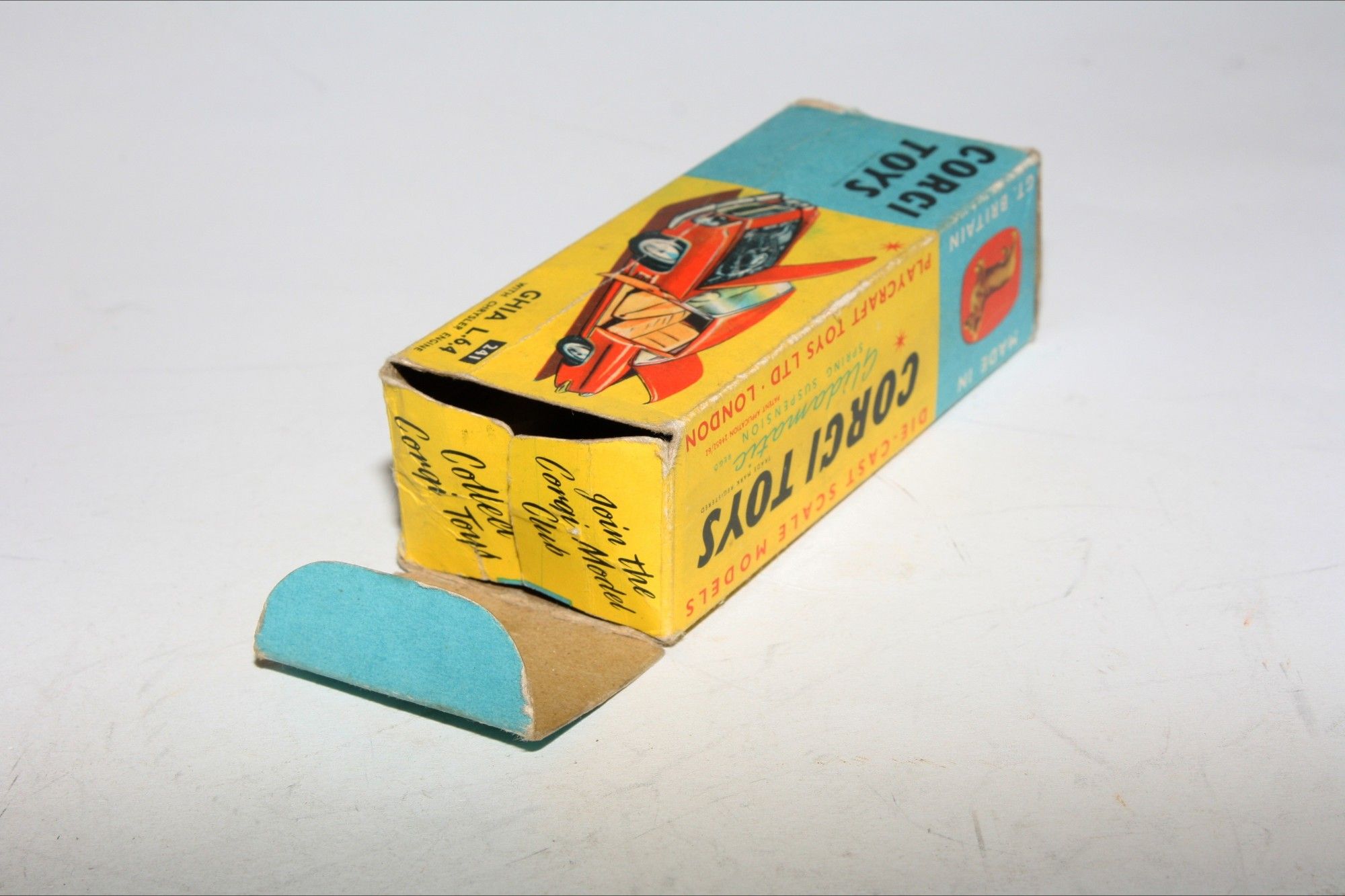 Comes with its original blue and yellow box which is in good condition but missing one inner flap with some creasing. Some wear to edges and corners, Good colours. Please study the photos.