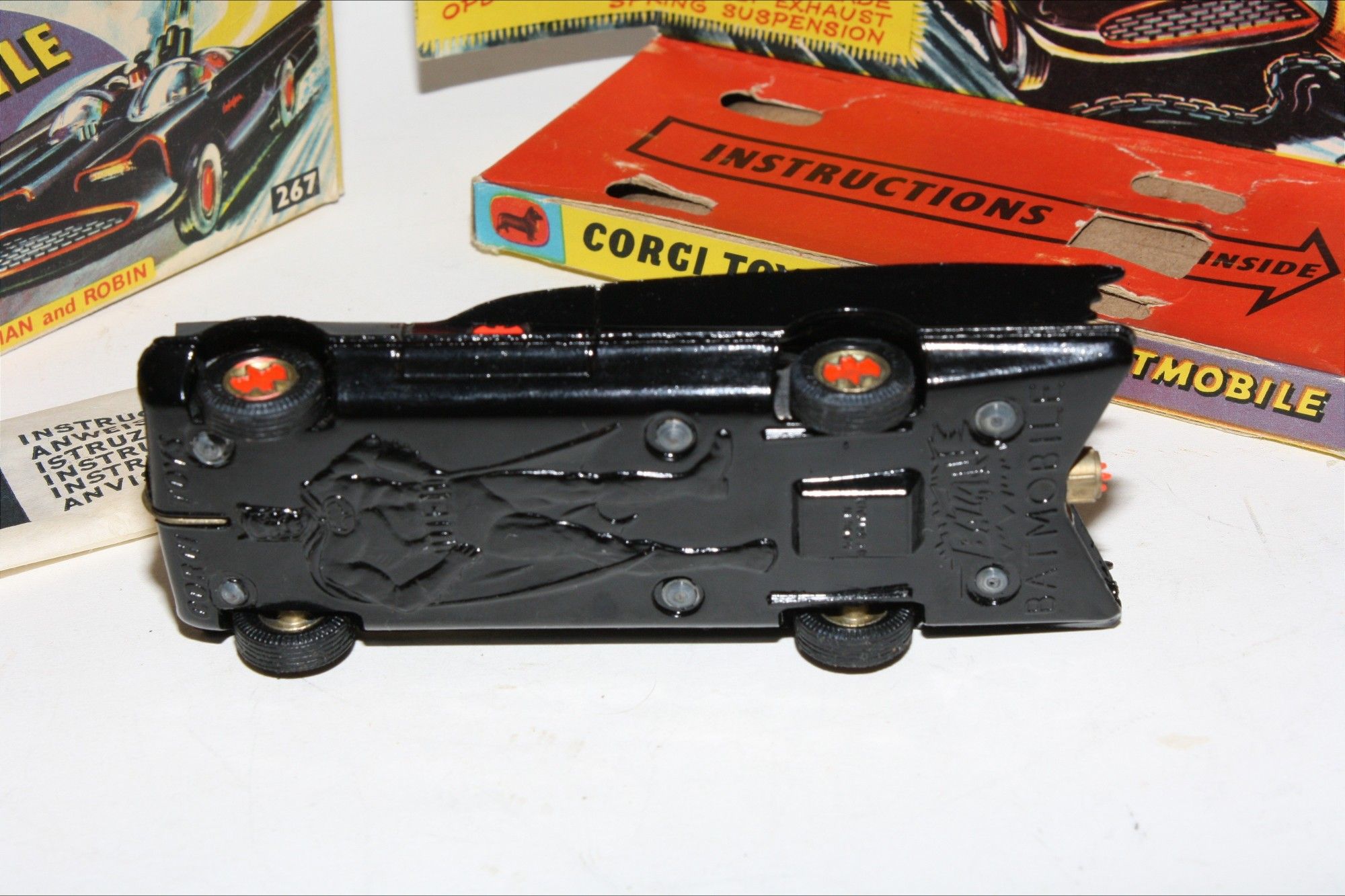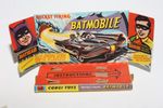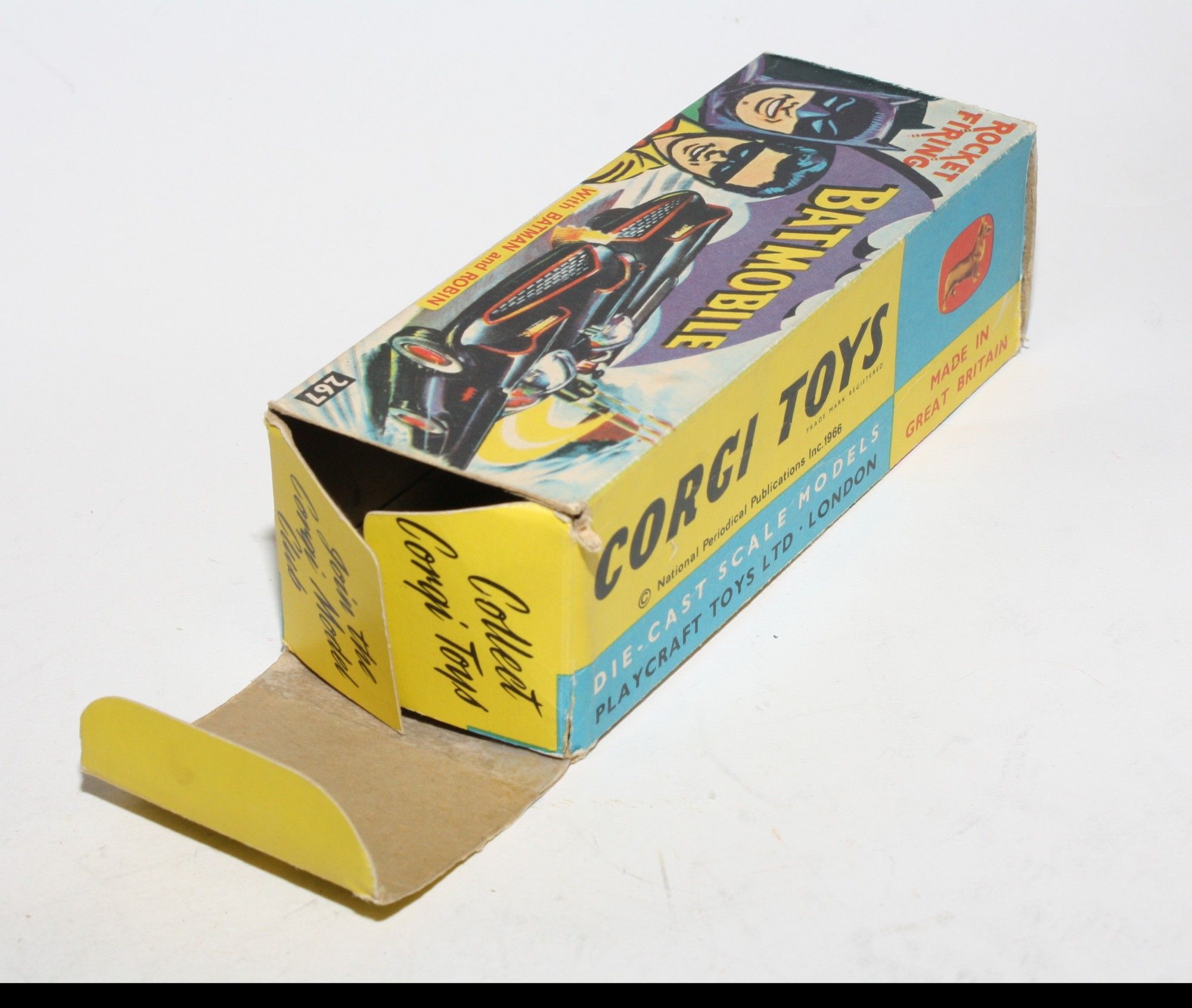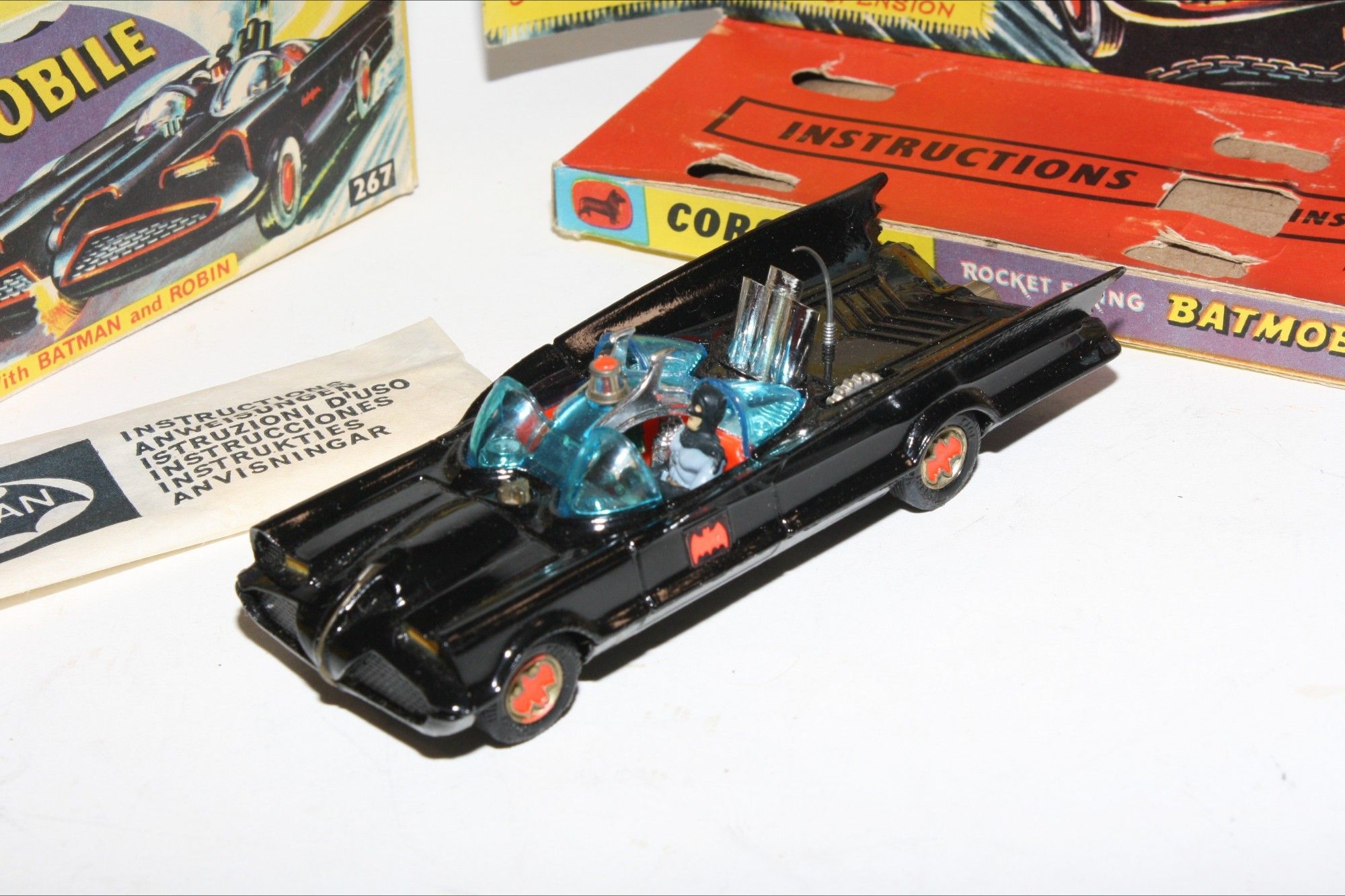 A superb 1st issue example of this iconic and fast appreciating model. Part od a nice collection straight from the collectors family. Gleaming original gloss paintwork in virtually mint condition, please study the photos. All perfect original tyres on red Bat logo hubs, good suspension all round (unusual), perfect blue cockpit windscreens with no cracks, original Batman and Robin figures present, roof beacon, all features working, pulsing flame, rocket launchers and chain cutter, Bat logos on doors present and excellent, original aerial present and superb underside.