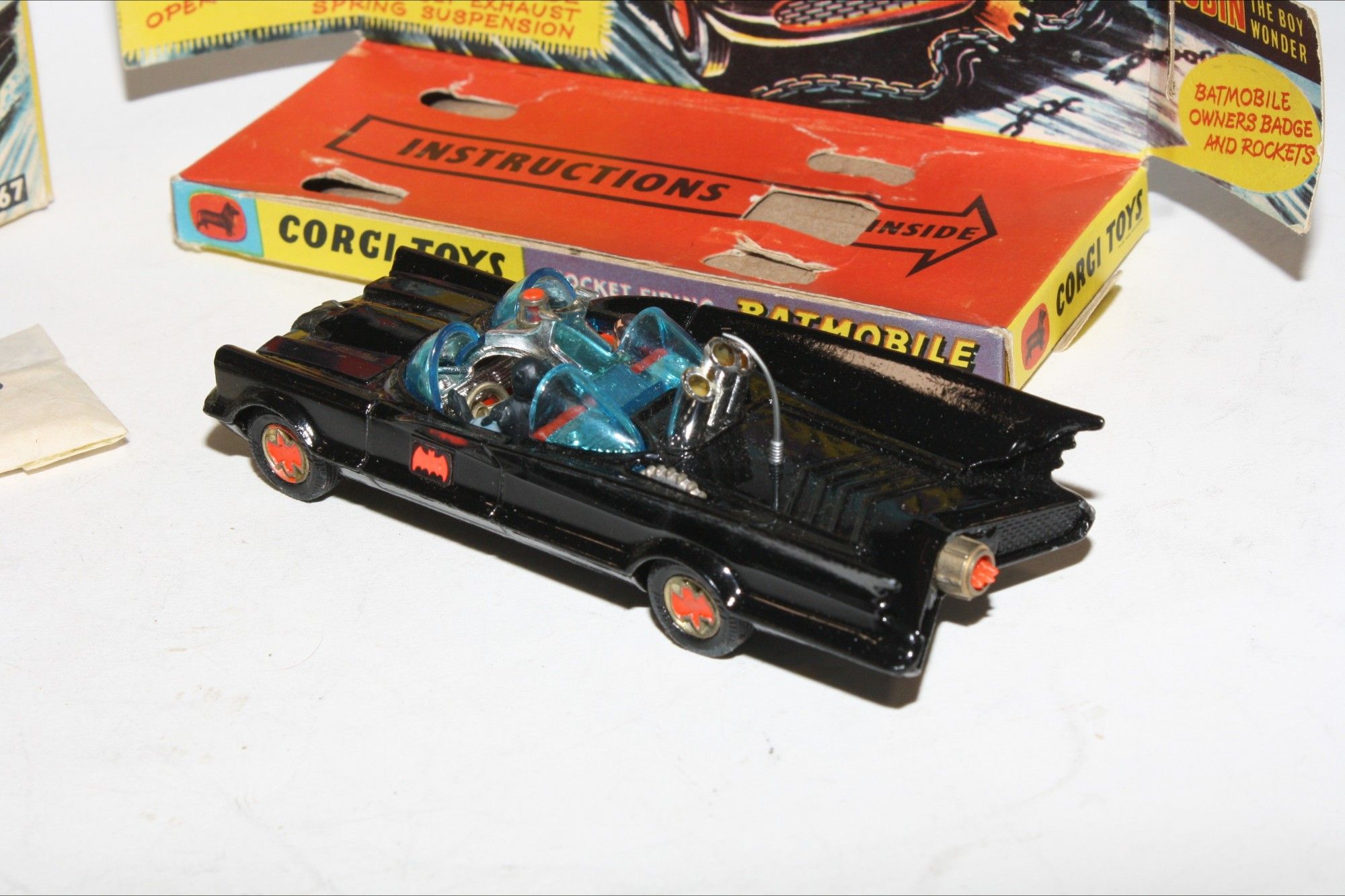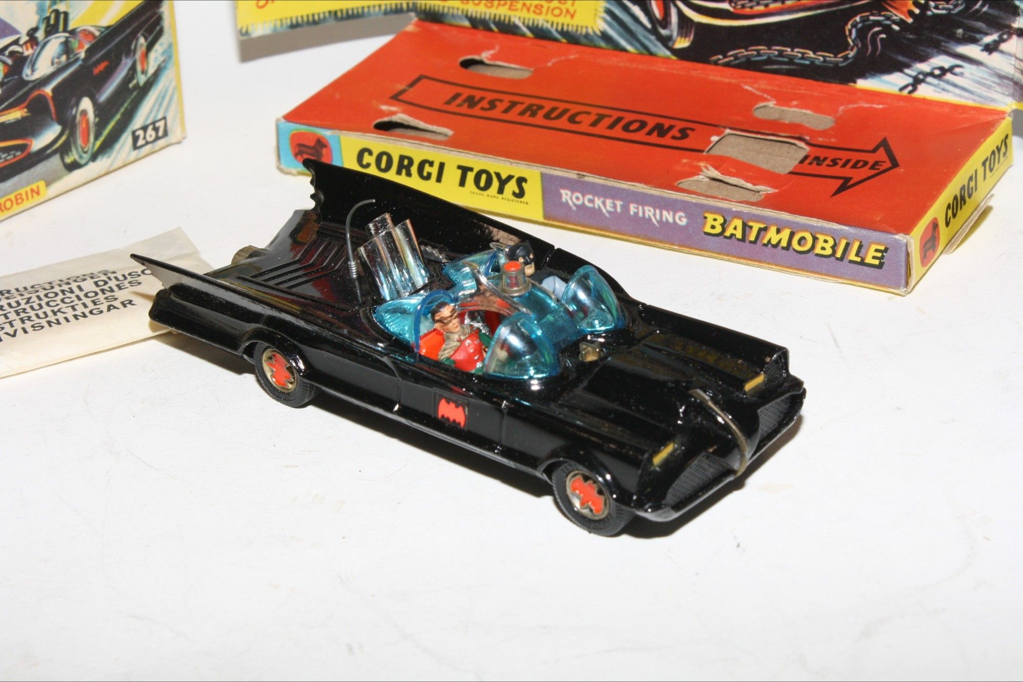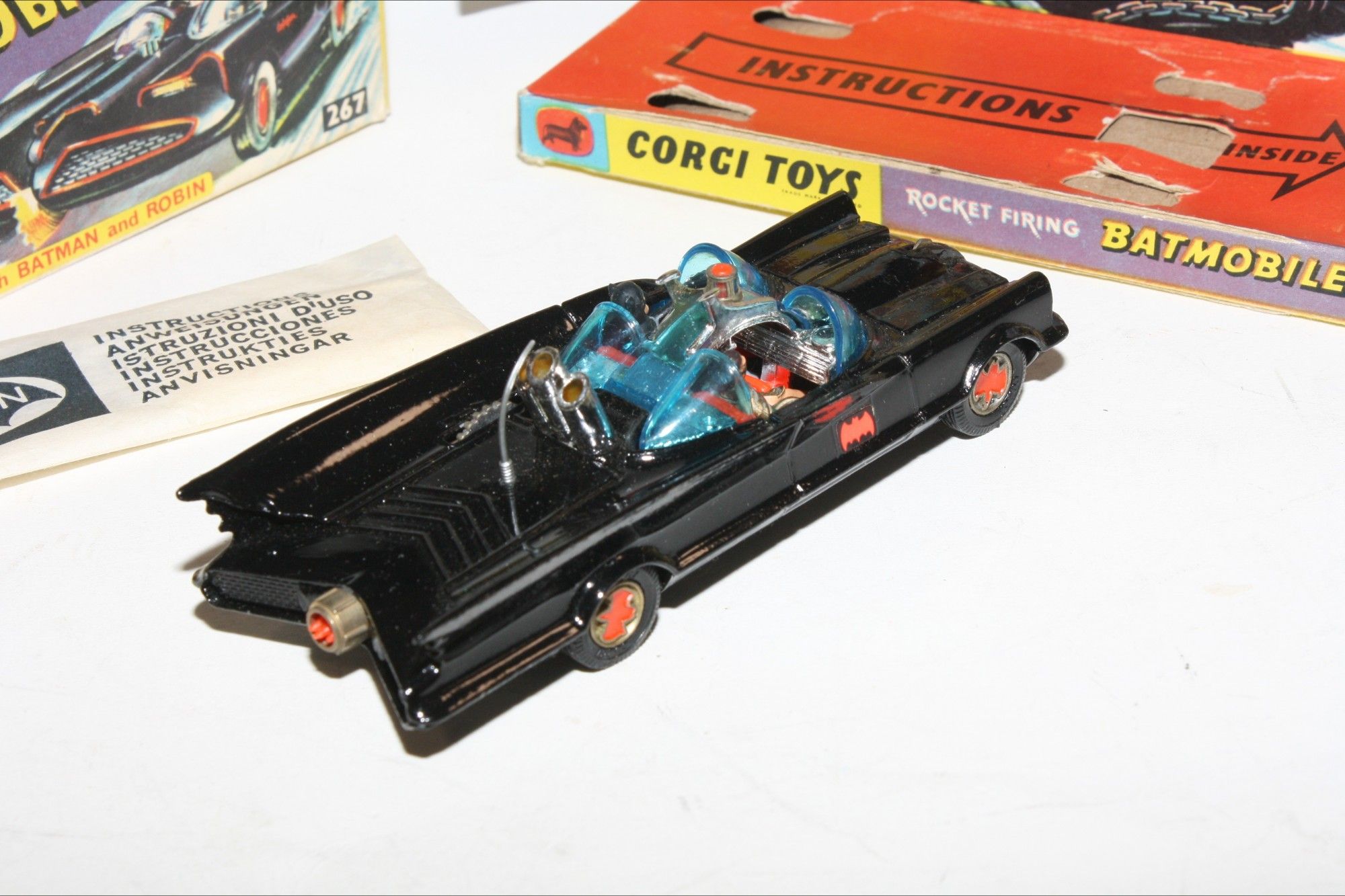 A superb 1st issue example of this iconic and fast appreciating model. Part od a nice collection straight from the collectors family. Gleaming original gloss paintwork in virtually mint condition, please study the photos. All perfect original tyres on red Bat logo hubs, good suspension all round (unusual), perfect blue cockpit windscreens with no cracks, original Batman and Robin figures present, roof beacon, all features working, pulsing flame, rocket launchers and chain cutter, Bat logos on doors present and excellent, original aerial present and superb underside.