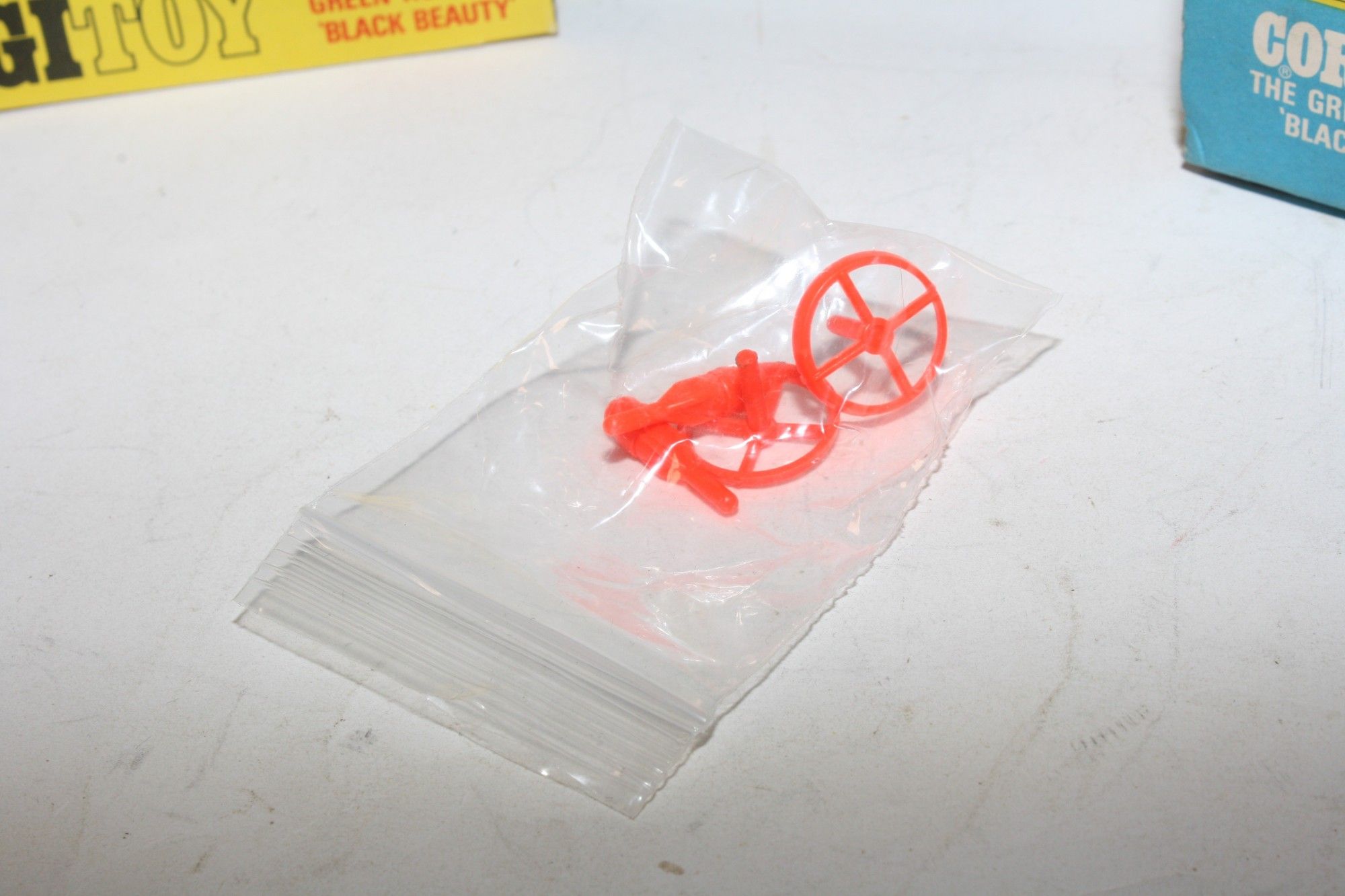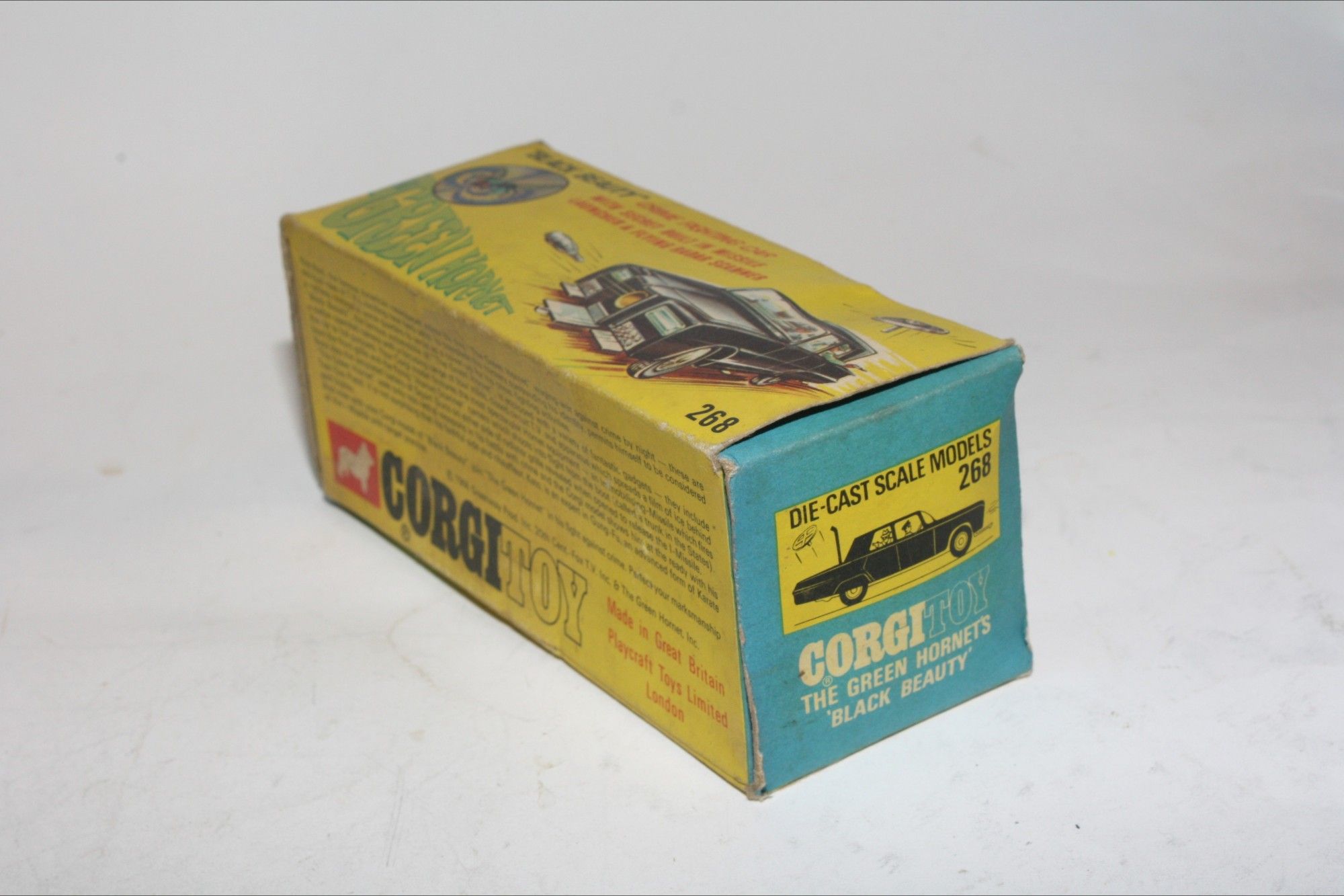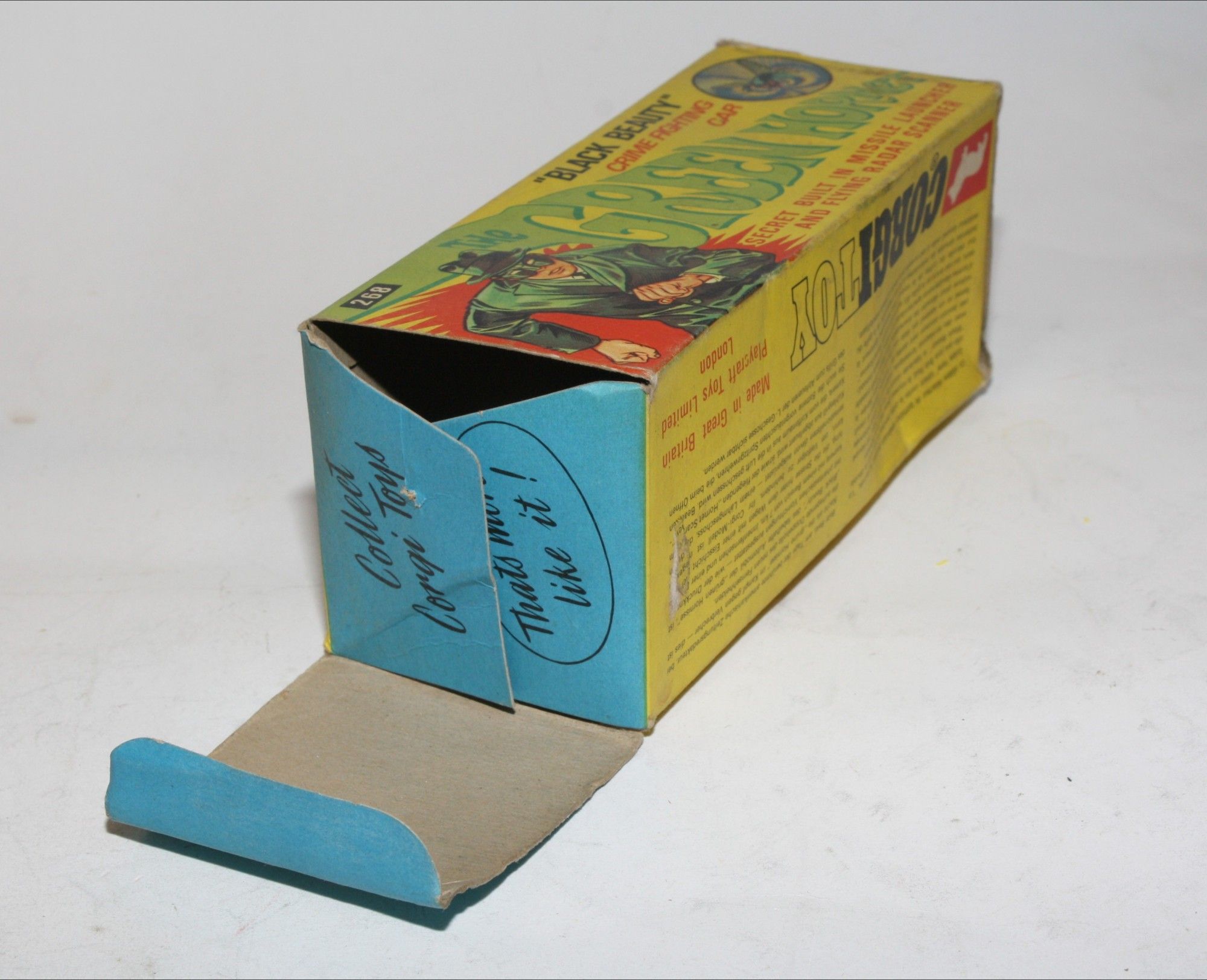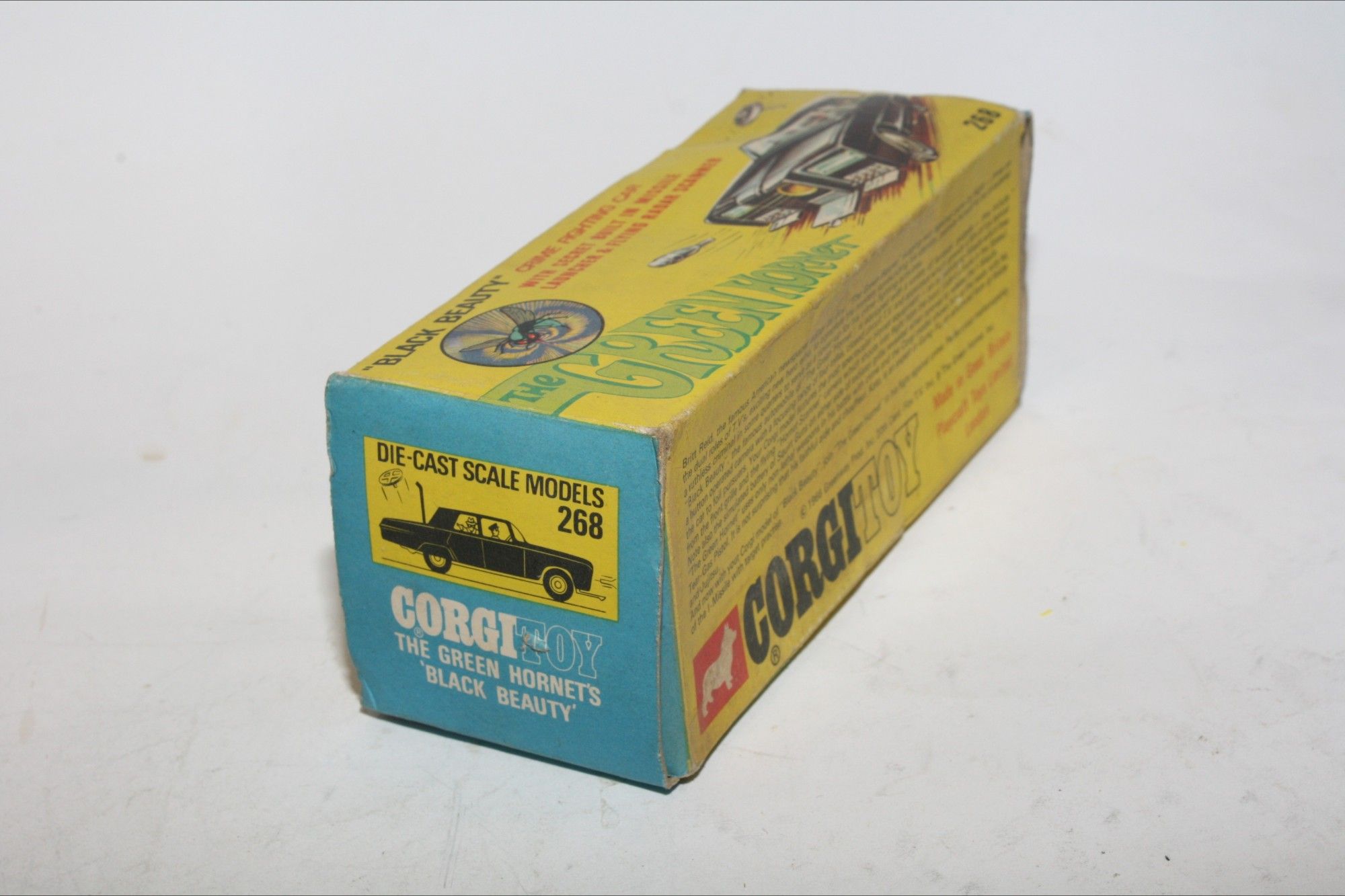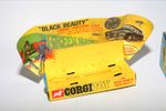 A superb example of this iconic Black Beauty model from the 1960's TV series The Green Hornet. Gleaming gloss black paintwork is excellent with a few small chips, please study the photos for exact condition. All original tyres on spun hubs, all windows, interior figures are perfect, original roof decal is mint, jewelled headlights, built in missile launcher and flying radar scanner features are working, excellent underside.