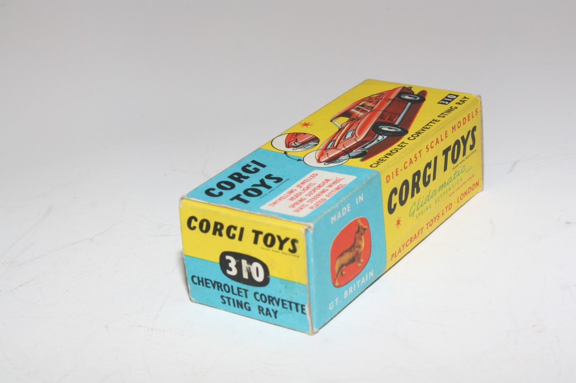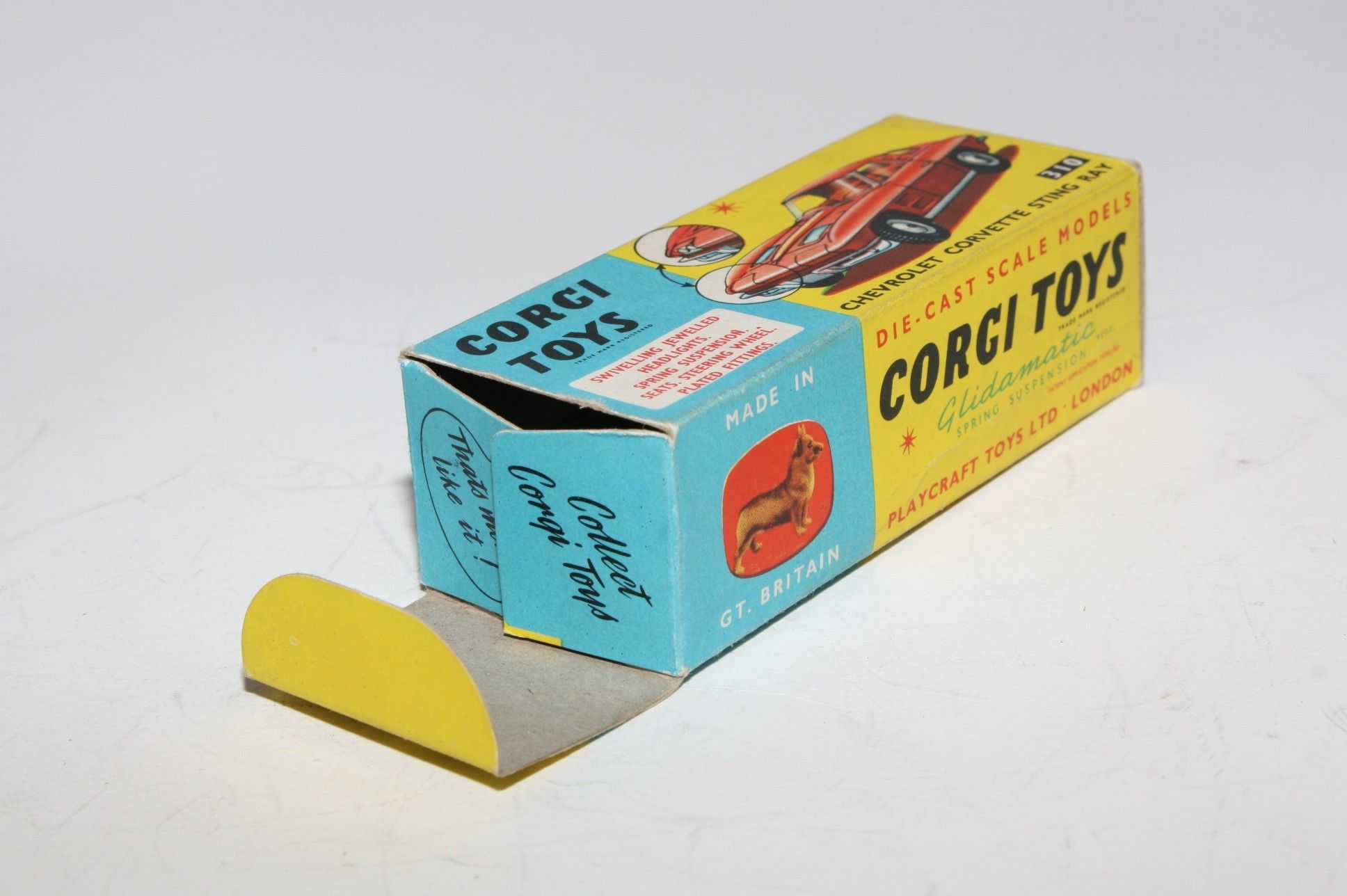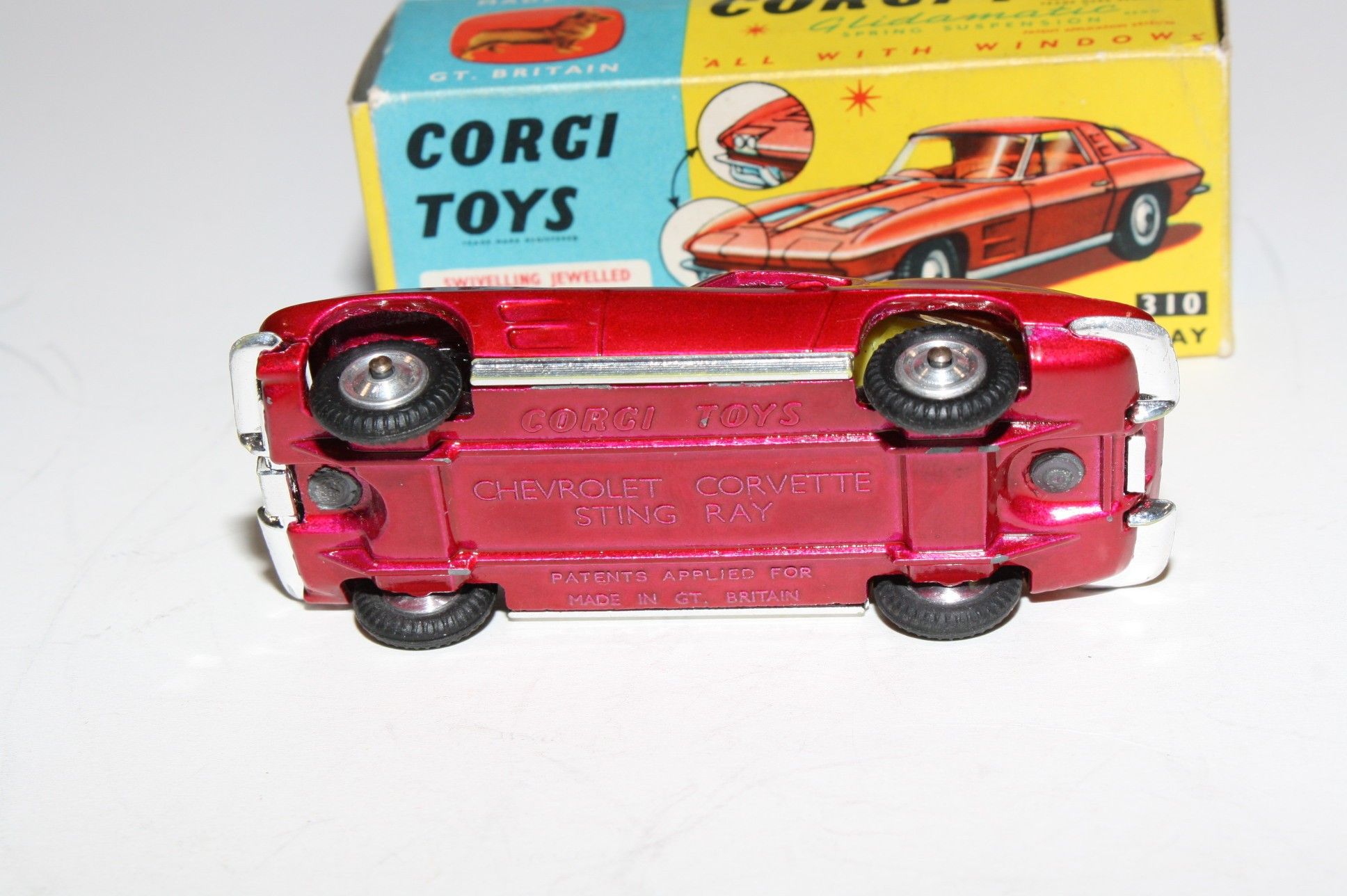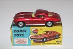 A superb example of this 1960's Corgi. Gleaming original metallic paintwork is virtually mint, please study the photos for exact condition. Original tyres on spun hubs, perfect suspension, crystal clear windows and yellow interior, jewelled headlights, good chrome, underside good with a little loss to raised edges.