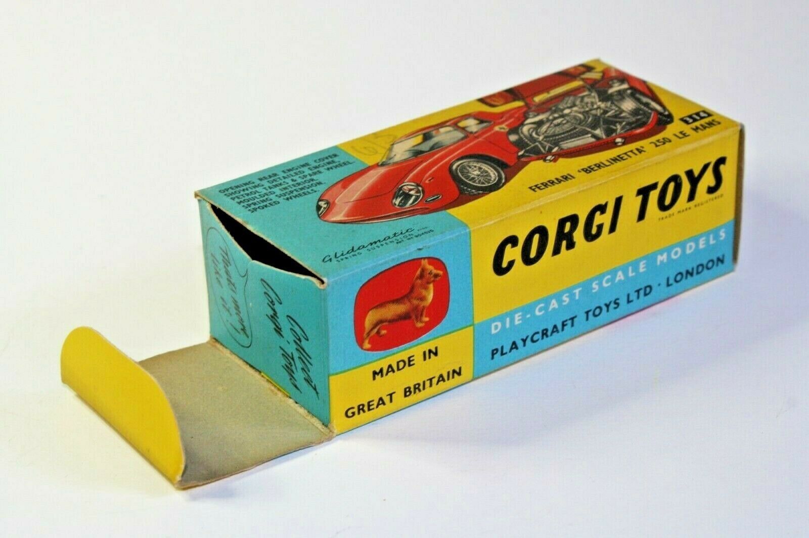Comes with its original yellow and blue card box which is all complete and in excellent crisp condition. 6/3 in faint pencil on one endflap and very slight creasing to the other, nice bright colours, please study the photos.