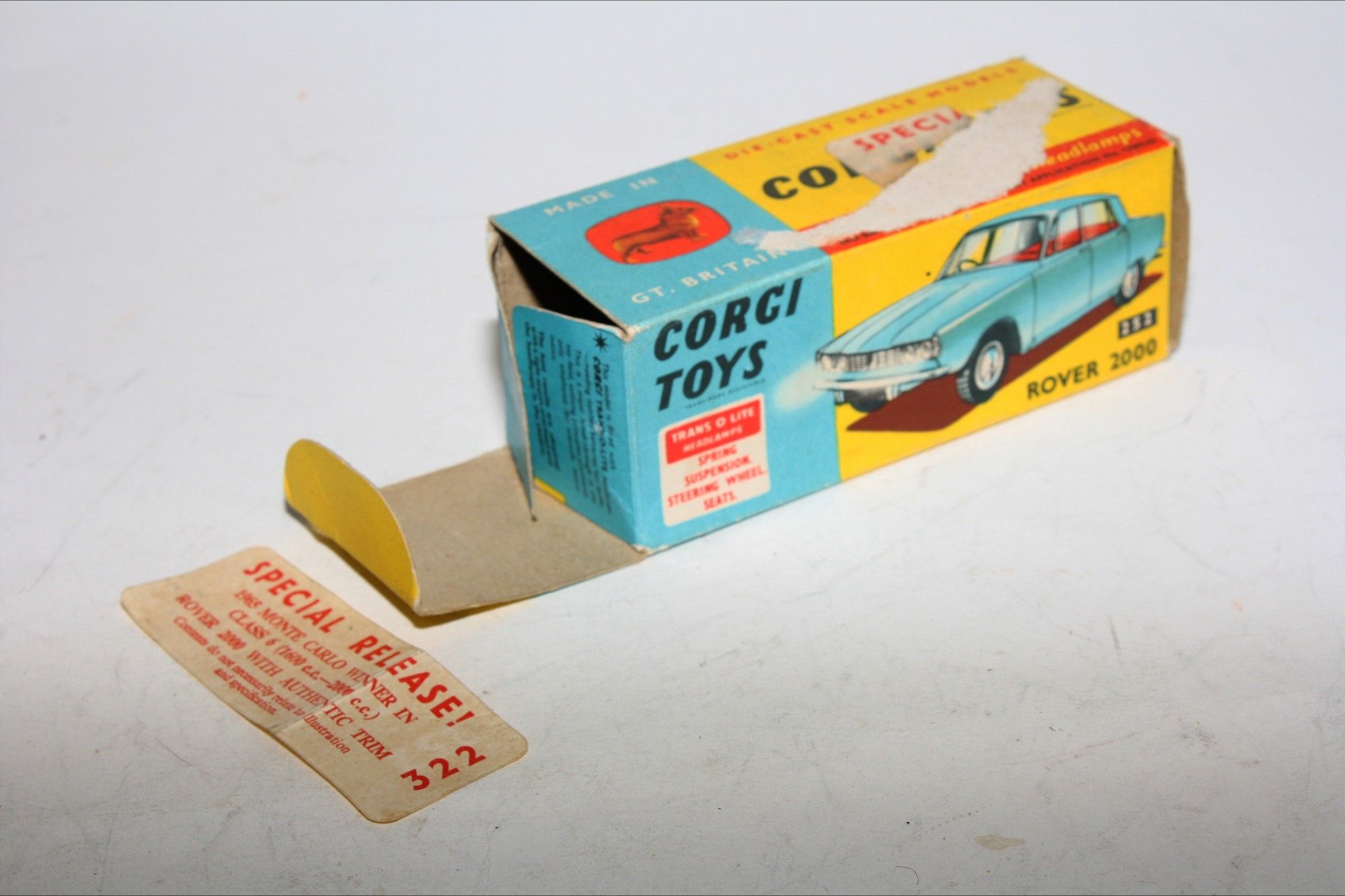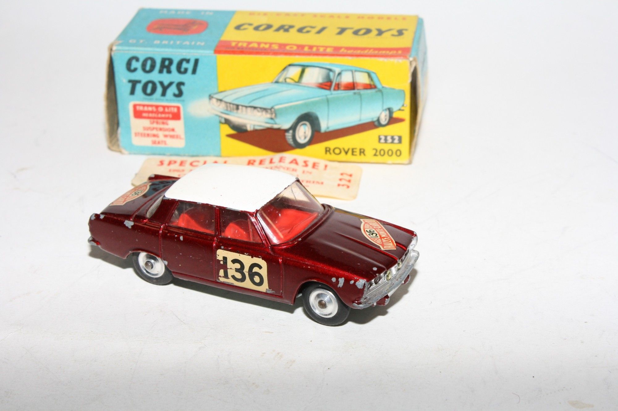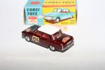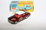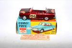 A good example of this sort after Corgi model. Gleaming original metallic deep red with white roof is good with some chips/flaking, please study the photos for exact condition. Original tyres on spun hubs, perfect suspension, crystal clear windows with red interior, steering wheel loose, original Monte Carlo rally decals excellent with some losses to 136 RN on doors, Trans-O Lites all perfect with jewelled driving lights. Excellent gloss grey underside.