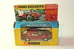 A superb example of this beautiful Corgi model. Gleaming metallic red paintwork is excellent with just a few very small chips, please study the photos for exact condition. Original tyres on Golden Jack removable cast hubs, all as new, perfect windows and cream interior, all decals, light covers all present, underside mint.