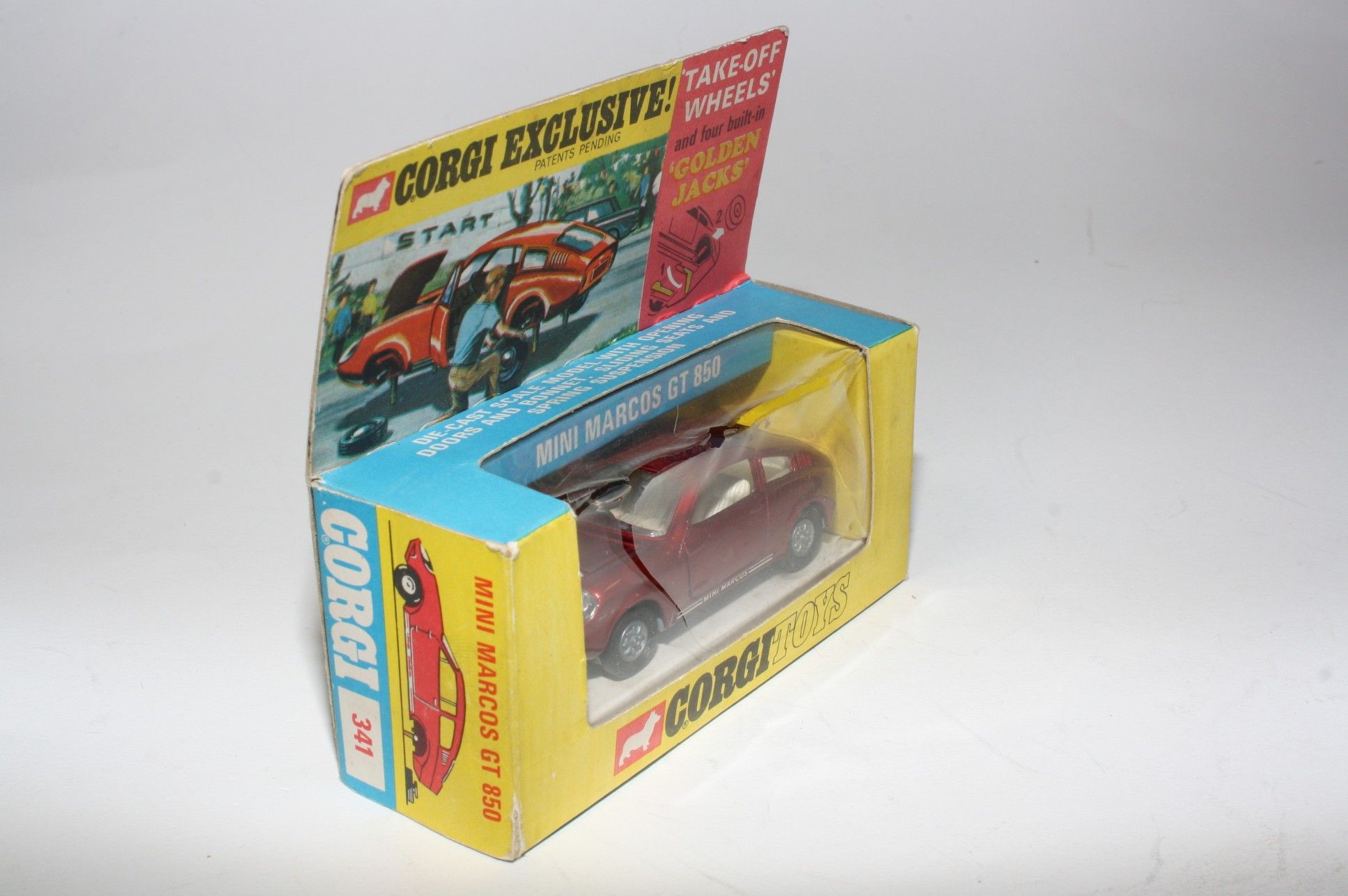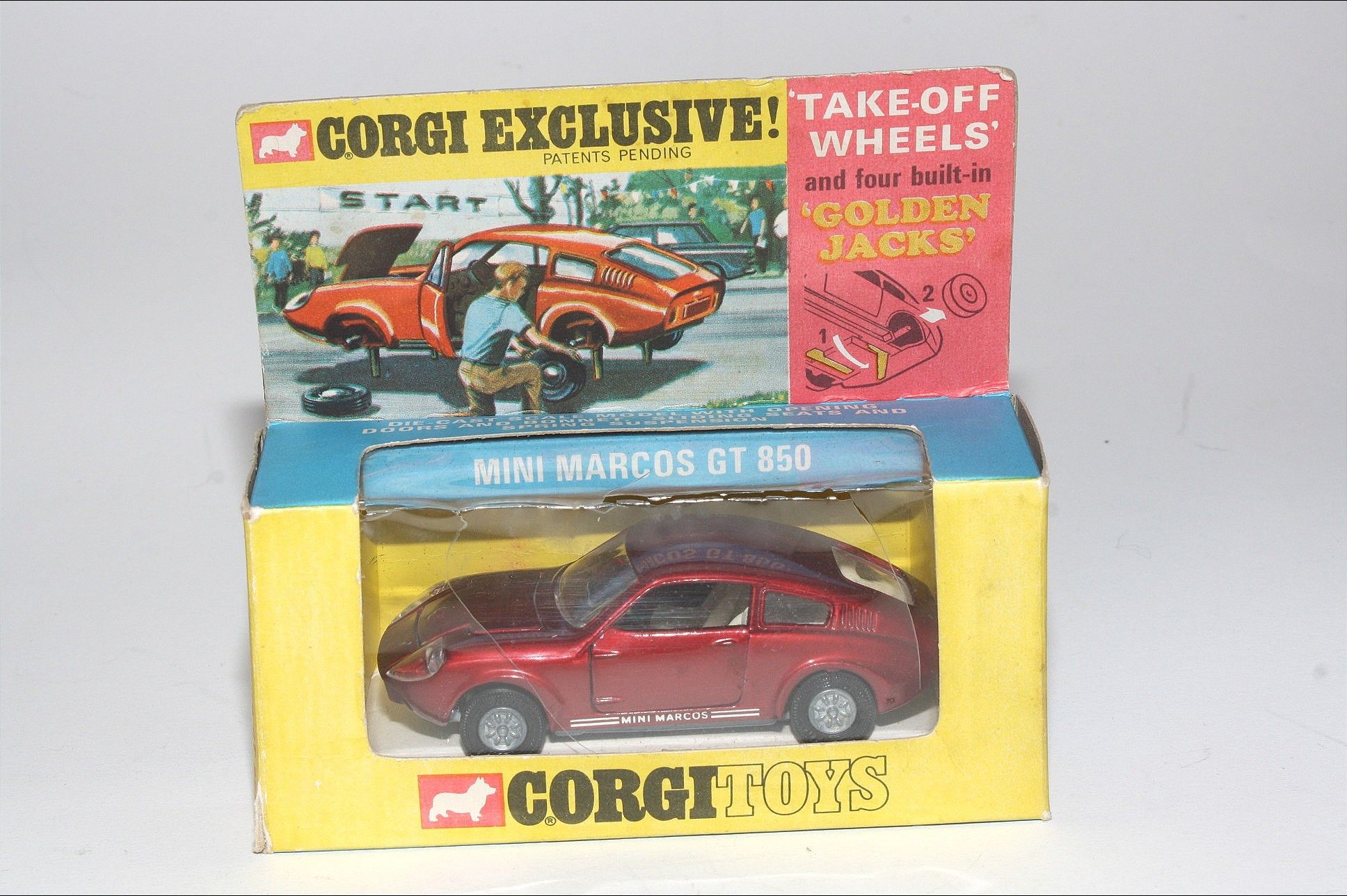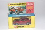 A superb example of this beautiful Corgi model. Gleaming metallic red paintwork is mint, please study the photos for exact condition. Original tyres on Golden Jack removable cast hubs, all as new, perfect windows and cream interior, all decals, light covers all present, underside mint.