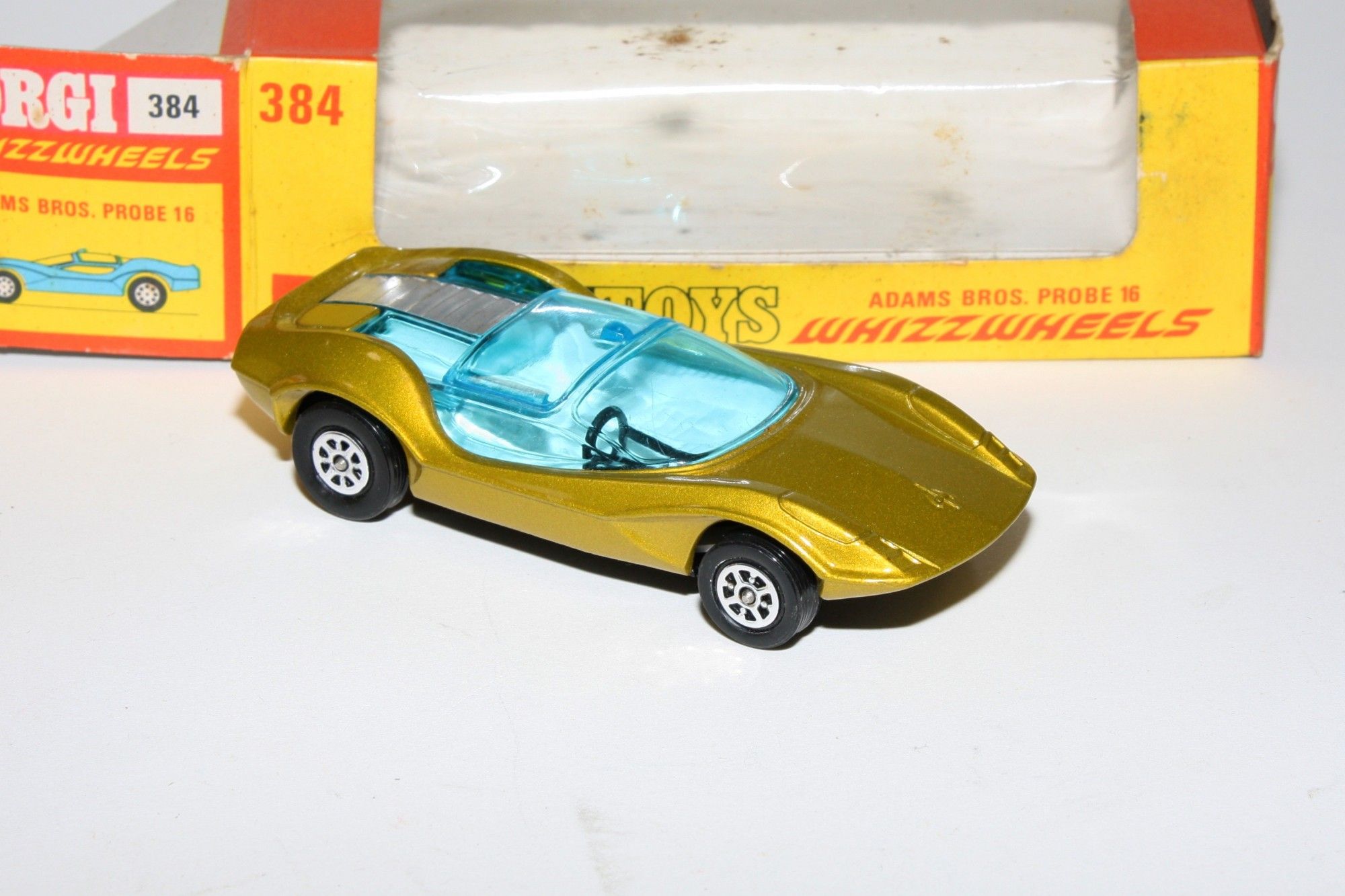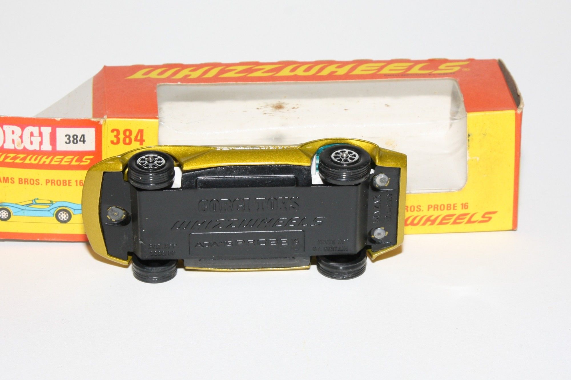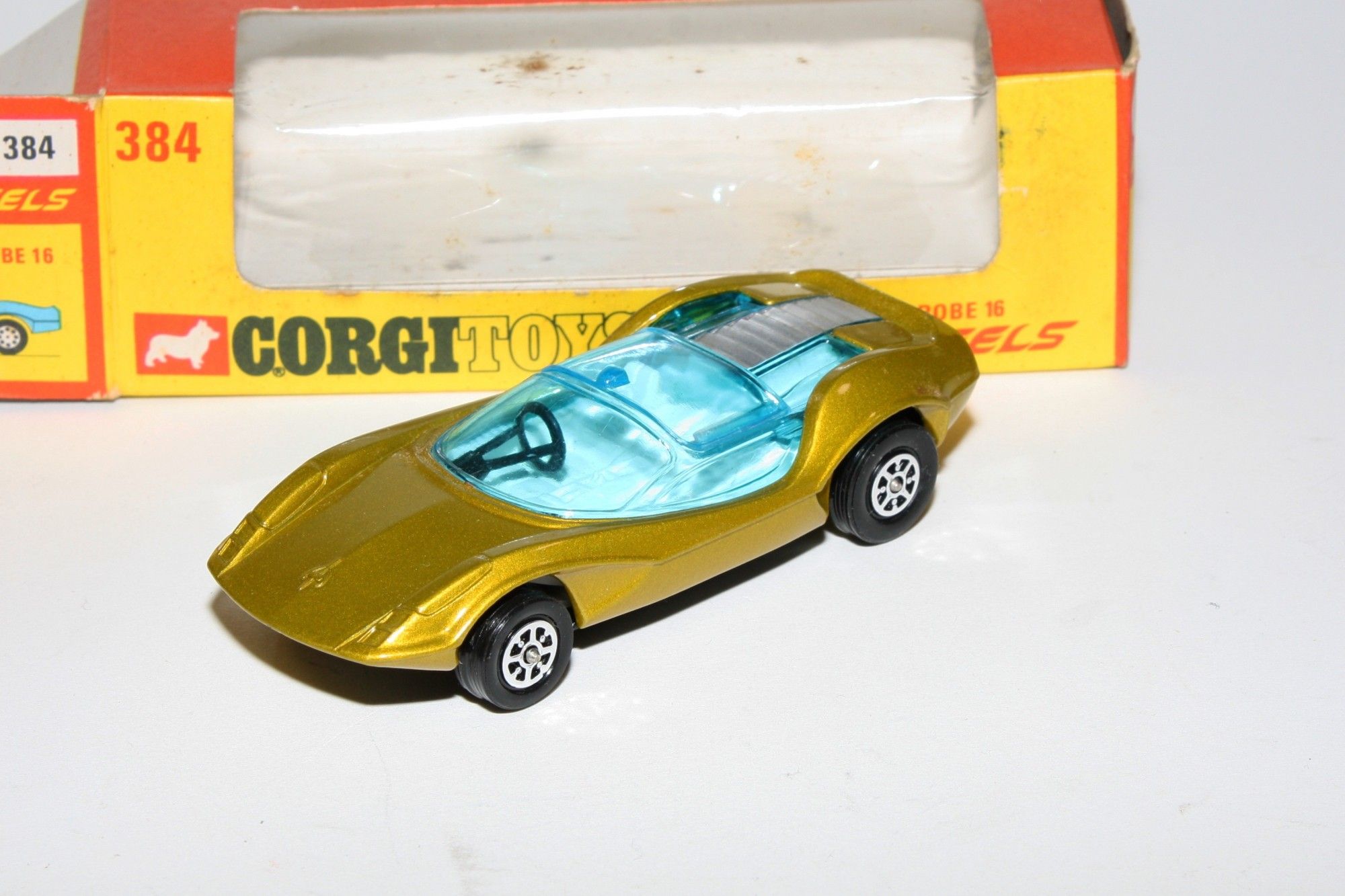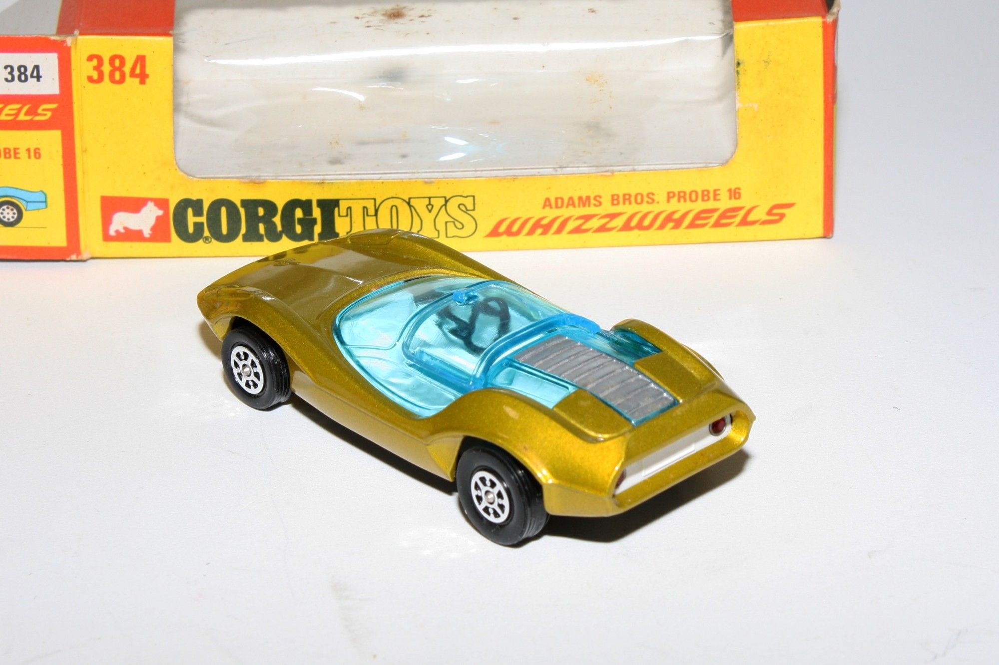 A stunning example of this Corgi model. Gleaming metallic lime paintwork is pristine, please study the photos for exact condition. Whizzwheels, crystal clear blue tint windows with sliding roof panel, white interior, underside is mint. Mint underside.