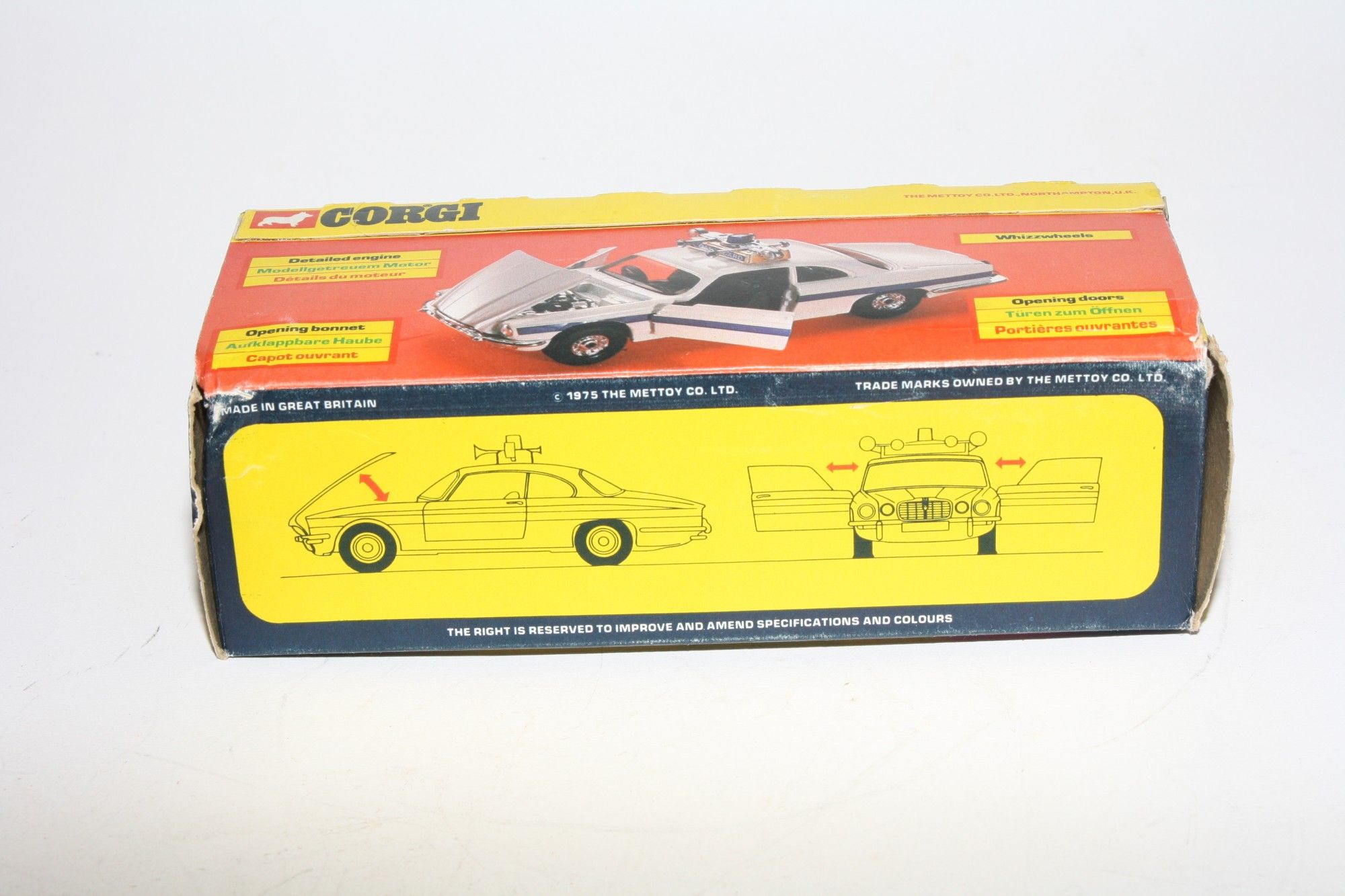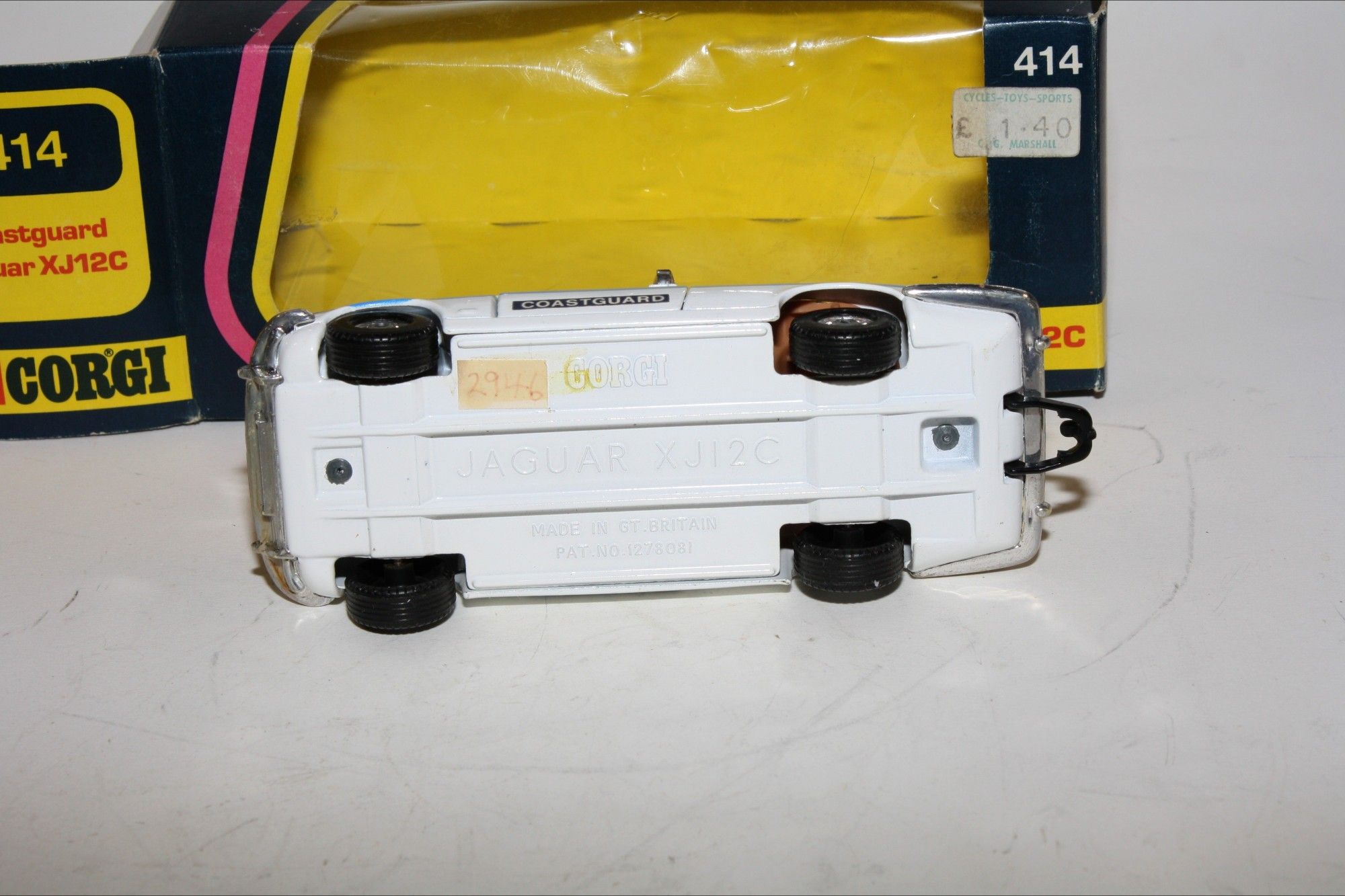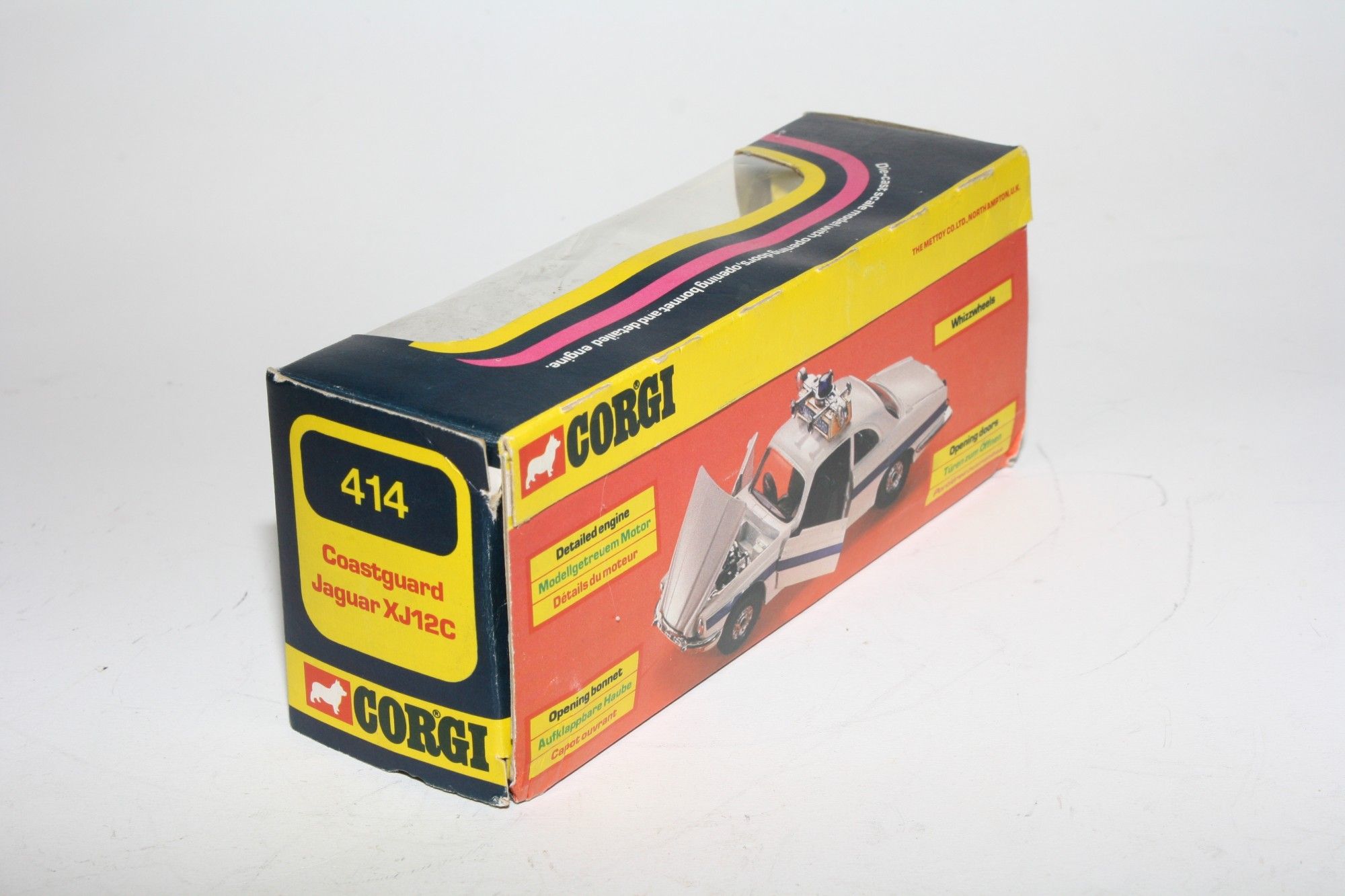 A super example of this Corgi model. Gleaming white original paintwork is virtually mint, please study the photo for exact condition. Good chrome wheels and free rolling axles, crystal clear windows, tan interior, perfect blue stripes and Coastguard door stickers, roof sign, beacon and horns all fine. Opening door and bonnet. Mint underside.