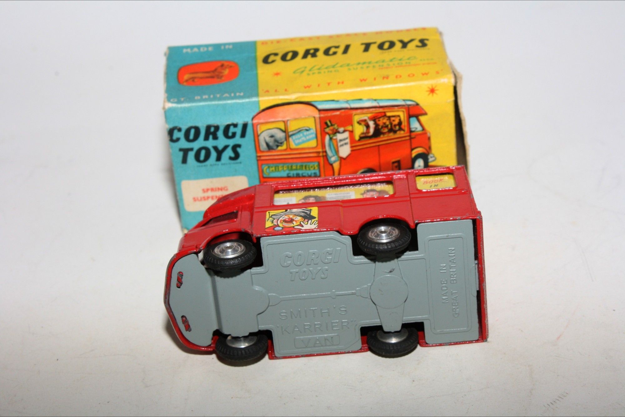 A nice example of this Corgi Chipperfields Circus model from the early 1960's. Gleaming original paintwork is excellent with some small chips/rubs, please study the photos for exact condition. Perfect spun hubs with original tyres, perfect suspension, crystal clear windows, mint original decals and stickers, excellent grey underside.