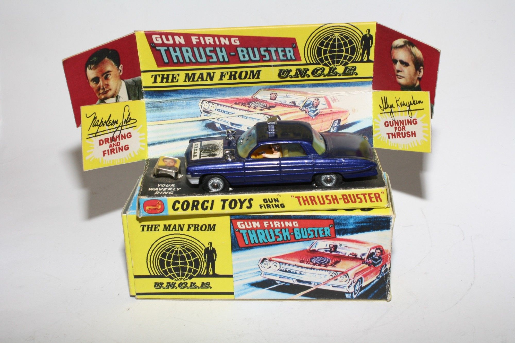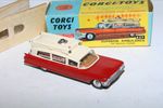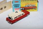 A superb example of this 1960's Corgi. Gleaming original paintwork is excellent, some small chips mainly to roof, please study the high resolution photos for exact condition. Perfect original tyres on spun hubs, good suspension, clear windows, good window decals, battery/bulb holder present, untested, appears to be in good clean condition. Underside good.