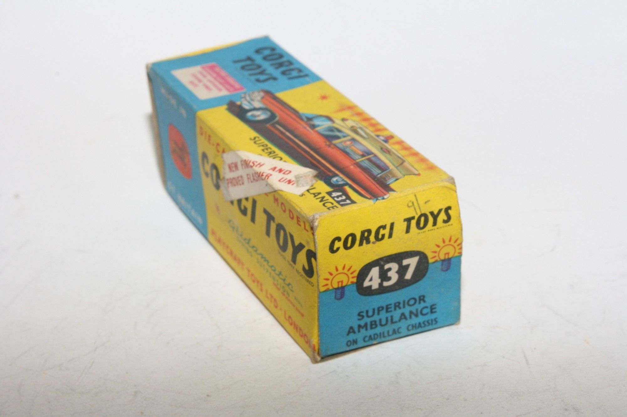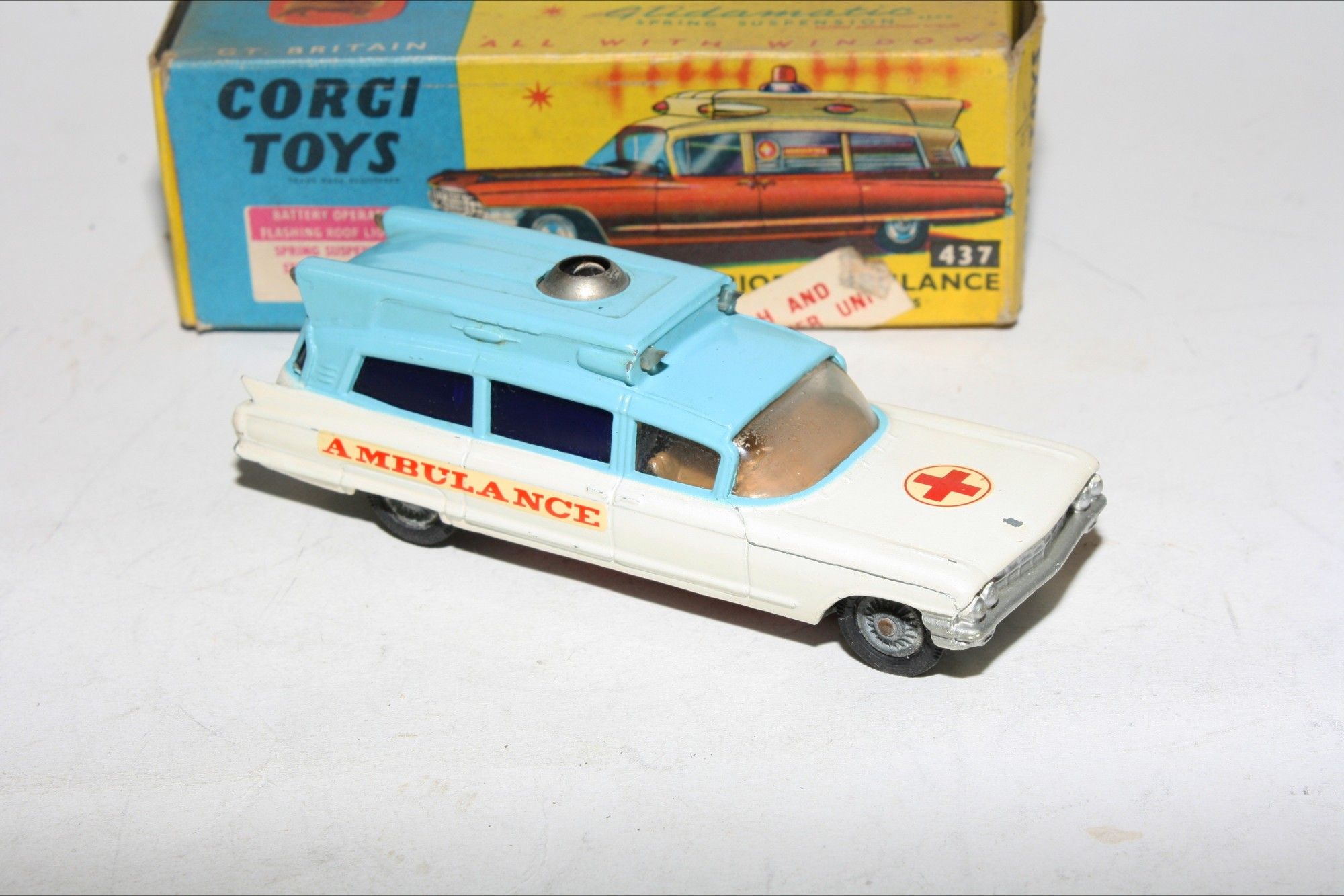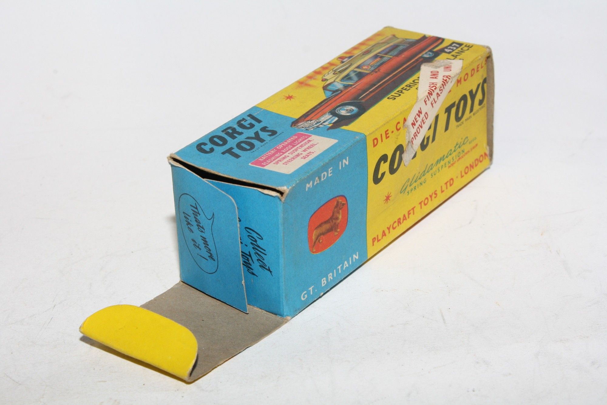 A very nice example of this 1960's Corgi. Gleaming original harder to find blue/white paintwork is excellent with just a chip to bonnet, please study the high resolution photos for exact condition. Perfect original tyres on spun hubs, good suspension, windscreen cloudy, perfect original decals, excellent later issue original battery holder all intact, flashing light not tested. Excellent grey base.