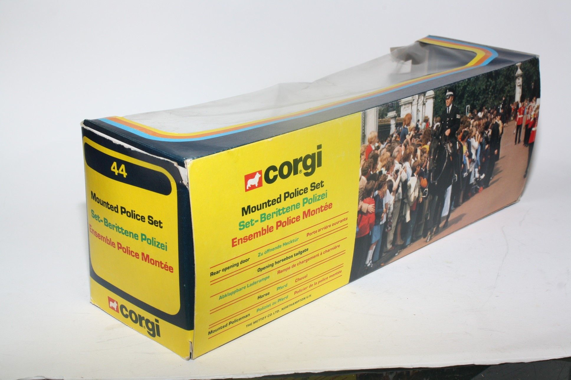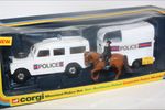 A superb example of this late 1970's Corgi Gift Set, hard to find. Original white paintwork is mint, appears not to have been removed from box. Please study the photos for exact condition. Perfect wheels, tan interior, crystal clear windows, stickers appear mint along with perfect fiure on horse.