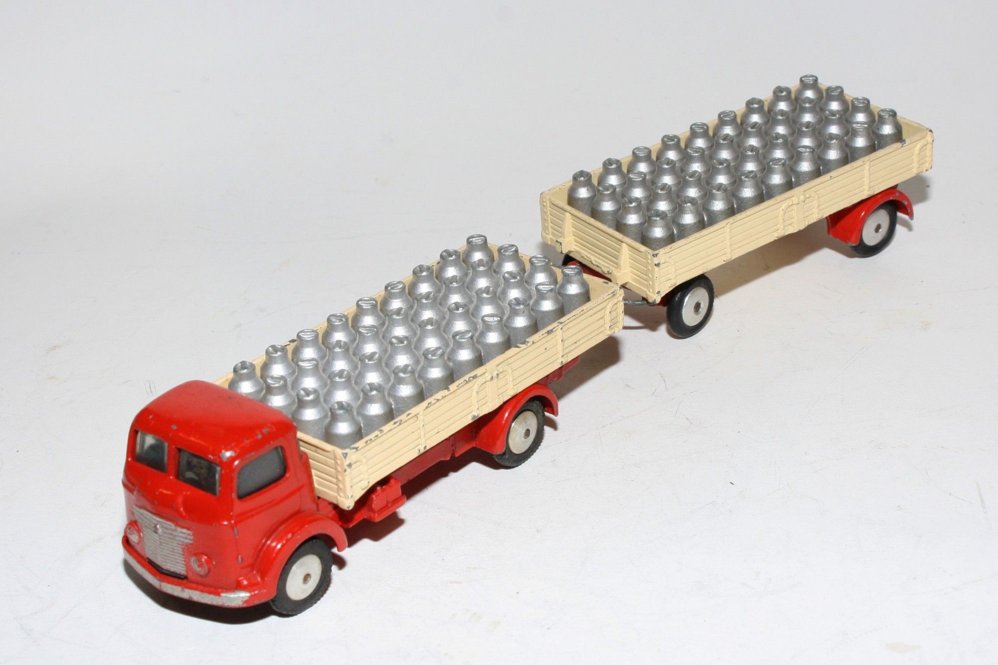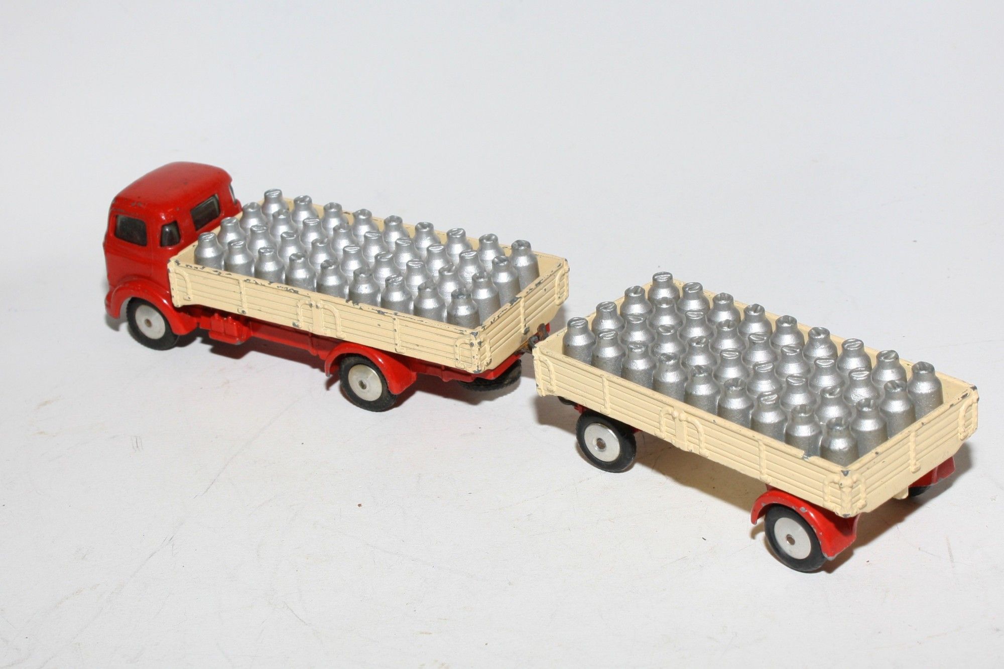 Good examples of these Corgi models. Original red and cream paintwork is vvery good condition with a few chips. Please study the photos for exact condition. Good original tyres on smooth hubs, straight free rolling axles, crystal clear windows, tow hook and wire drawbar, both undersides are good. Comes complete with 2 x 1487 Corgi Cargos milk churns.
