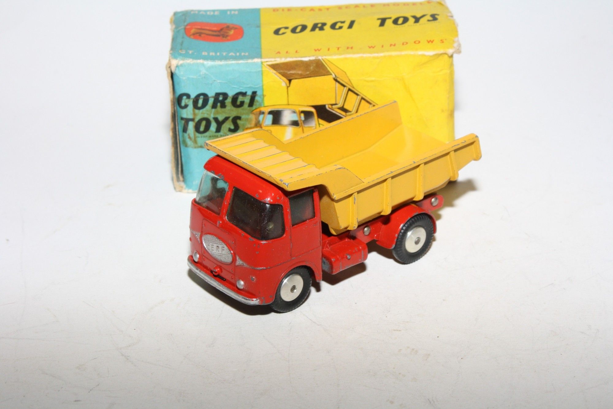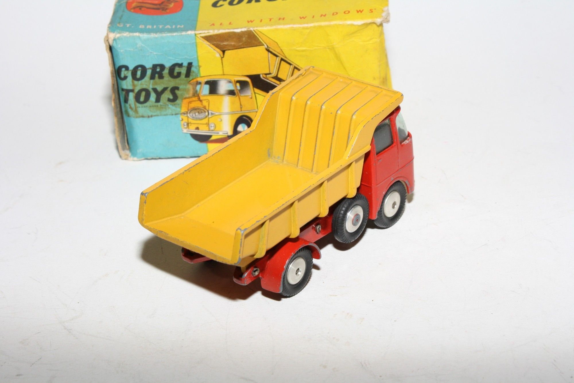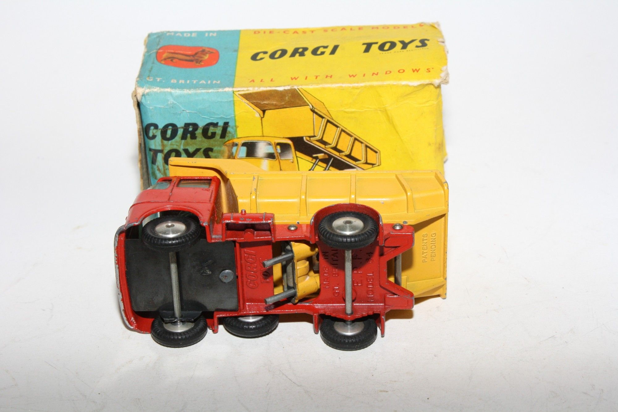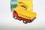 A nice example of this early issue Corgi. Original red and yellow paintwork is excellent but with a few chips/rubs mainly to raised edges, please study the photos for exact condition. Good original tyres on smooth hubs, free rolling axles, clear windows, working tipper. Good baseplate.