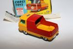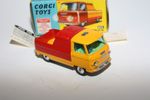 A superb example of this 1960's Corgi. Original yellow and red paintwork is virtually mint with just a couple of tiny box rubs to door handles, please study the photos for exact condition. Original tyres on spun hubs, perfect suspension, good blue tinted windows and interior. Trans-O-Lite headlamps all fine, mint grey underside.