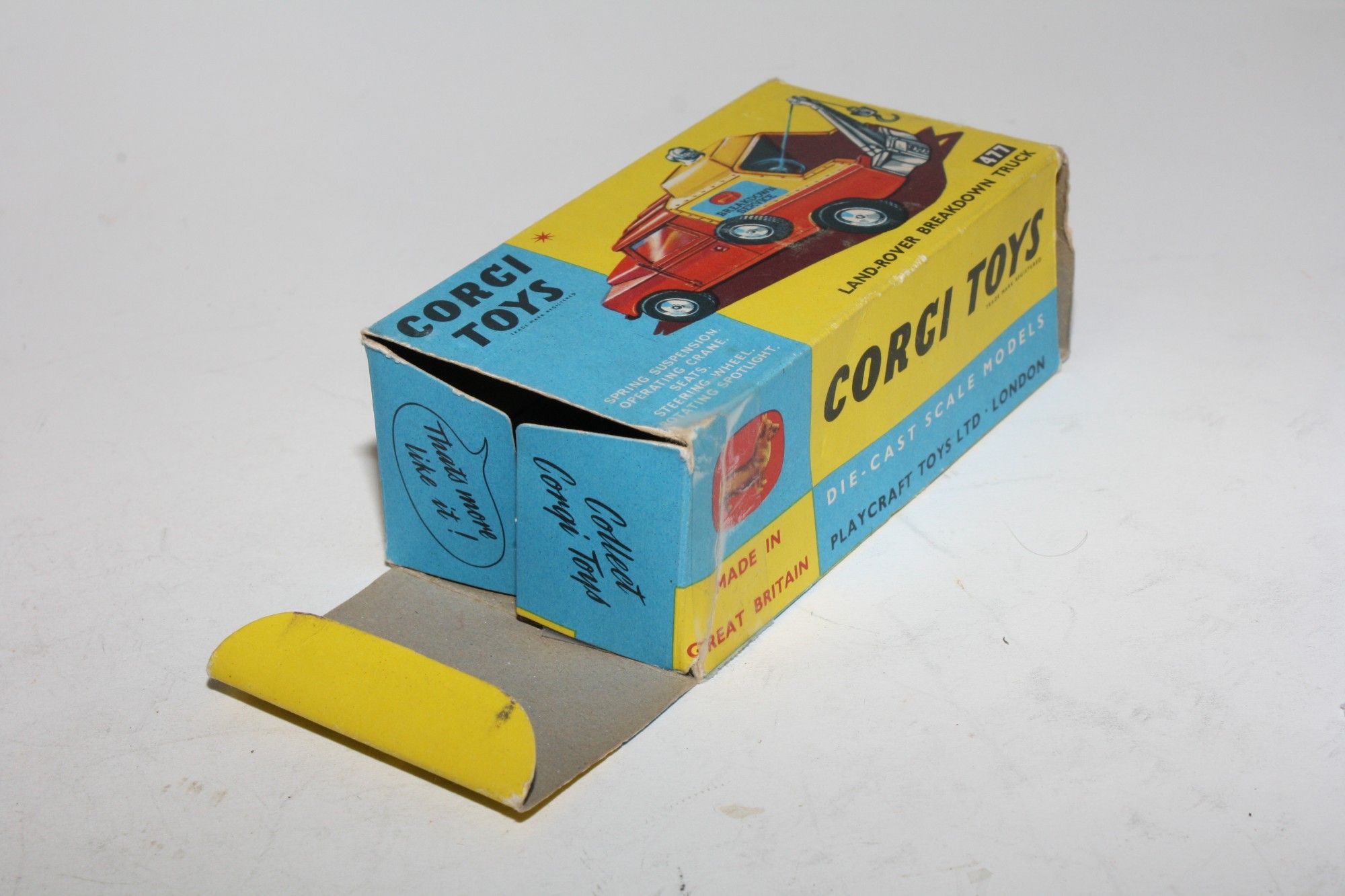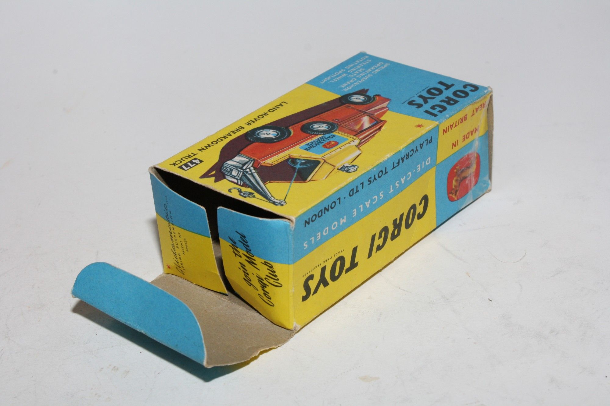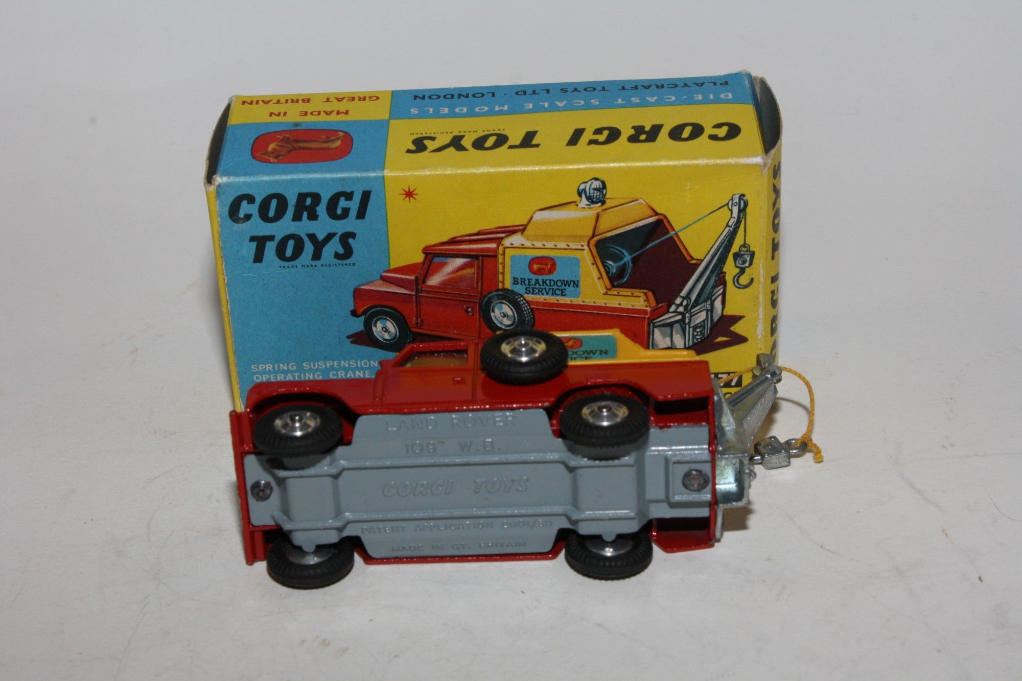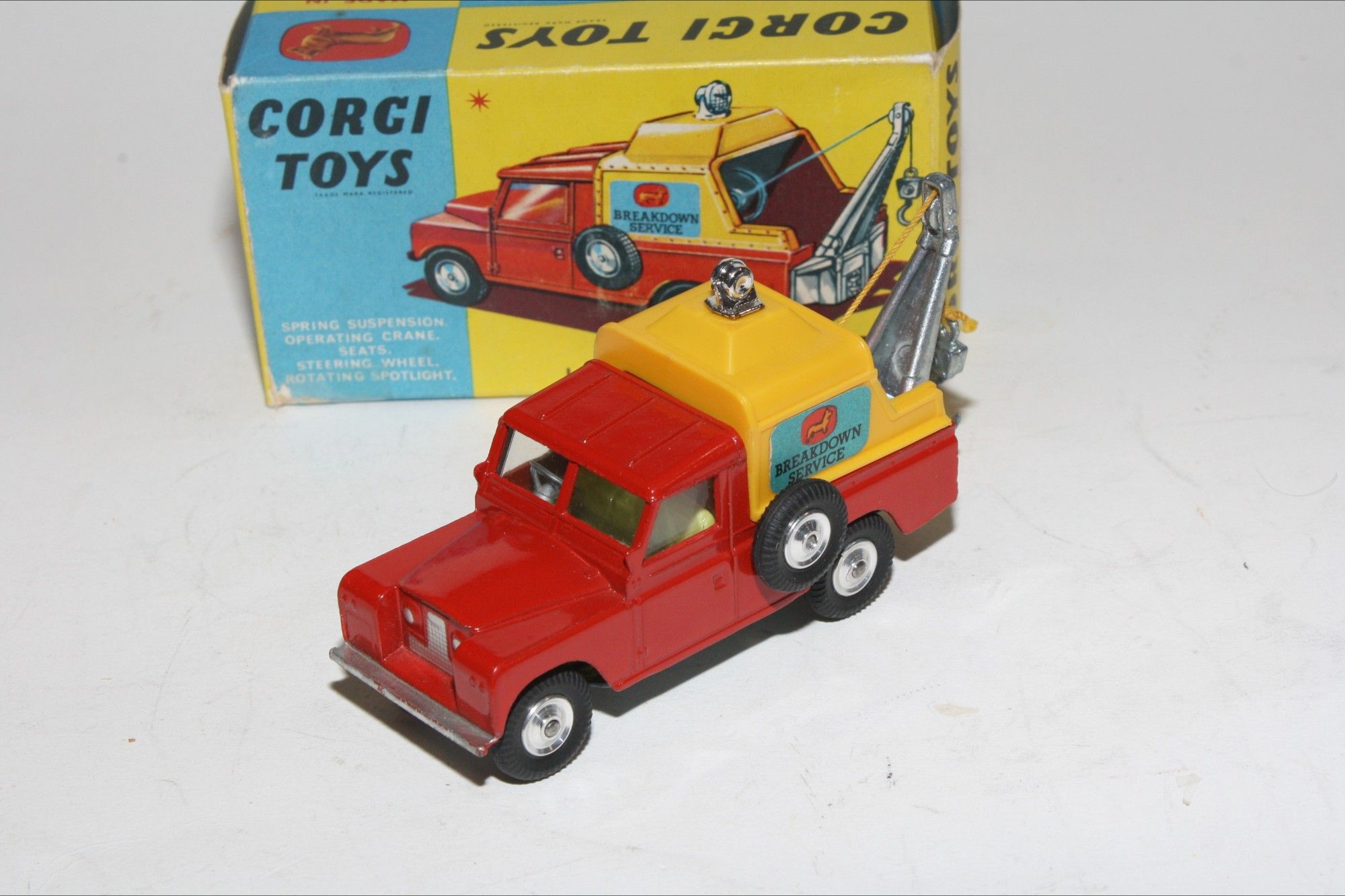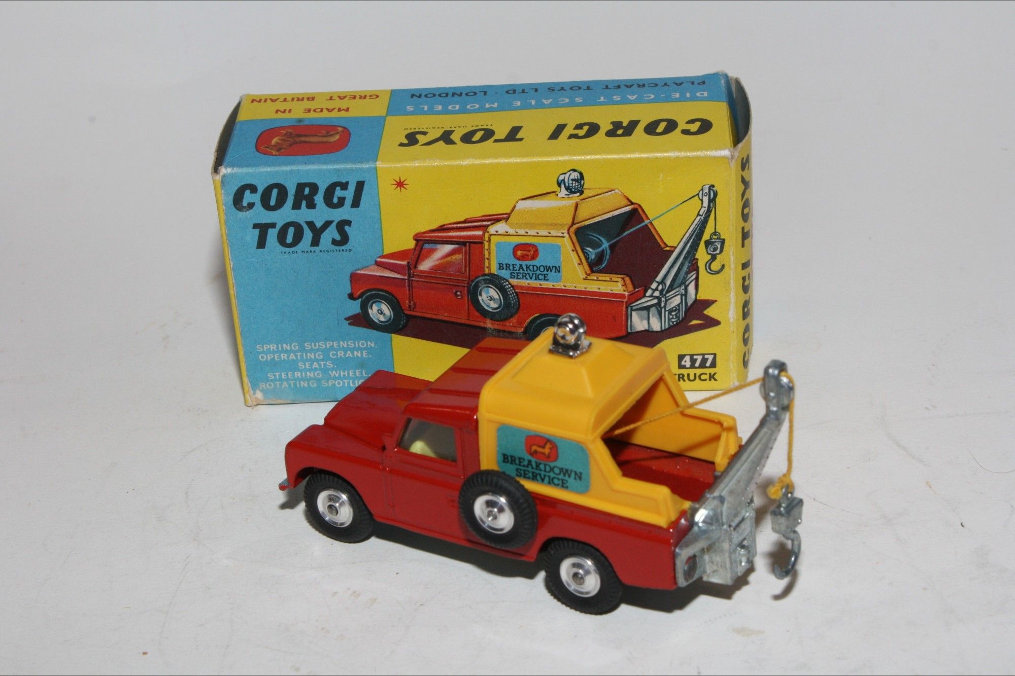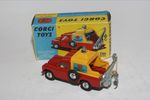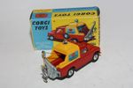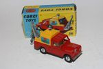 A superb example of this 1960's Corgi model. Gleaming original red paintwork is virtually mint, please study the high resolution photos for exact condition. Perfect original tyres on cast hubs, strong suspension, crystal clear windows, yellow interior, plastic tilt perfect with original stickers, hook and cord all as new, beautiful gloss grey underside is mint.