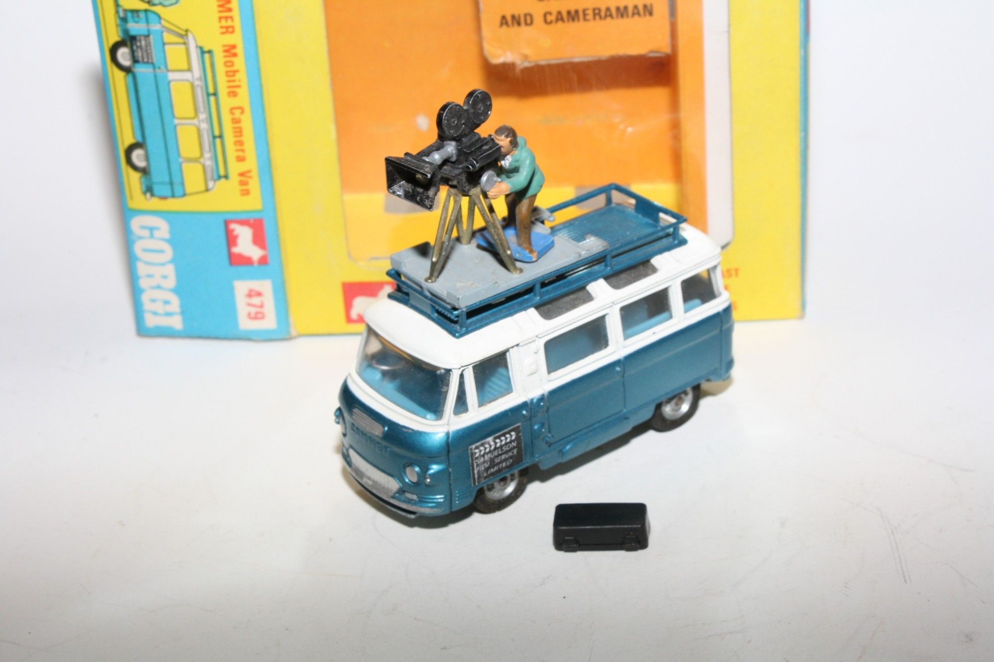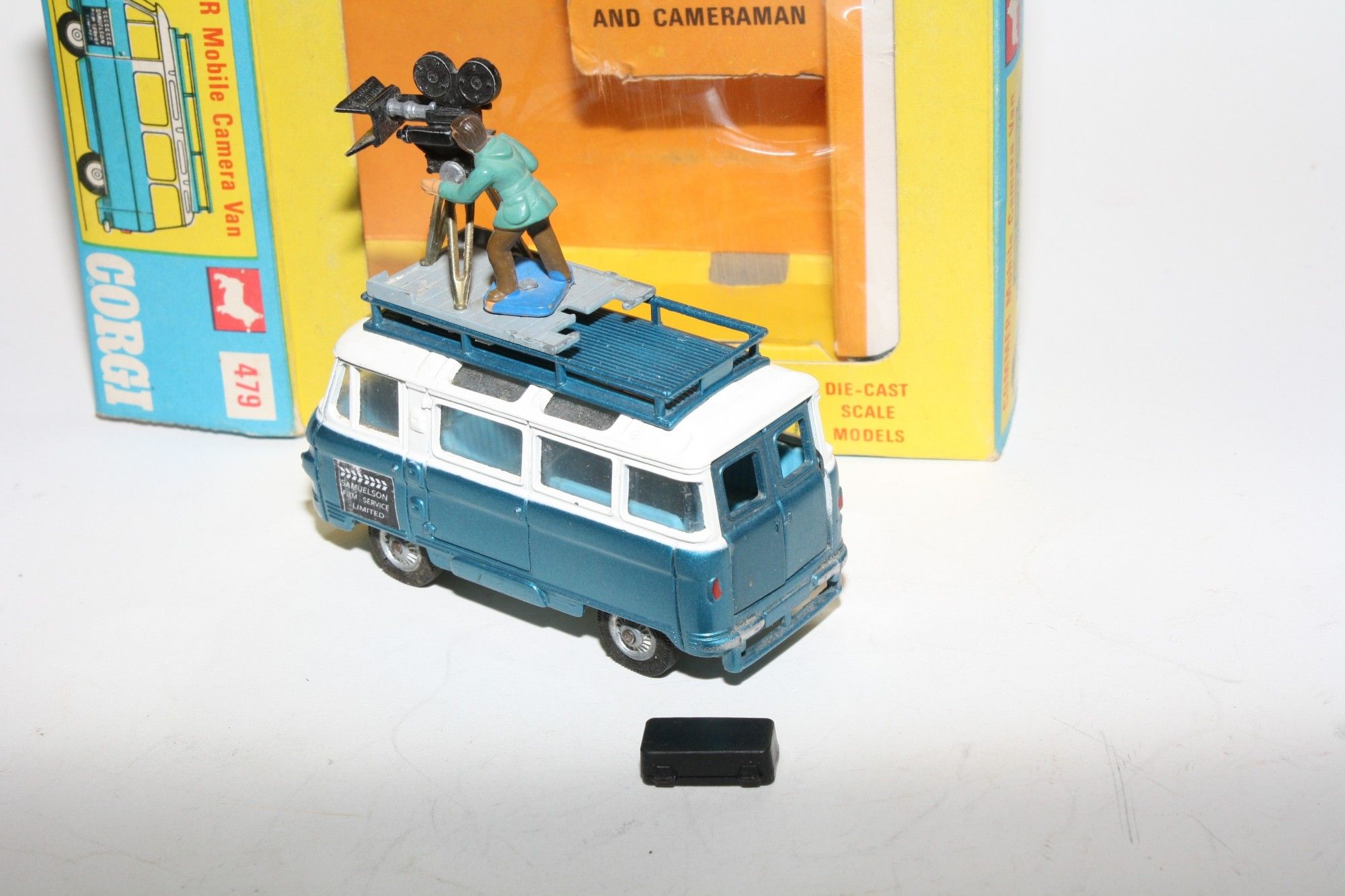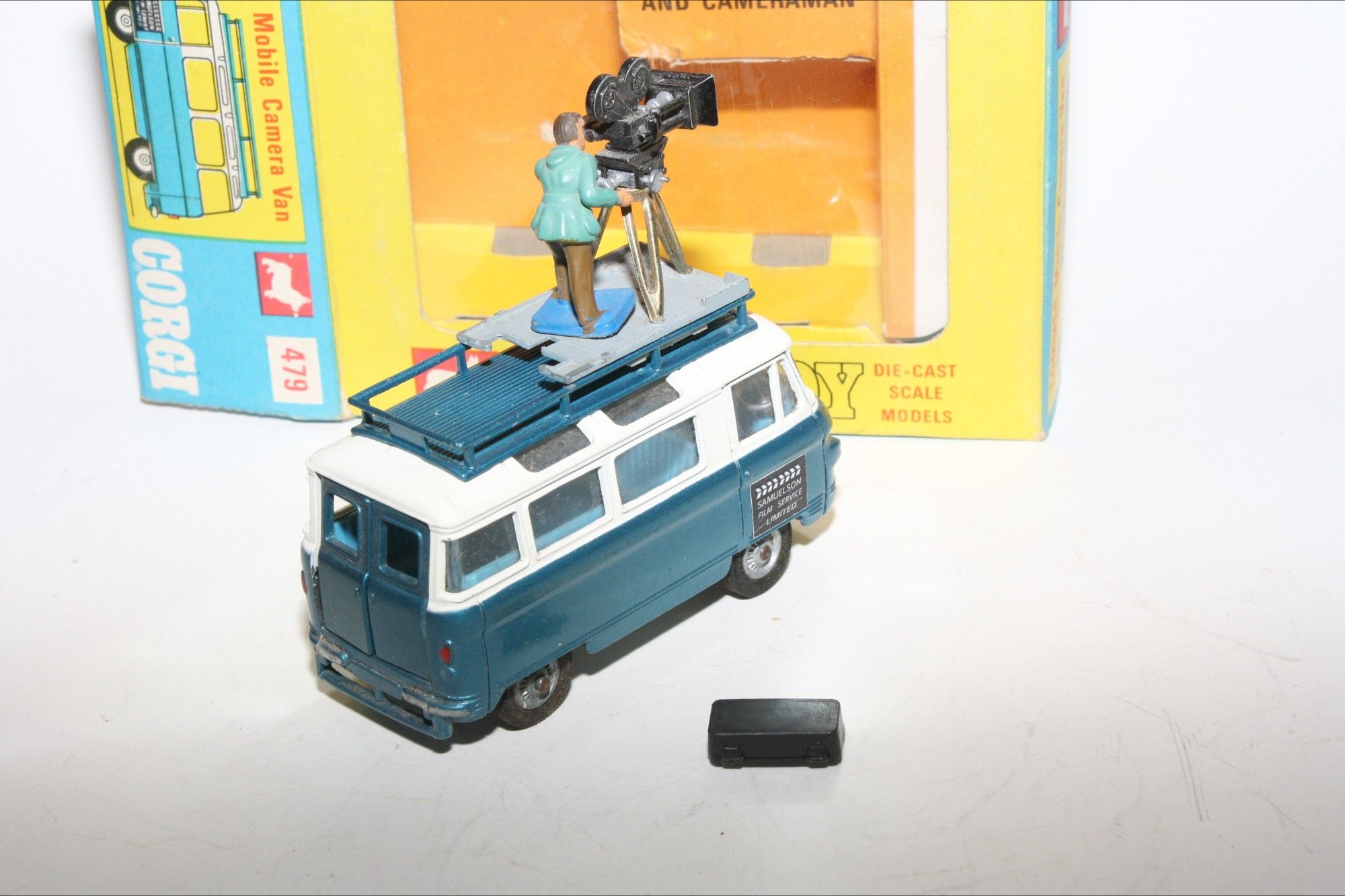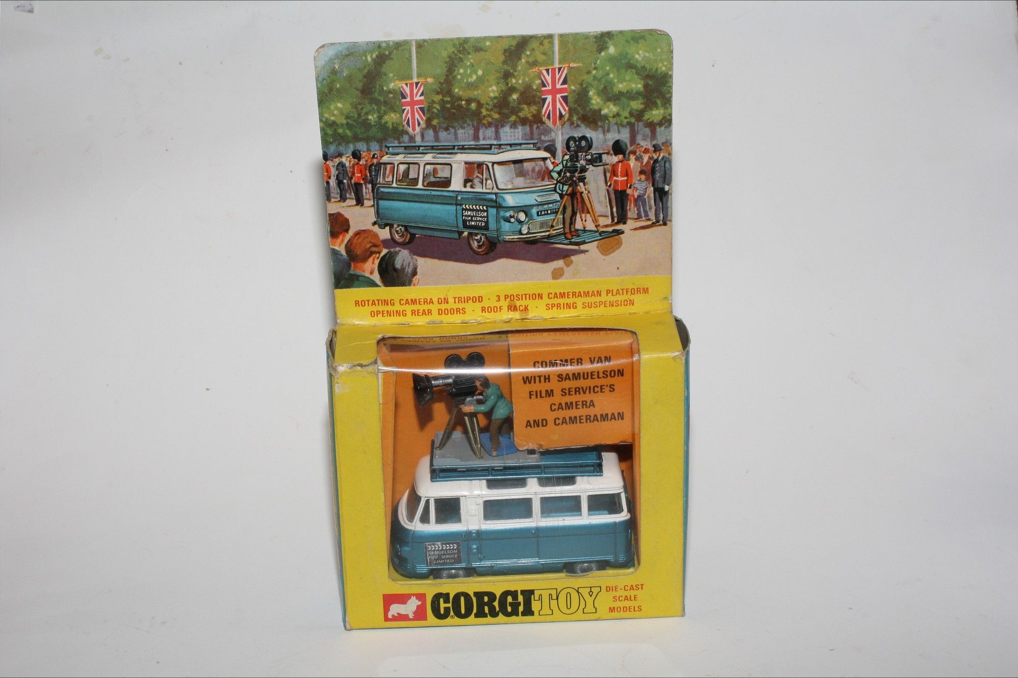 A superb example of this lovely vintage camera van. Original blue and white paintwork is virtually mint, please study the photos for exact condition. Excellent original tyres on spun hubs, perfect suspension, crystal clear windows, blue interior, rear doors, cameraman, camera with jewelled lense and removable platform along with roof rack are all excellent, underside is mint.