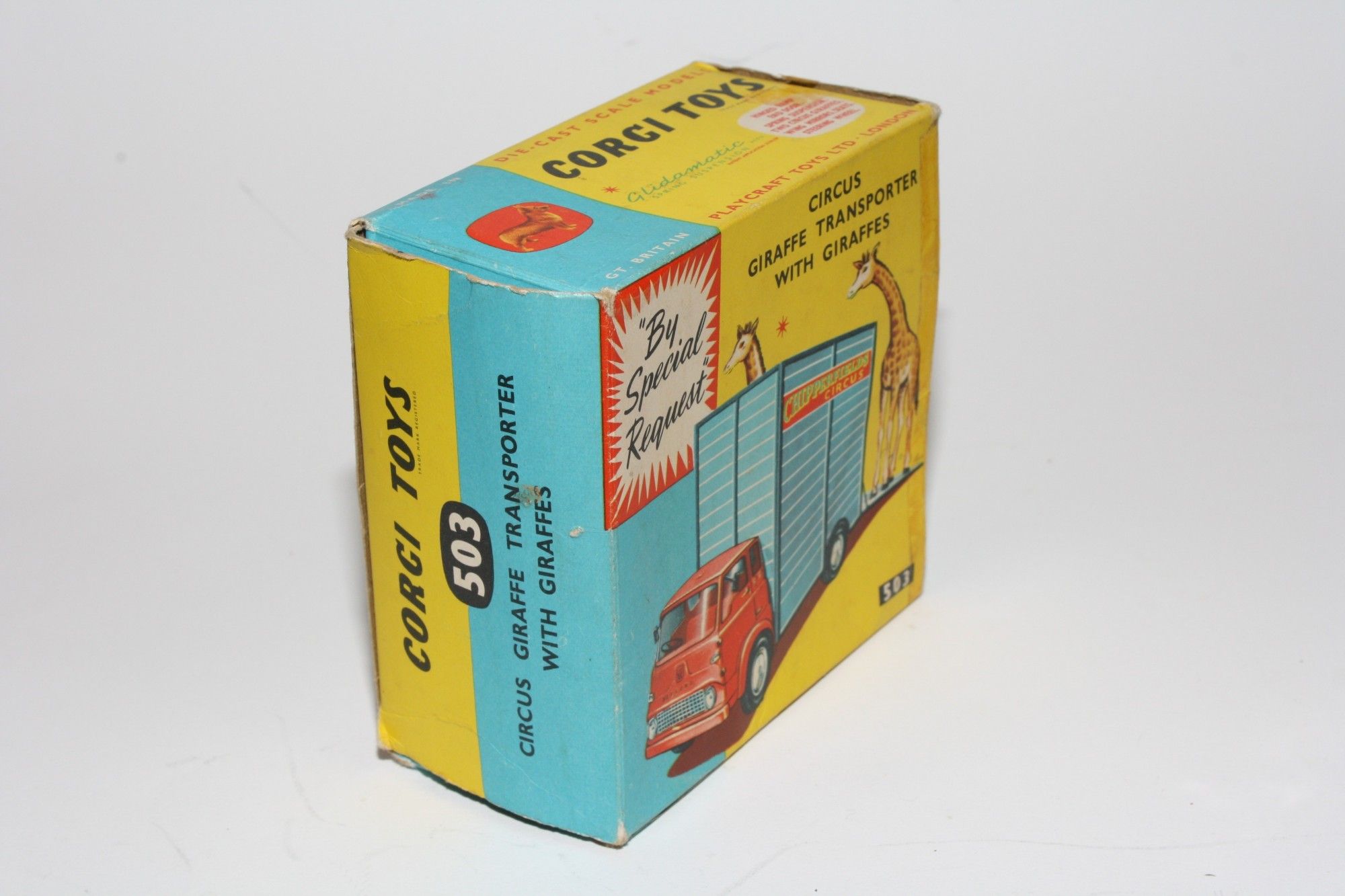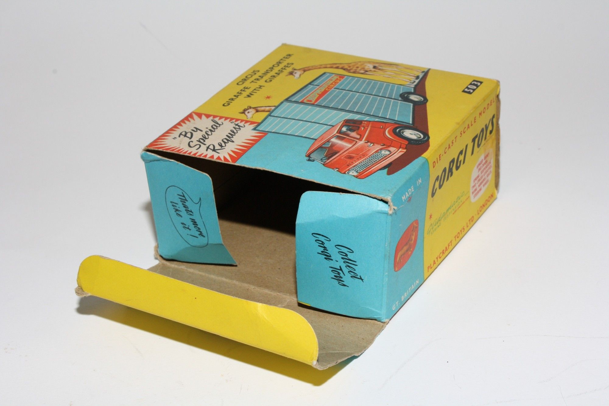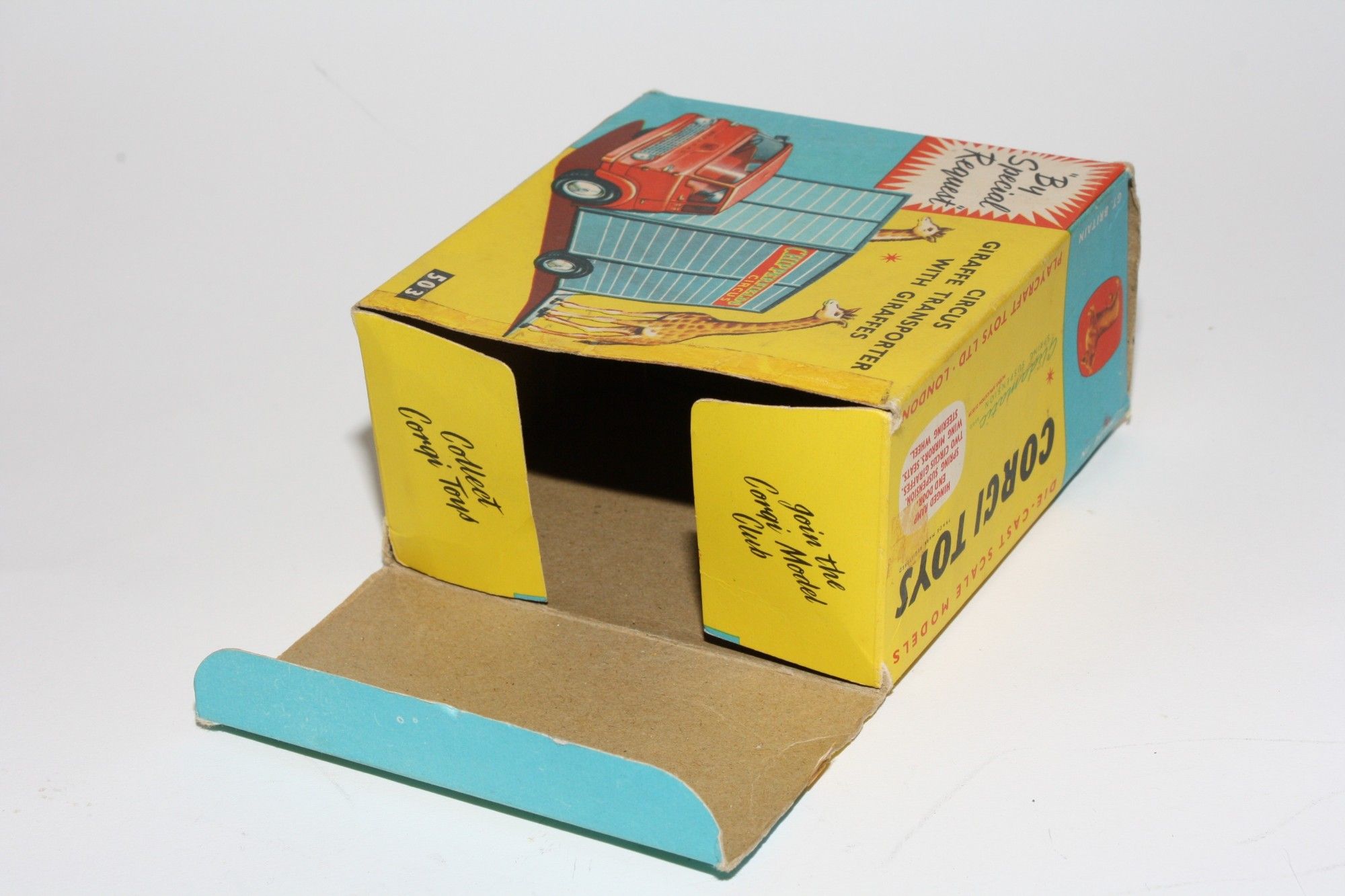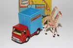 A superb example of this nice Corgi Chipperfields Circus model from the early 1960's. Gleaming original paintwork is mint, please study the photos for exact condition. Perfect spun hubs with original tyres, perfect suspension, crystal clear windows, lemon interior, perfect plastic rear section with good tailgate/ramp perfect Chipperfields stickers and 2 original giraffe figures. Grey underside is mint.