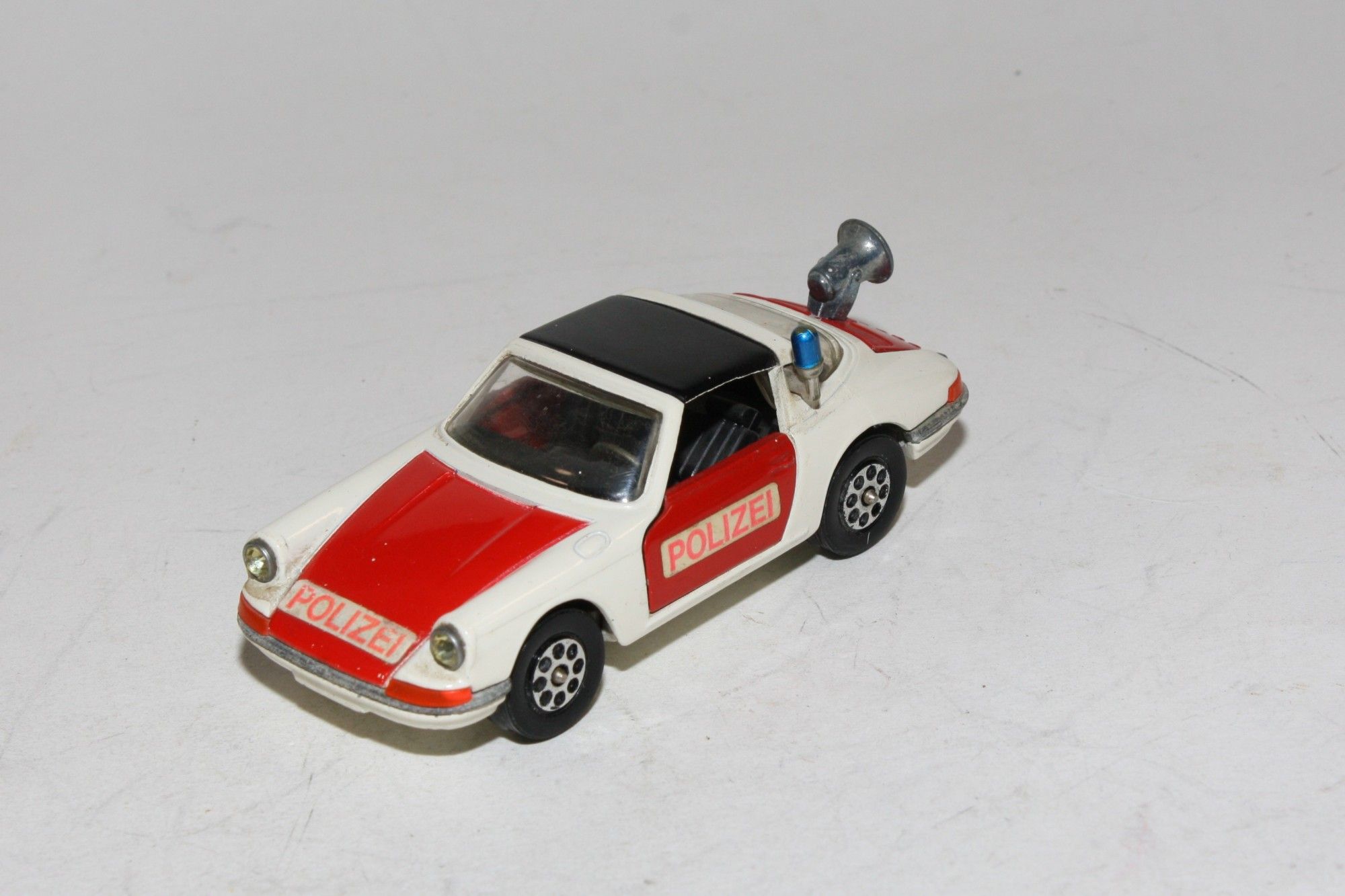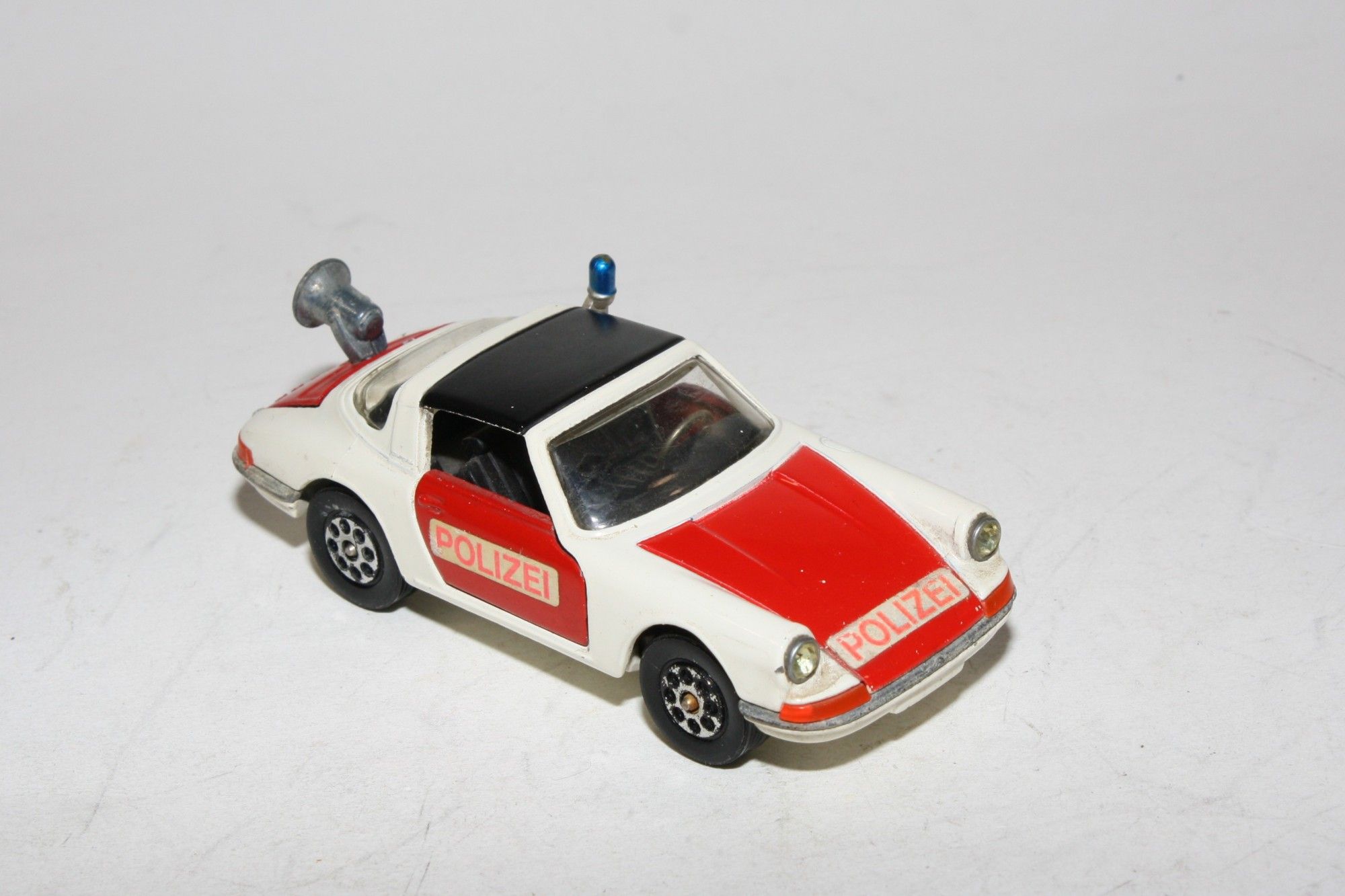A nice example of this beautiful Corgi model. Gleaming original paintwork is very near mint, just a couple of flea bite nicks, please study the photos for exact condition. All perfect Whizzwheels, strong suspension, crystal clear windows, black interior, boot mounted siren, blue beacon, jewelled headlights, Polizei stickers, excellent underside.