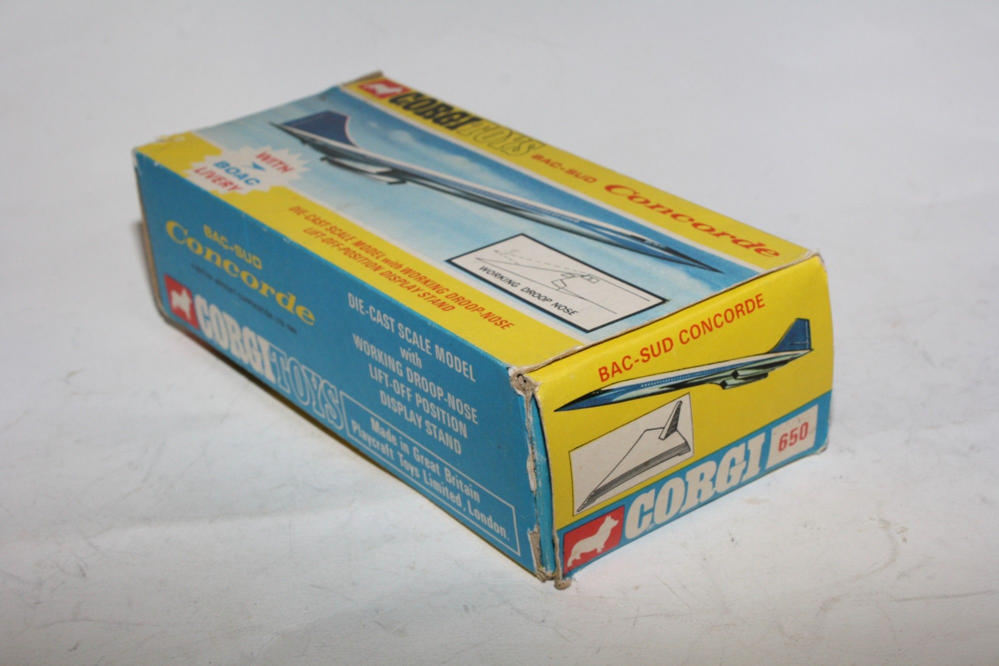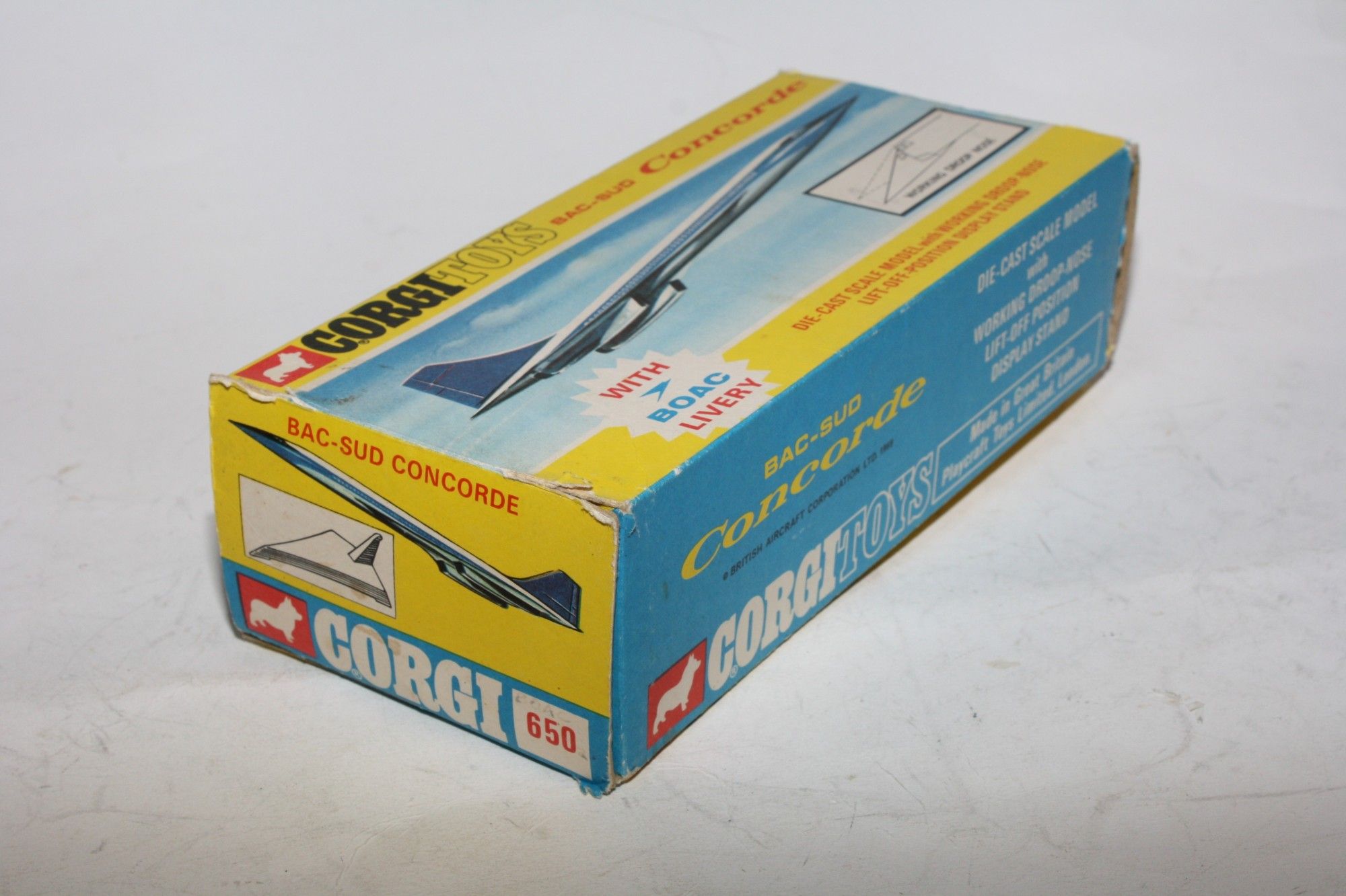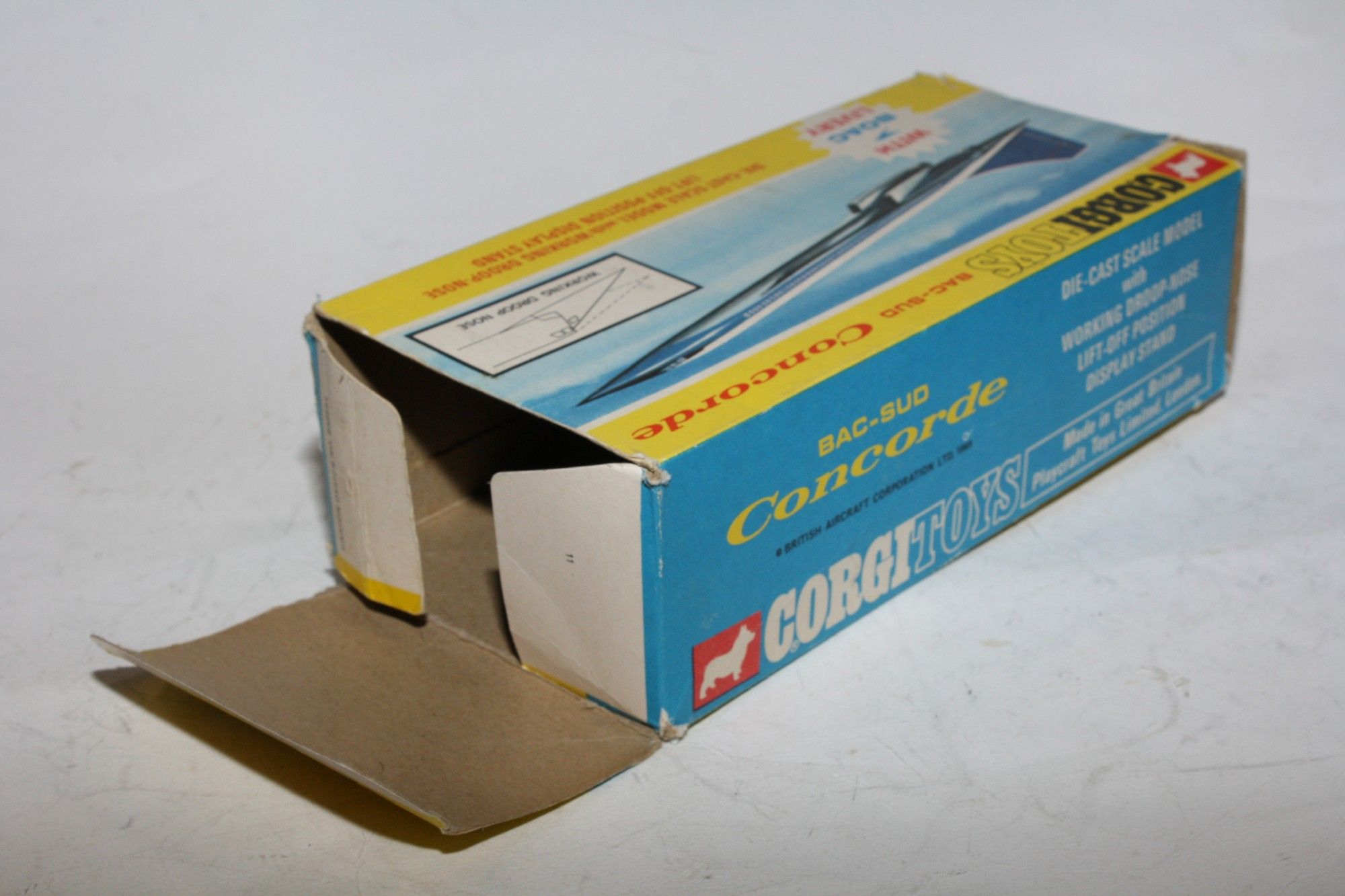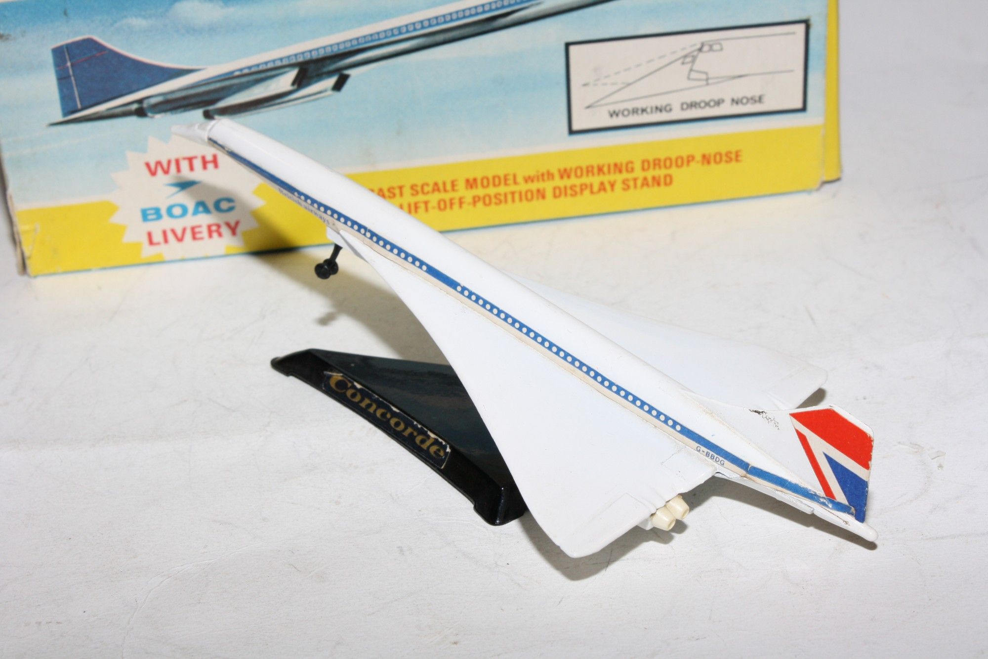 A good example of this 1970's Corgi model of this iconic plane. Gleaming original paintwork is excellent, please study the high resolution photos for exact condition. All undercarriage intact and present as is nose cone (rare to find). Original livery stickers intact and original stand present. Underside excellent.