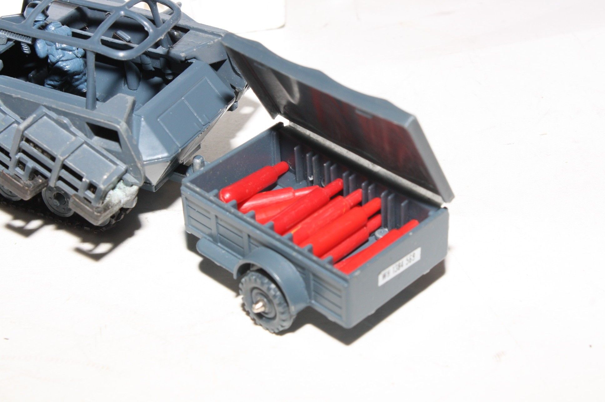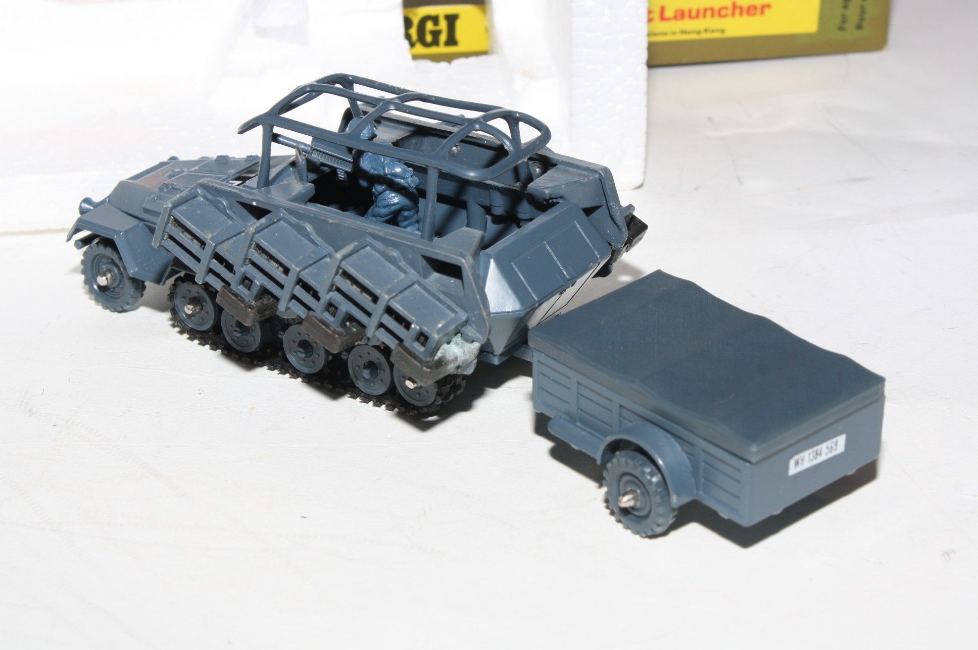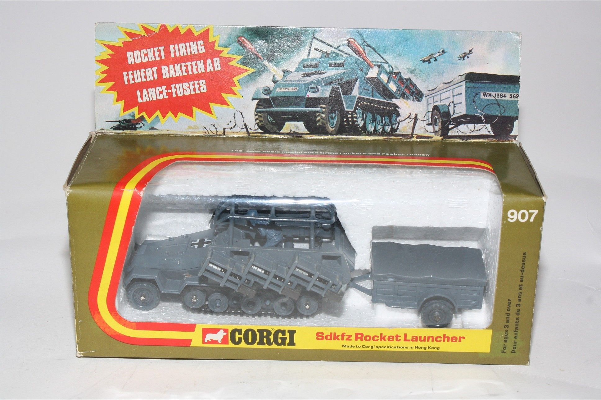 A superb example of this Hong Kong made Corgi military model. Paintwork is very good but some small areas of corrosion and rubs/nicks. Please study the photos for exact condition. All wheels and tracks fine, German soldier figure present , perfect firing mechanisms with all 12 original rockets in limber with lid. Decals mint as is undersides.