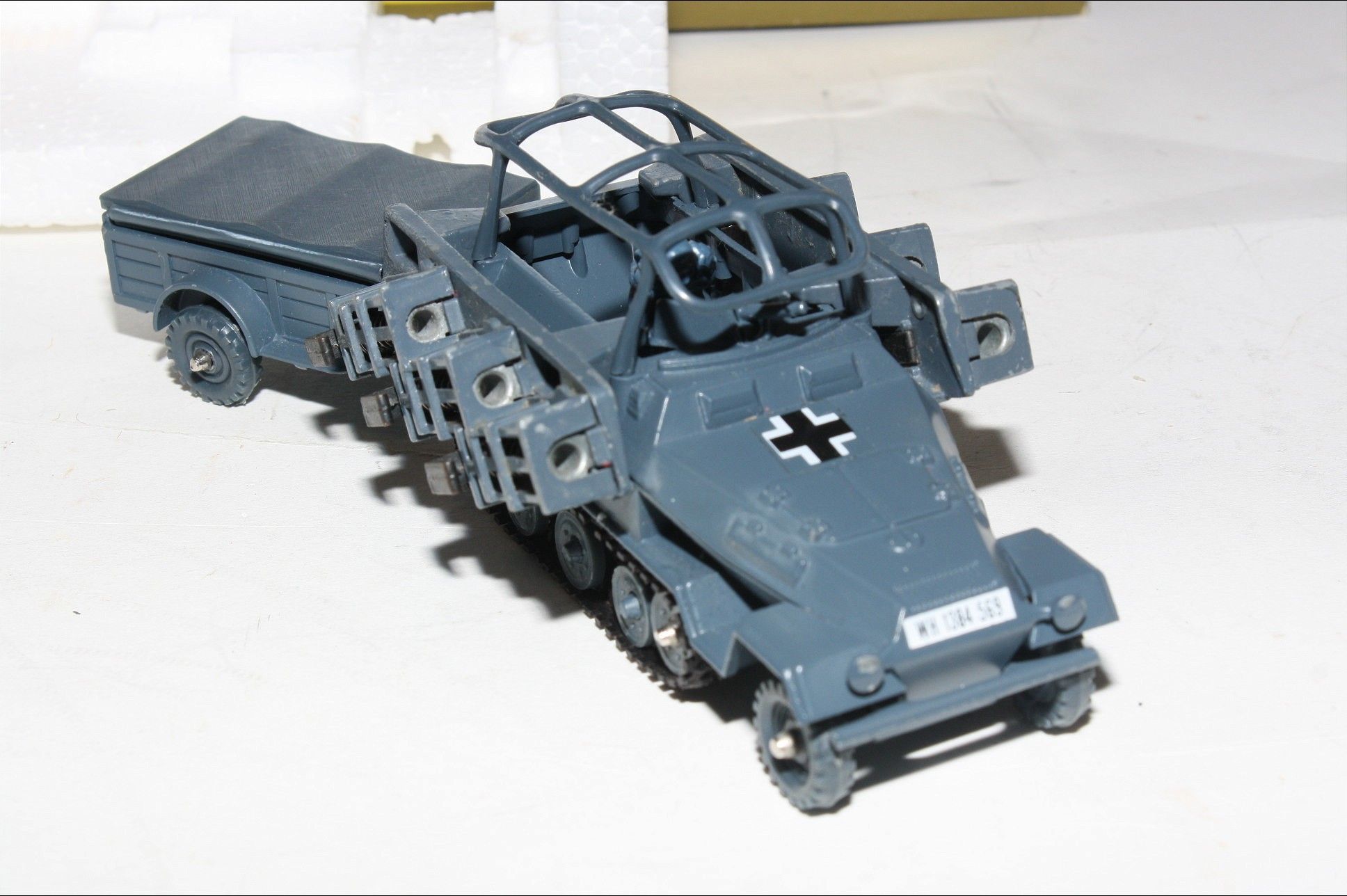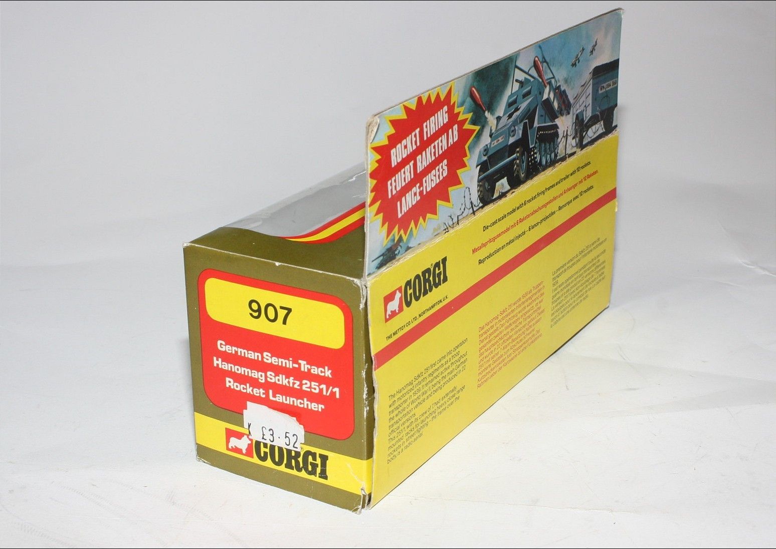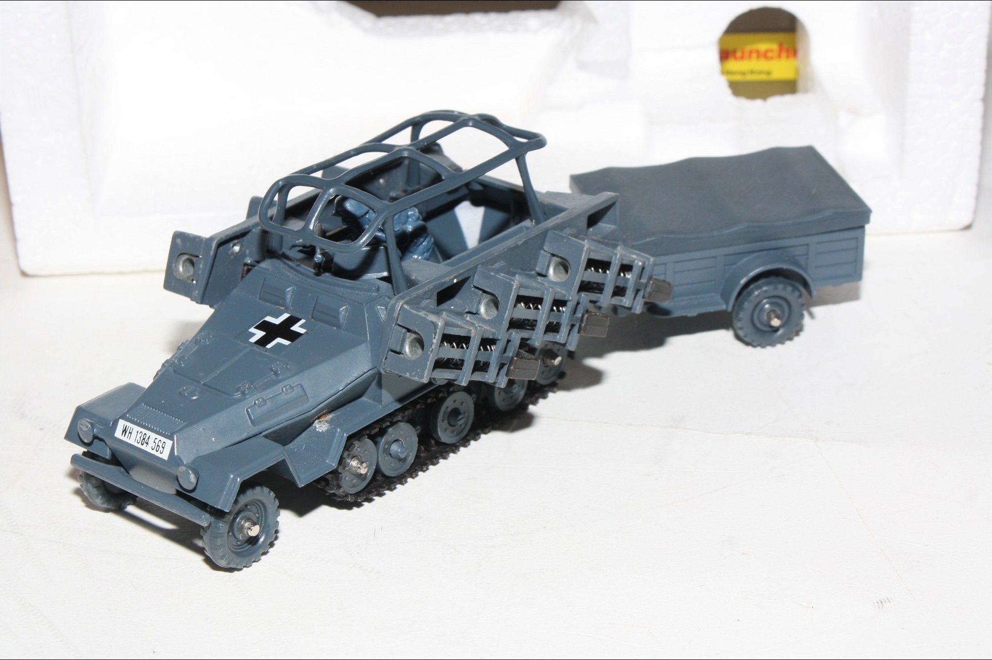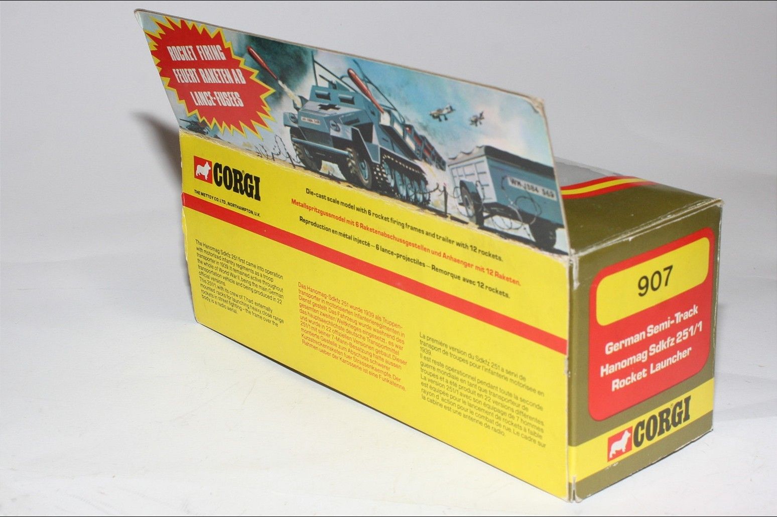 A superb example of this Hong Kong made Corgi military model. Paintwork is very good but some small areas of corrosion and rubs/nicks. Please study the photos for exact condition. All wheels and tracks fine, German soldier figure present , perfect firing mechanisms with all 12 original rockets in limber with lid. Decals mint as is undersides.