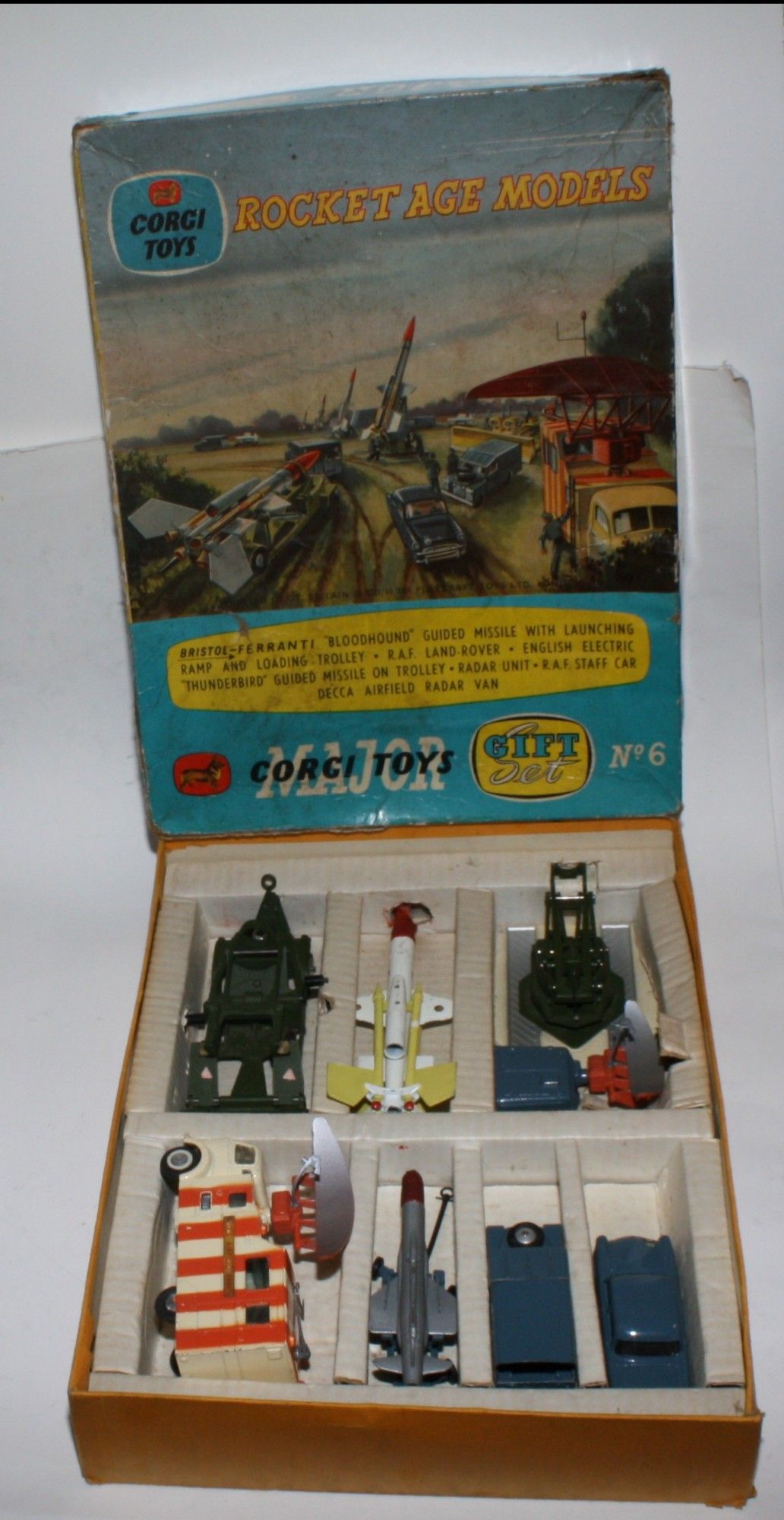A good example of this very hard to find 1950's military Rocket Age Corgi gift set. Original paintwork on models is good to near mint, just a few small chips, please study the photos for exact condition. Contains:-