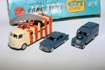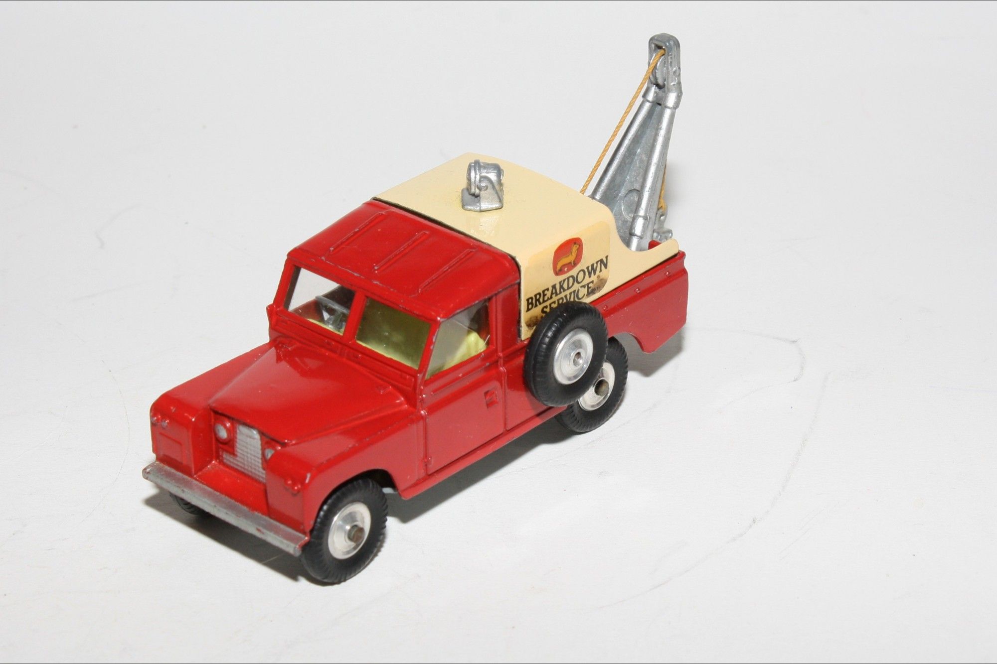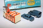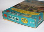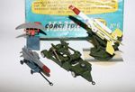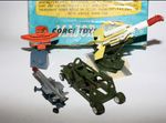 Original tyres on smooth hubs, some period acessory sitkers added, Bloodhound missile trolley with brass ram lifting mechanism working perfectly, good drawbar and pivot, Standars Vanguard is excellent, Landrover with tin tilt and tin baseplate, some light signs of wear. Launch pad in in perfect working order with clip with Bloodhound missile with all four thrusters present, Thunderbird Missile is excellent on trolley, Both missile nose cones are original but with degradation, Decca Airfield radar truck with 5 stripes and intact rear aerial and radar receiver. Radar Unit in GWO with radar receiver intact.