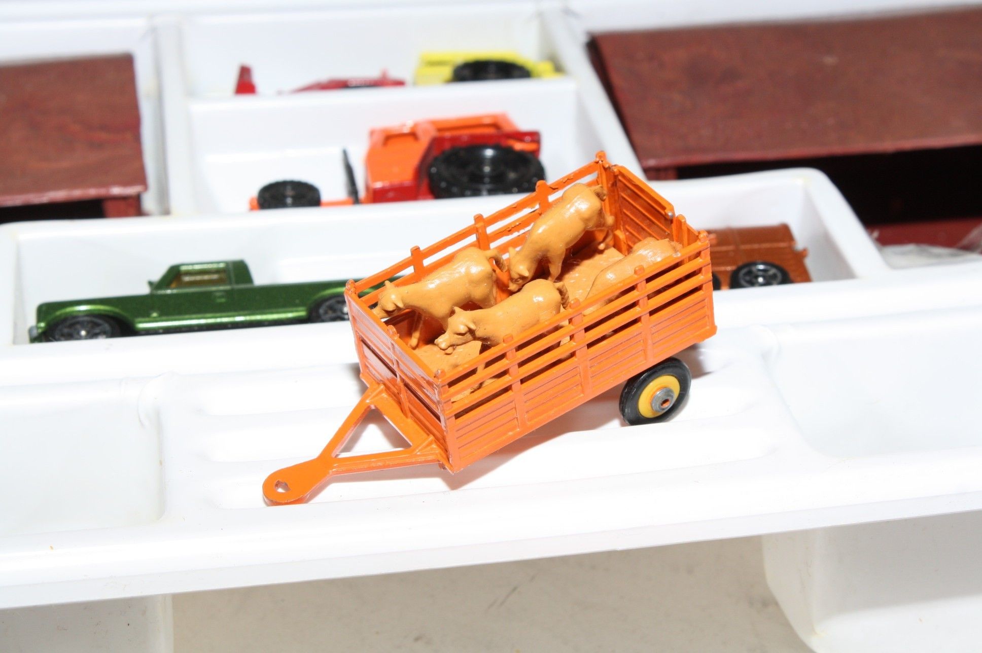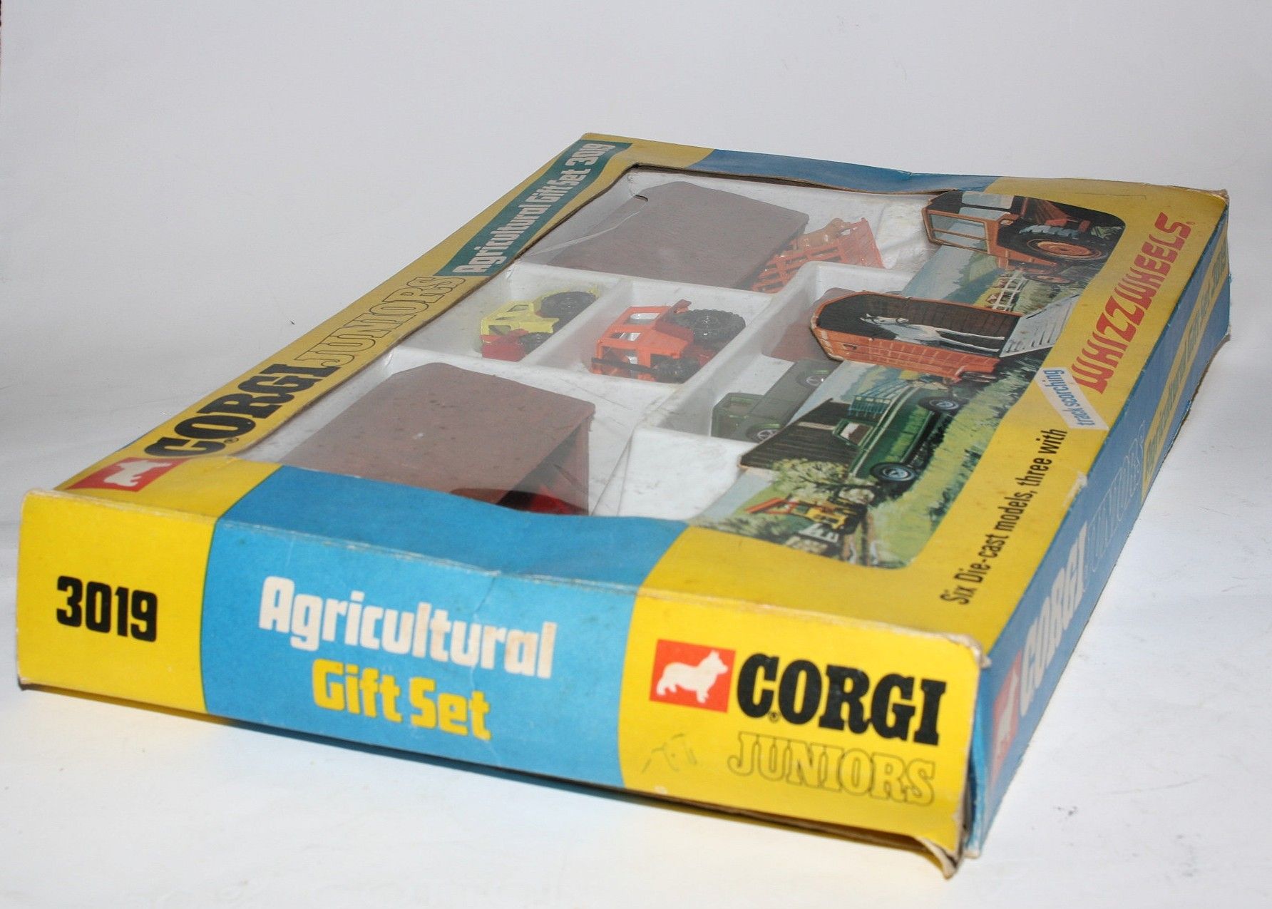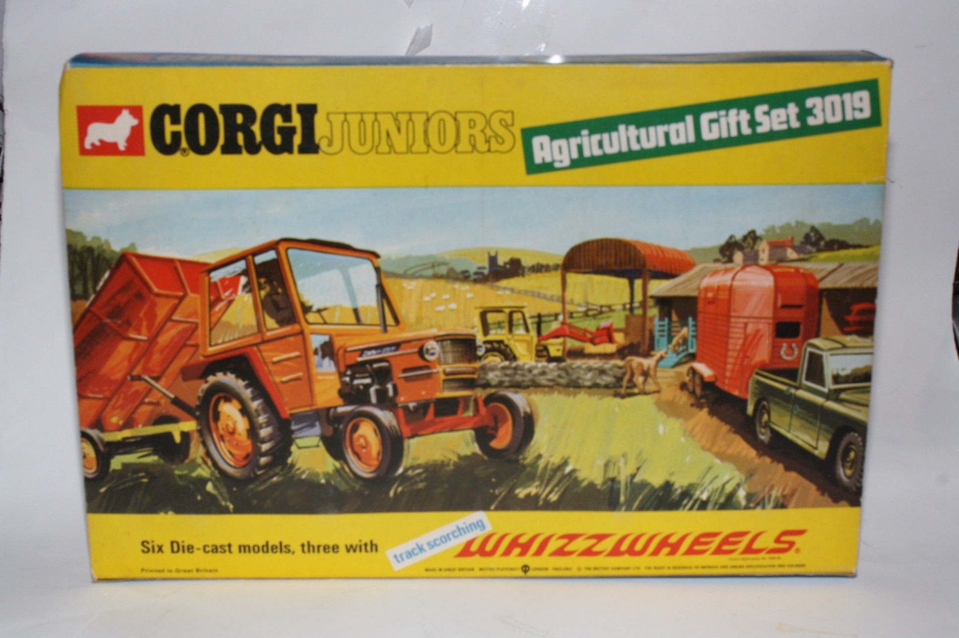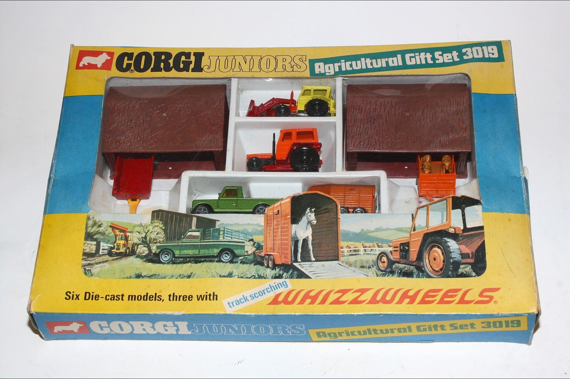 A superb example of this hard to find Corgi Juniors agricultural gift set. All complete, appears unplayed with the 6 correct models in mint condition, please study the photos. Horse is in the horsebox and animals in trailer on sprue.