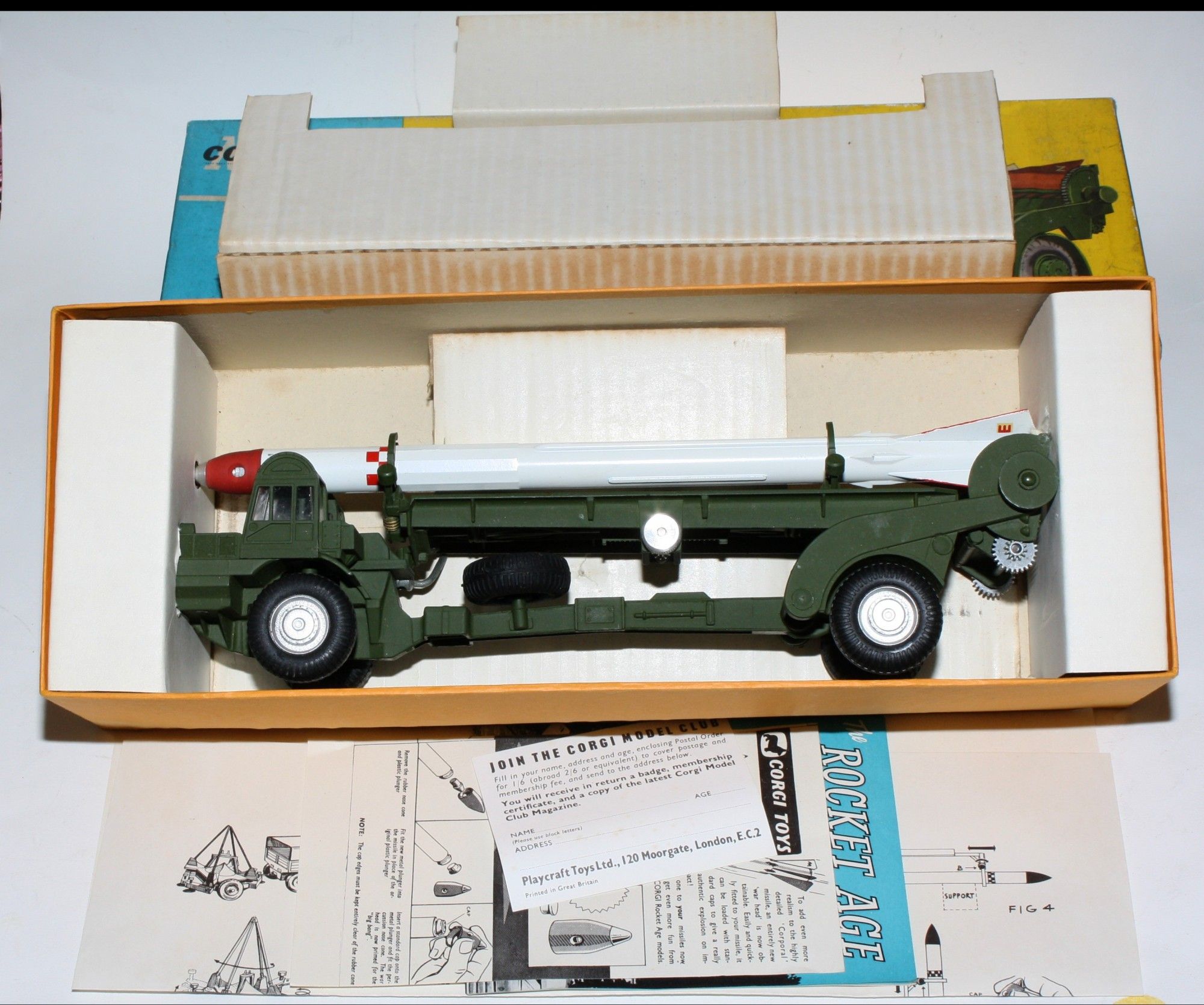 Comes in its original display box which is all complete and in excellent condition, slight signs of wear and some creasing . Inner plinth very good, a little damage to tray rear of transporter, original acetate window intact. Nice bright colours.