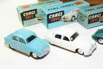 201 Austin Cambridge. Virtually mint with a couple of nicks and some paint discolouration to O/S doors, perfect original tyres and smooth hubs. Original box with one end flap missing with rubs and wear to edges.