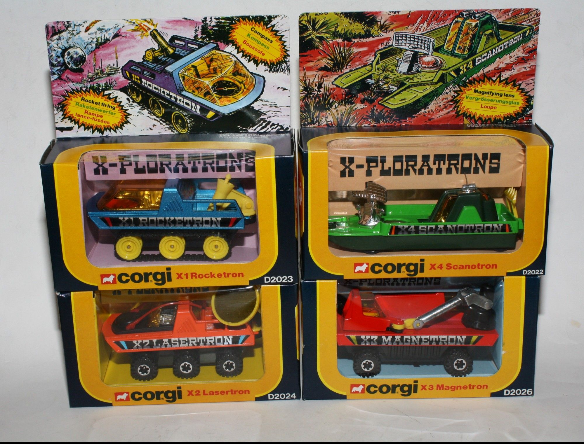 A wonderful set of all 4 X-Ploratrons all mint and having not been removed from boxes. Fast becoming collectible, these have all been taken from trade packs. I include a photo of the trade packs before opening for confirmation of origin. The listing for 1 x set of 4 models