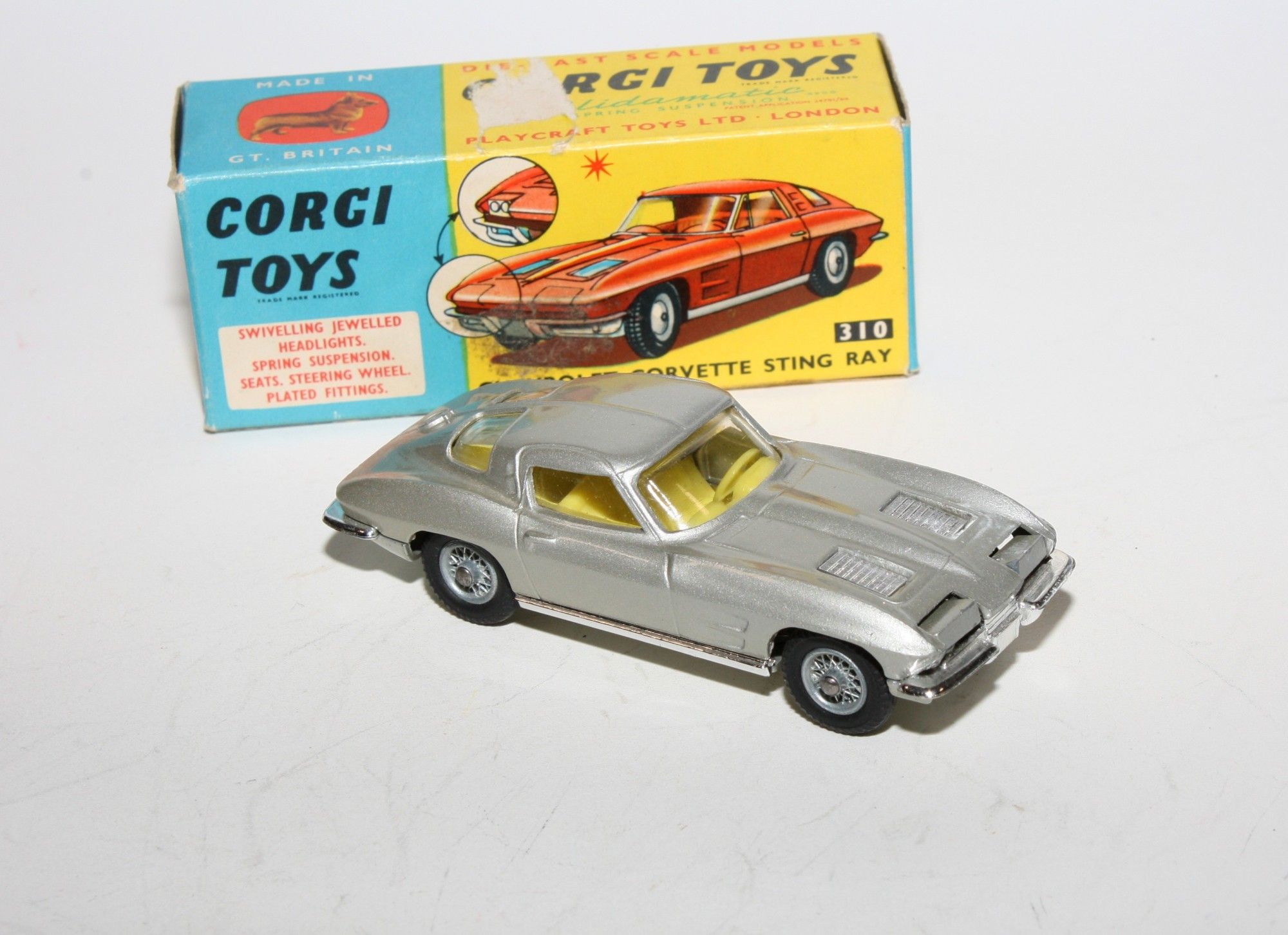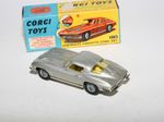 A superb example of this 1960's Corgi. Original harder to find gleaming silver paintwork is virtually mint, a couple of tiny marks to moving headlight covers, please study the photos for exact condition. Original tyres on spun hubs, perfect suspension, crystal clear windows and yellow interior, pop up jewelled headlights, good chrome, underside mint.