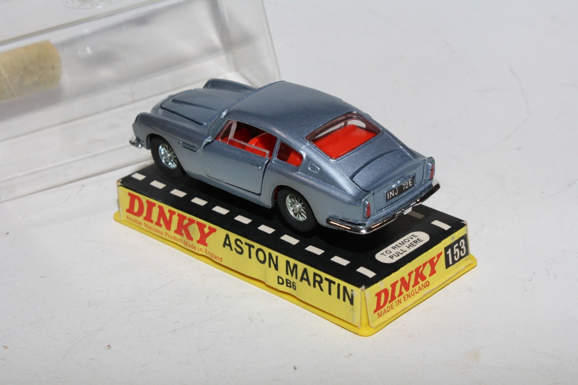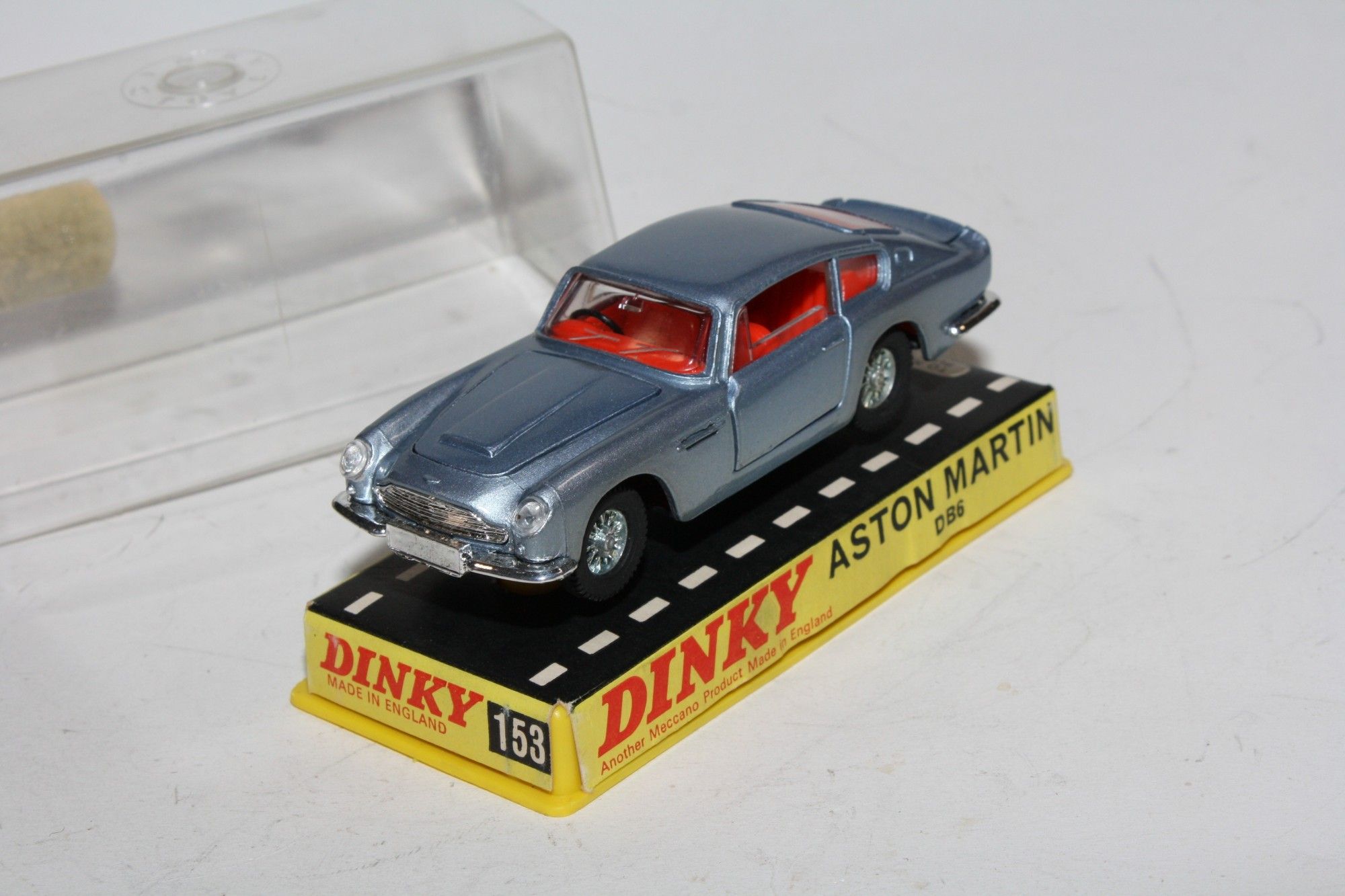 A superb example of this great Dinky model. Gleaming metallic blue paintwork is virtually mint, please study the photos for exact condition. Original tyres on cast spoked hubs, suspension and steering good, crystal clear windows, red interior with folding seats, year related number plates, excellent chrome, opening bonnet, boot and doors, plastic headlights.