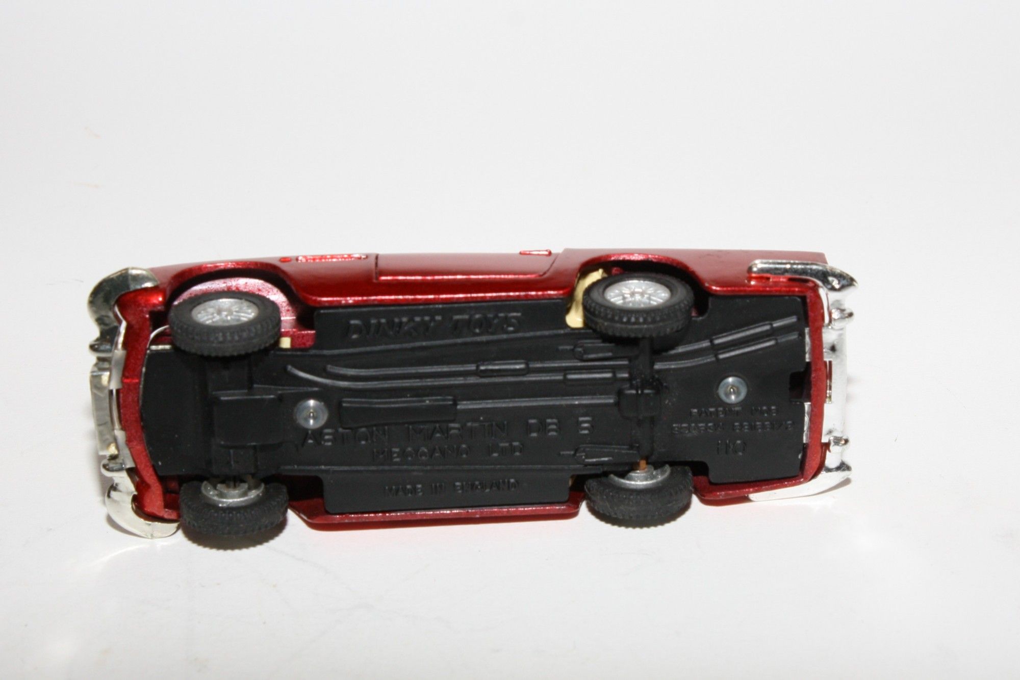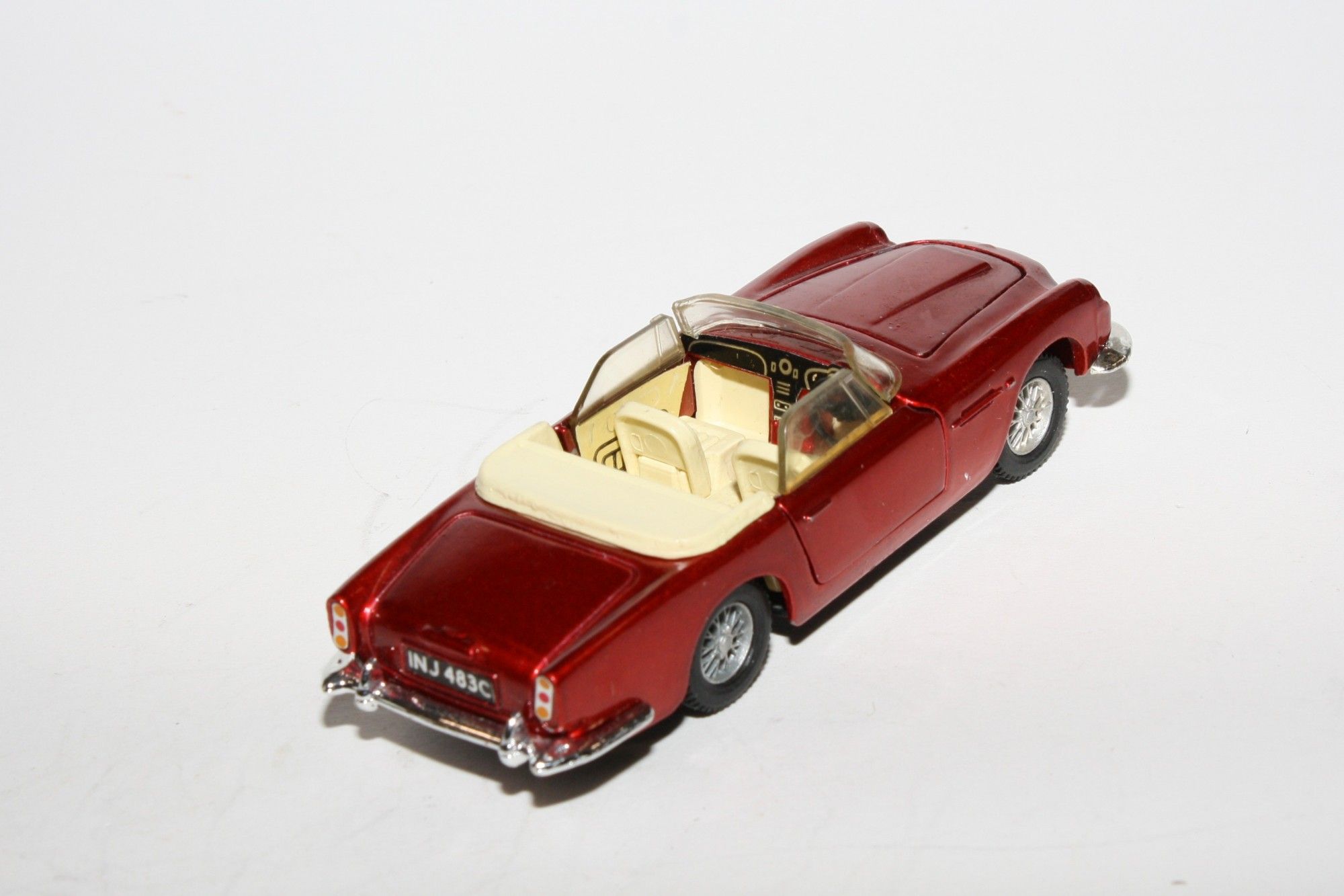 A lovely example of this great Dinky model. Gleaming original red metallic paintwork is near mint, small rubs to some raised edges, please study the photos for exact condition. Excellent original tyres on spoked hubs, suspension/steering perfect, crystal clear windows, cream interior, good number plates and perfect chrome, missing headlight lenses, baseplate mint.