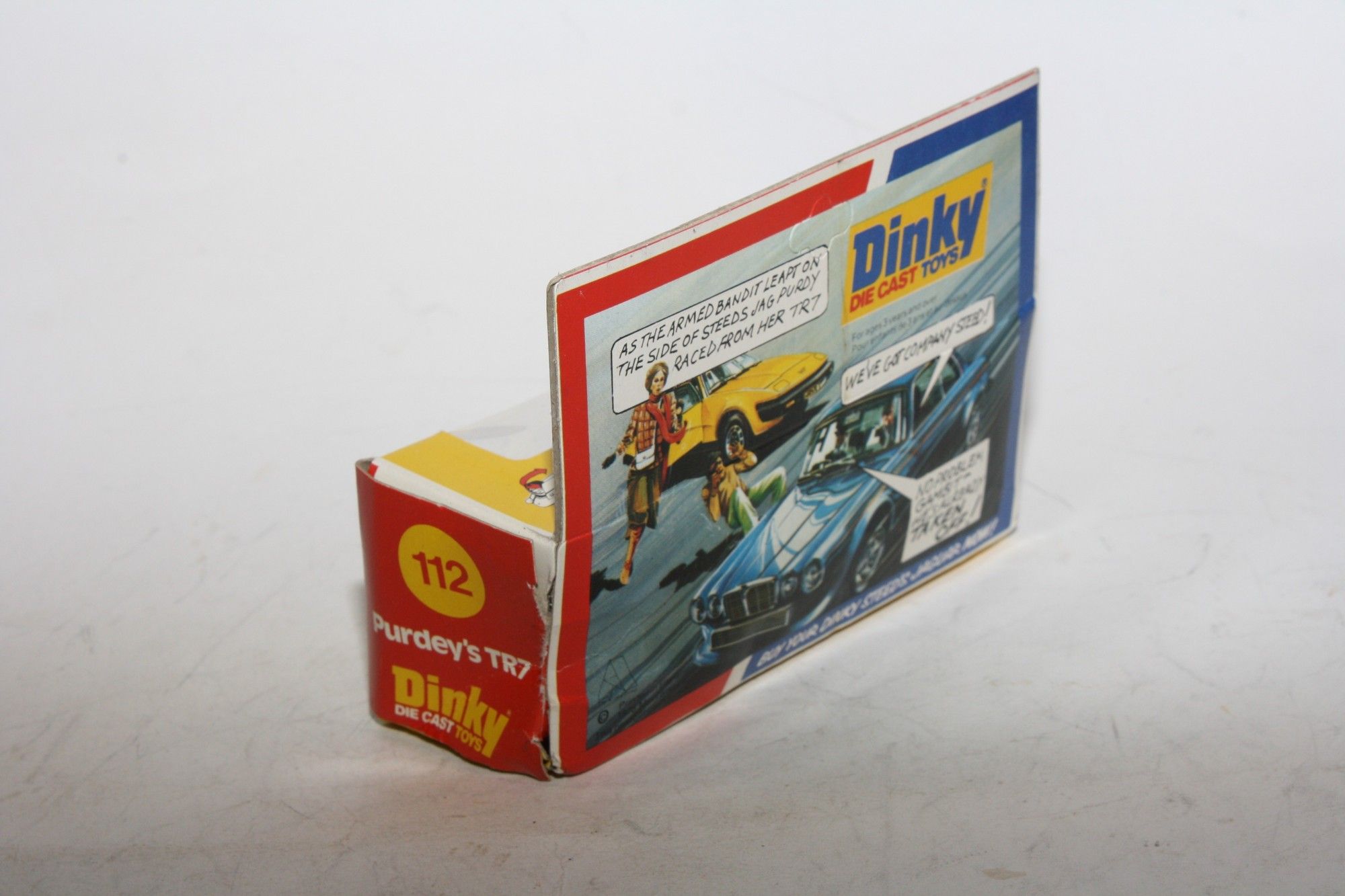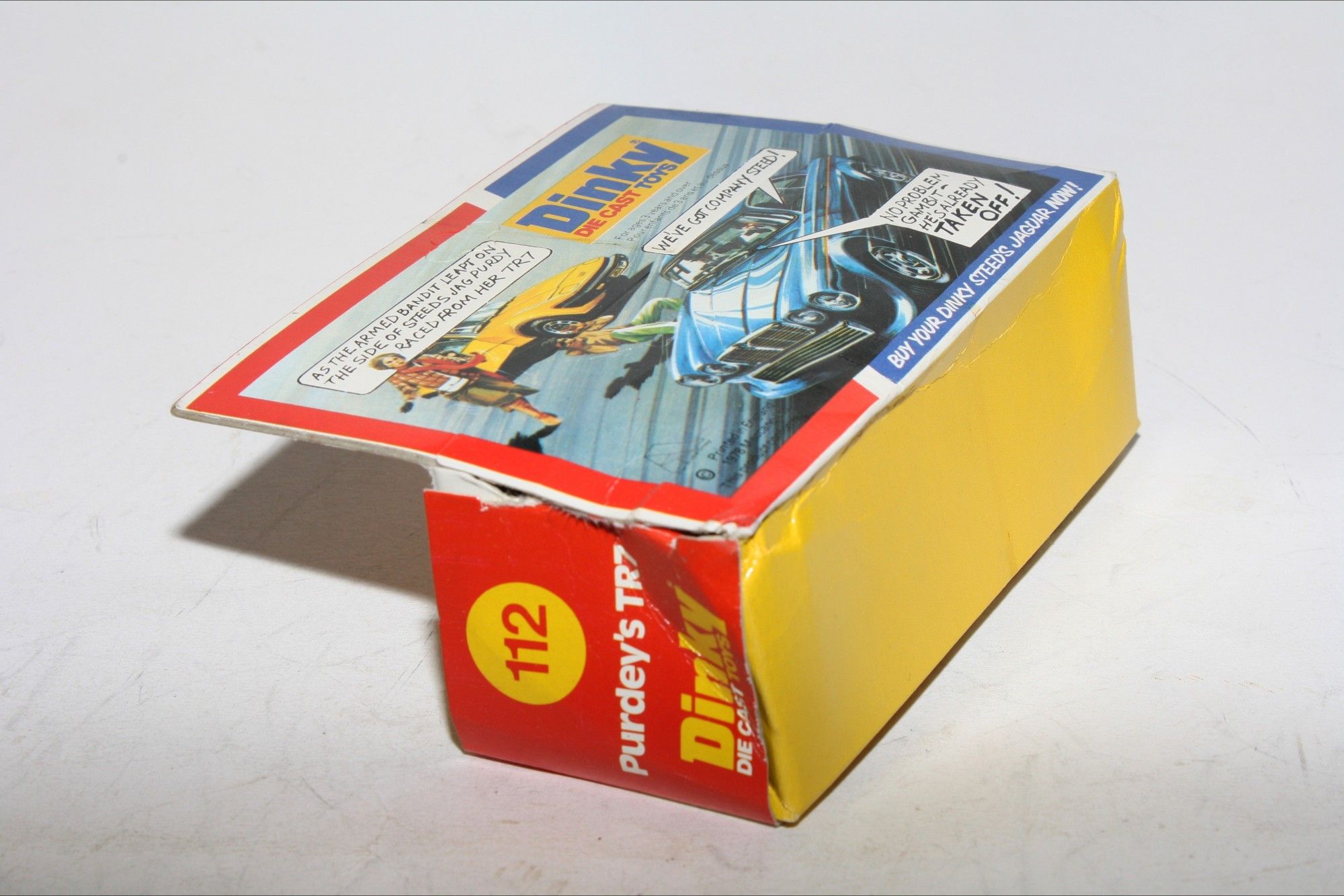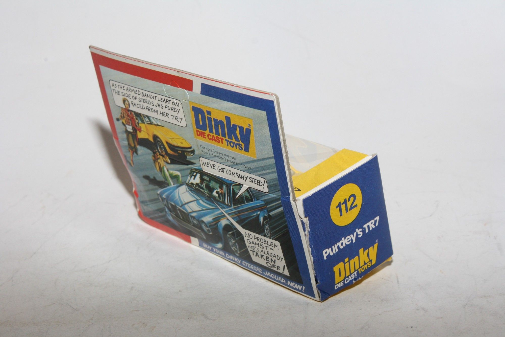 A rare opportunity to acquire this Purdy TR7's from the iconic New Avengers TV series in mint condition. Taken from a trade pack of 6, never opened. Unfortunately the trade pack was only polywrapped and this one got damage to the box in storage as can be seen. 4 out of the remaining 5 with mint boxes have been sold for much more.