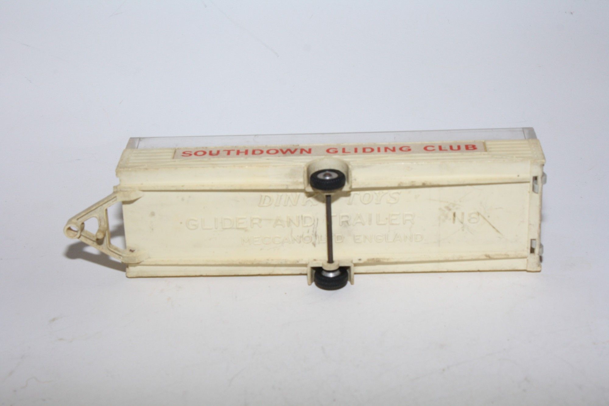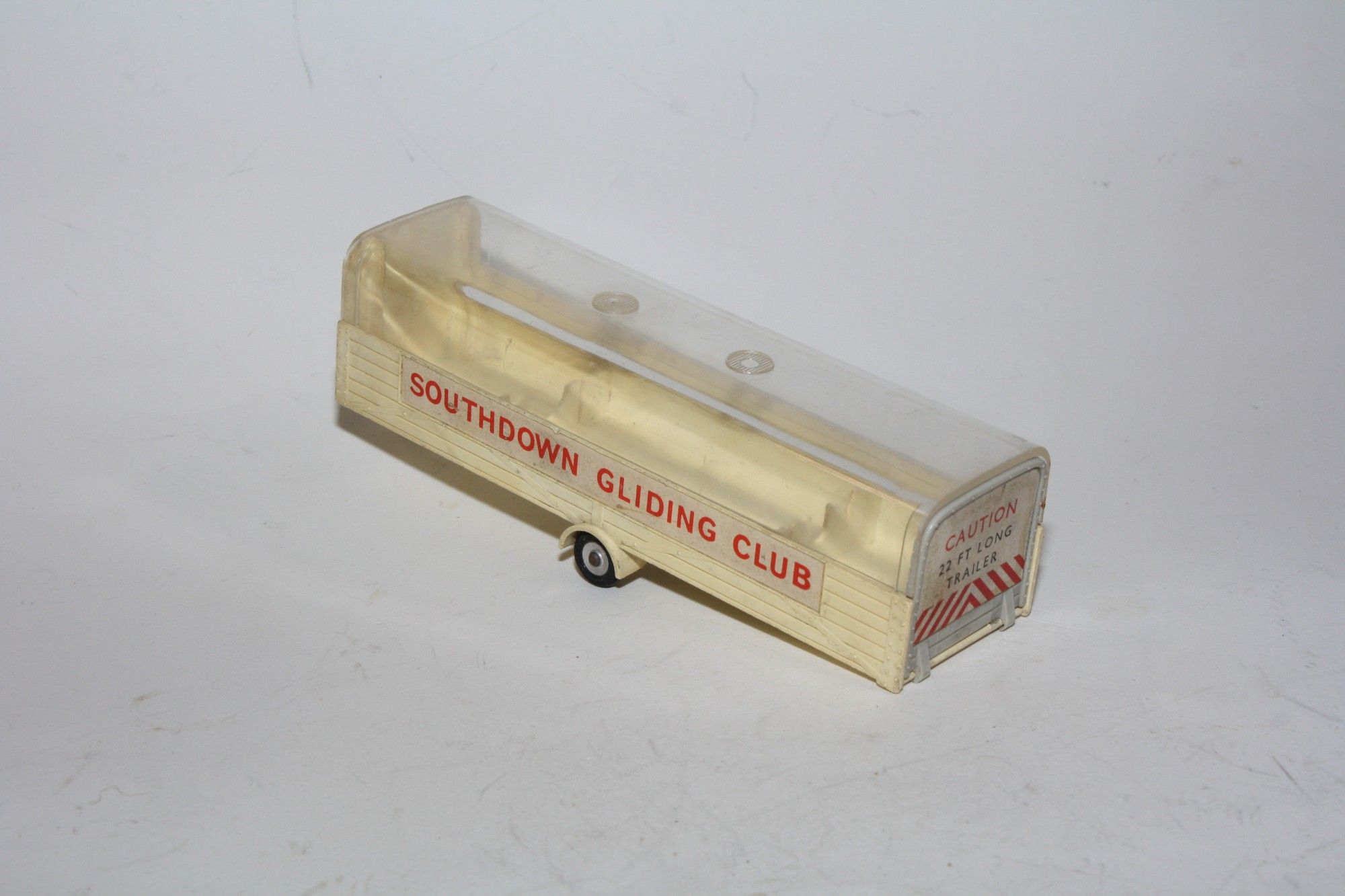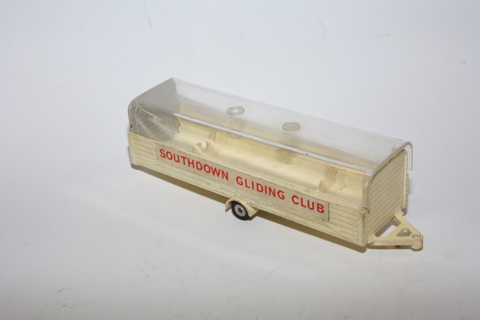 A nice example of this hard to find 1960's Dinky "Southdown Glider Club" trailer for the 118 Tow Away Glider Set which is in very good condition with clear canopy and intact draw bar. Plastic hook not included. Ideal if you have this set with a damaged trailer. Underside all fine