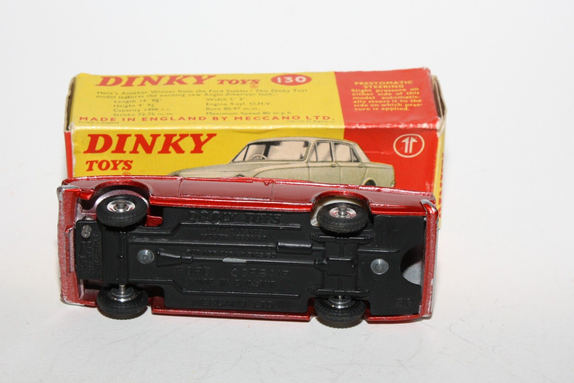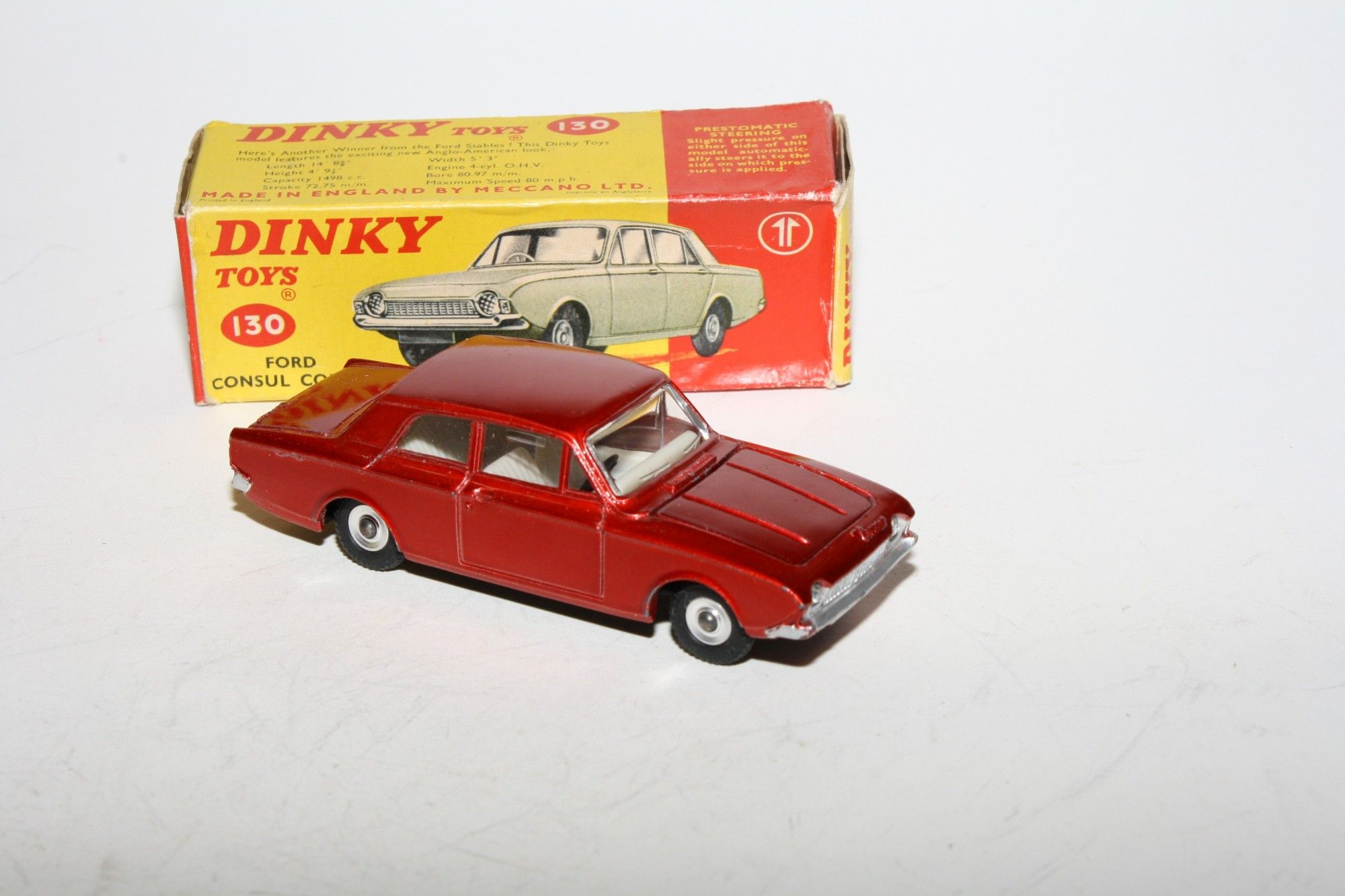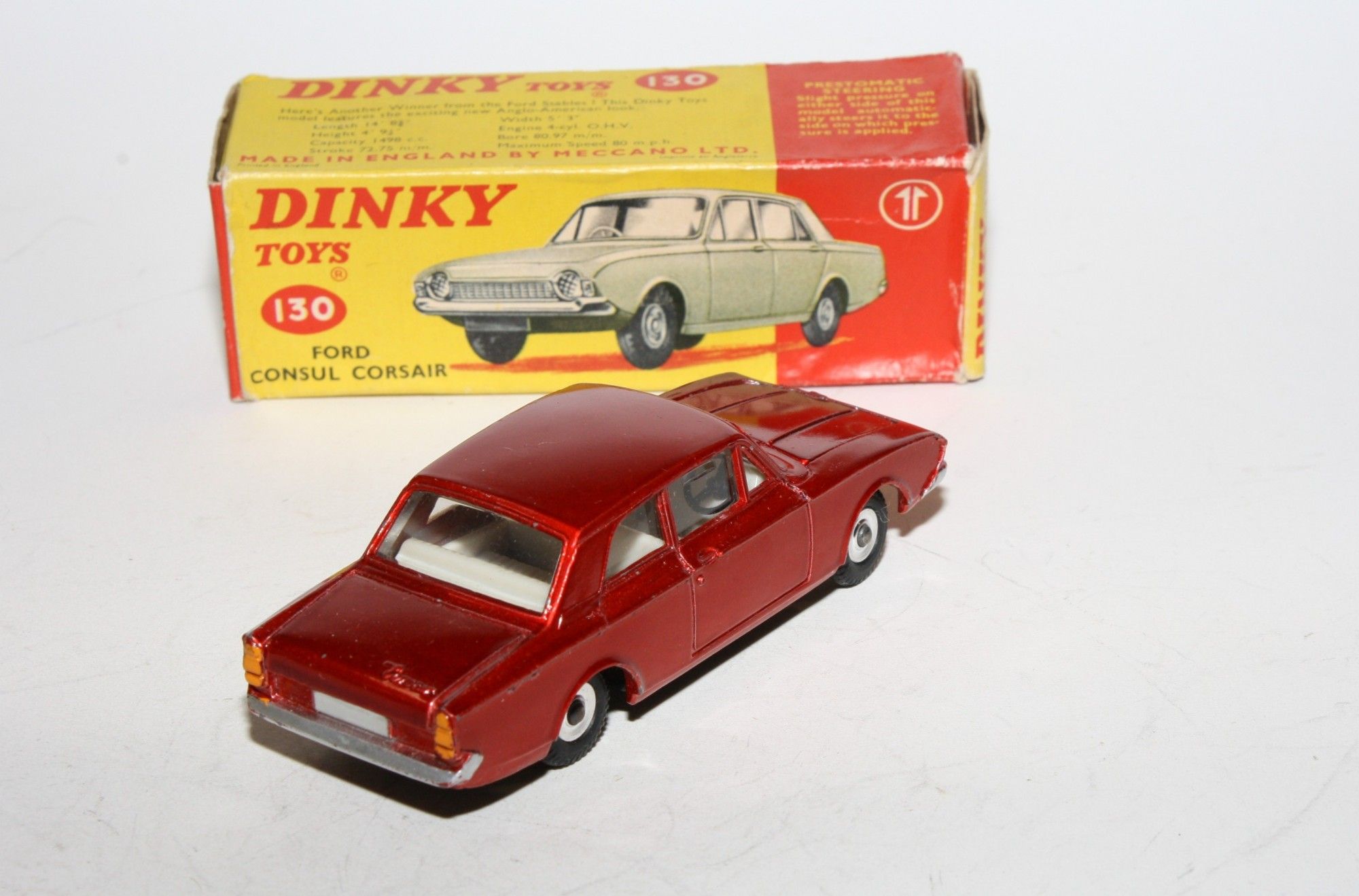 A lovely example of this 1960's Dinky model. Gleaming metallic red paintwork is near mint with tiny nicks to corners, please study the photos. Perfect original tyres on spun hubs, free rolling axles, good steering and suspension, crystal clear windows, sliding side windows, white interior, jewelled lights and bonnet opening button all fine. Excellent underside.