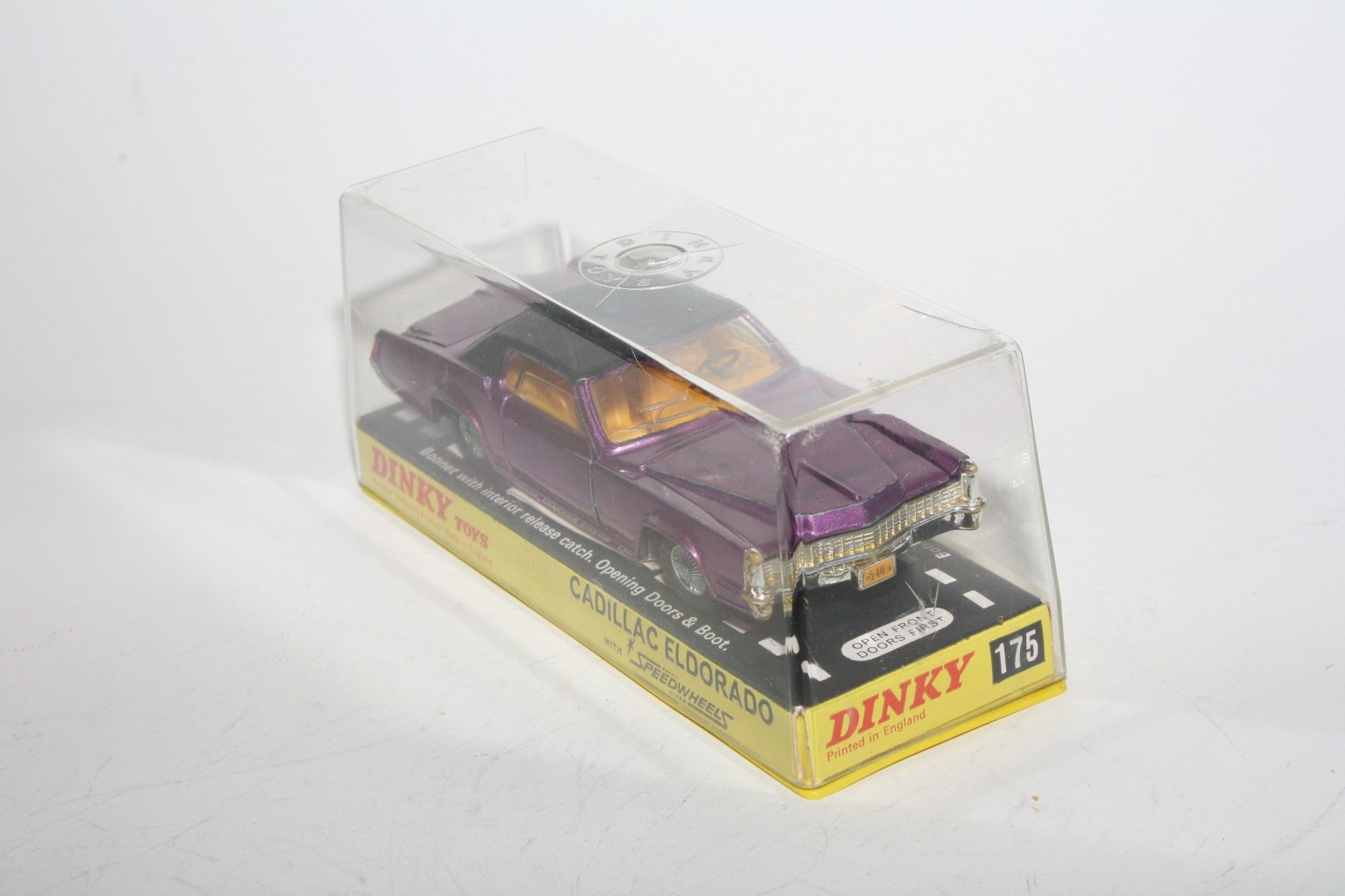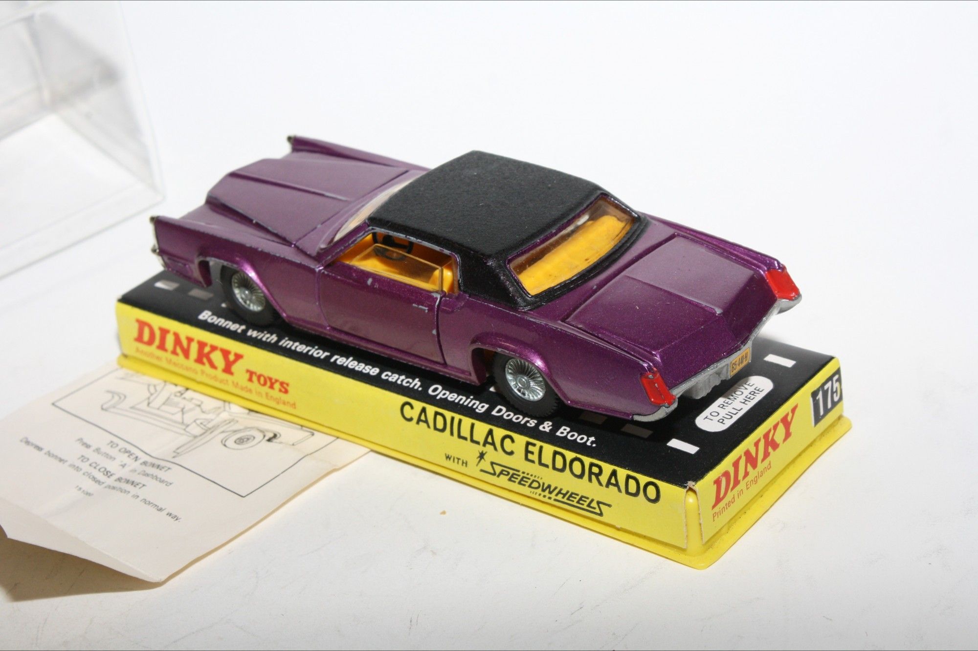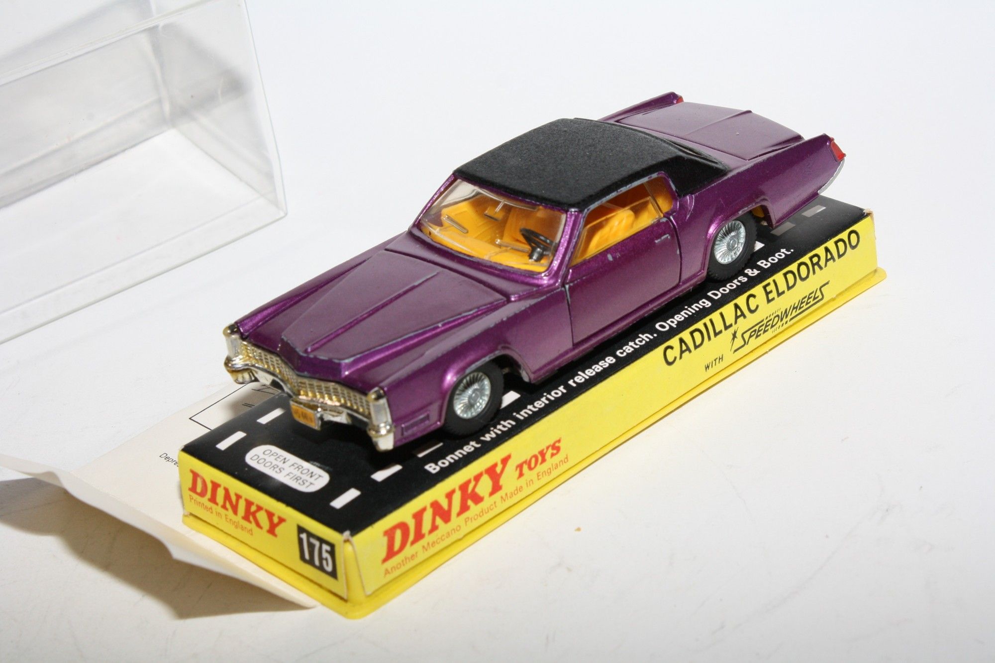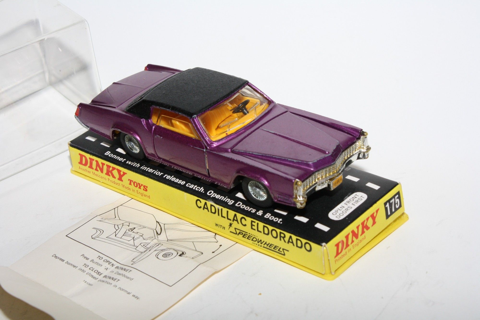 A good example of this great Dinky model. Original purple paintwork is excellent, some wear to some edges with a few nicks/chips, please study the photos for exact condition. Original tyres on cast hubs, suspension perfect, crystal clear windows, orange interior, good number plates and perfect chrome, baseplate mint.