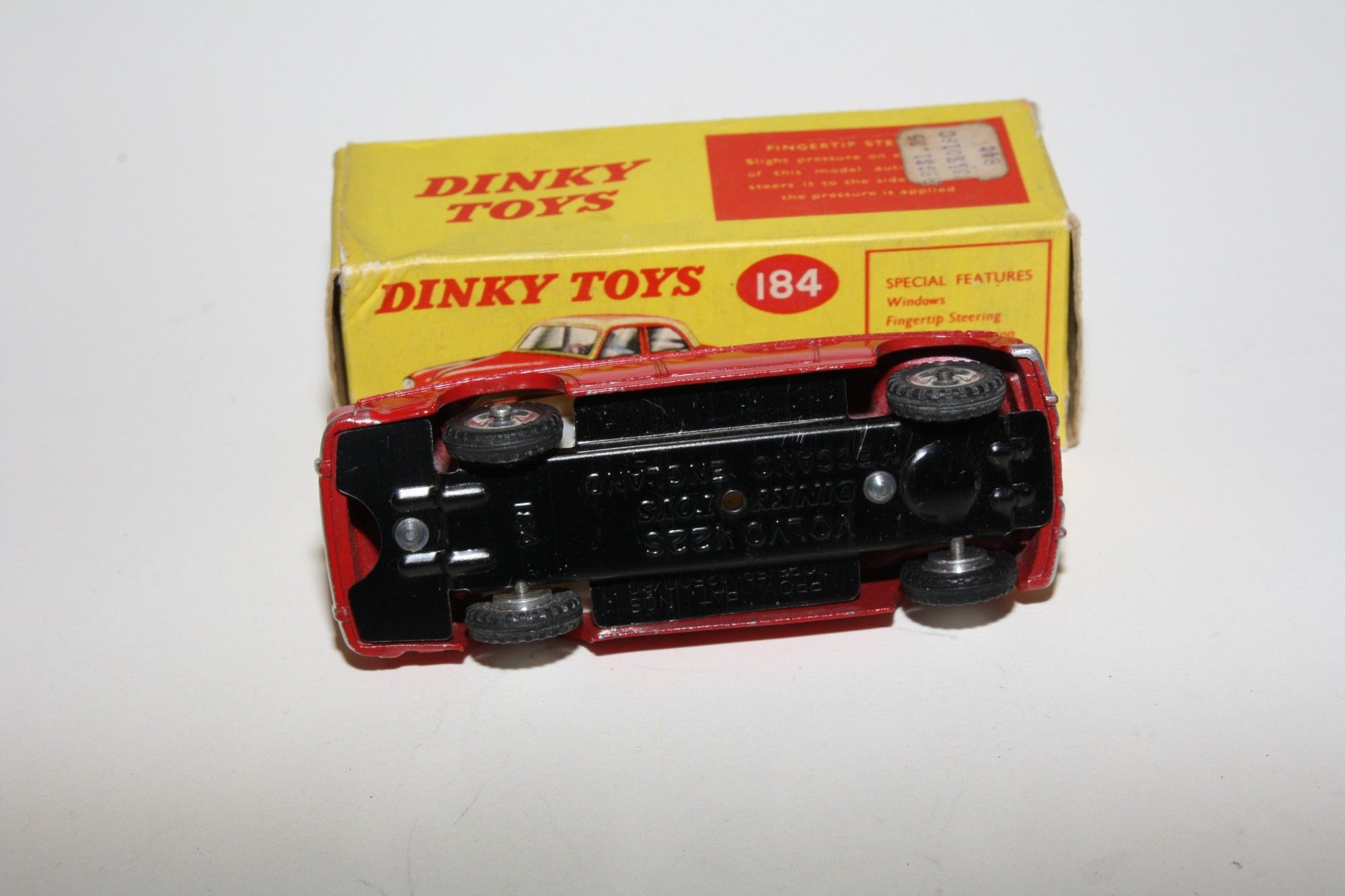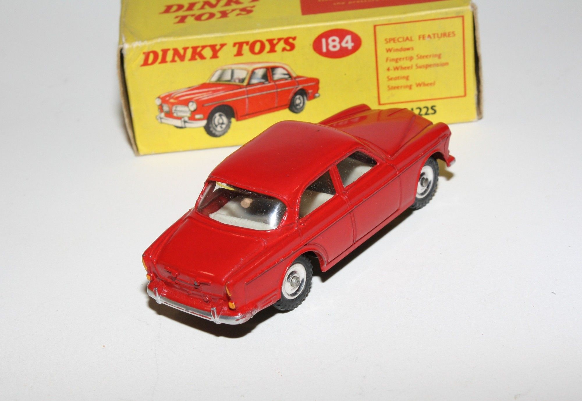 A stunning example of this beautiful 1960's Dinky model. Gleaming original red paintwork is virtually mint, just a couple of fleabites on raised edges, please study the photos. Original tyres on spun hubs, perfect free rolling axles, good steering and suspension, crystal clear windows, white interior. Mint tin underside.