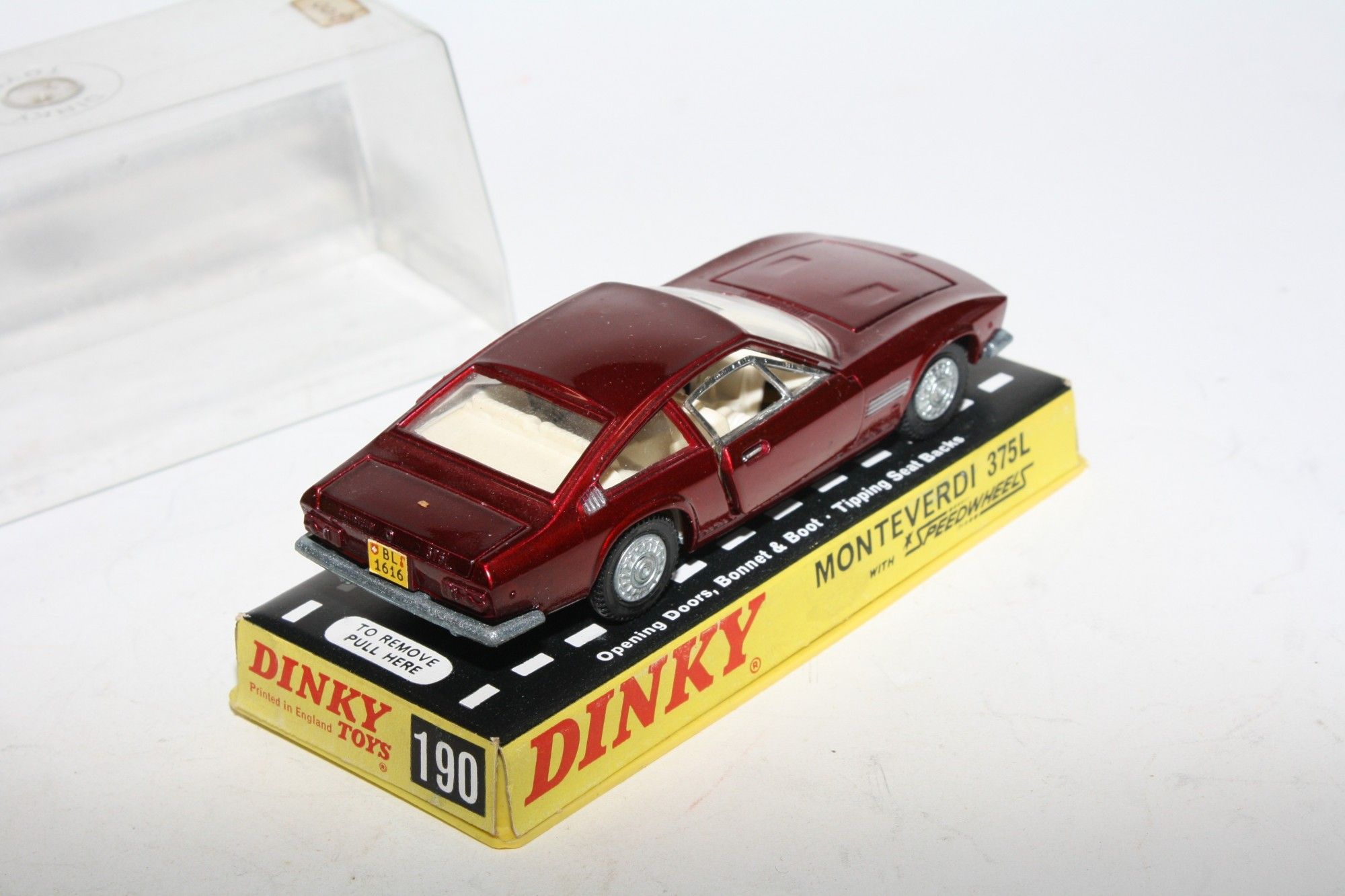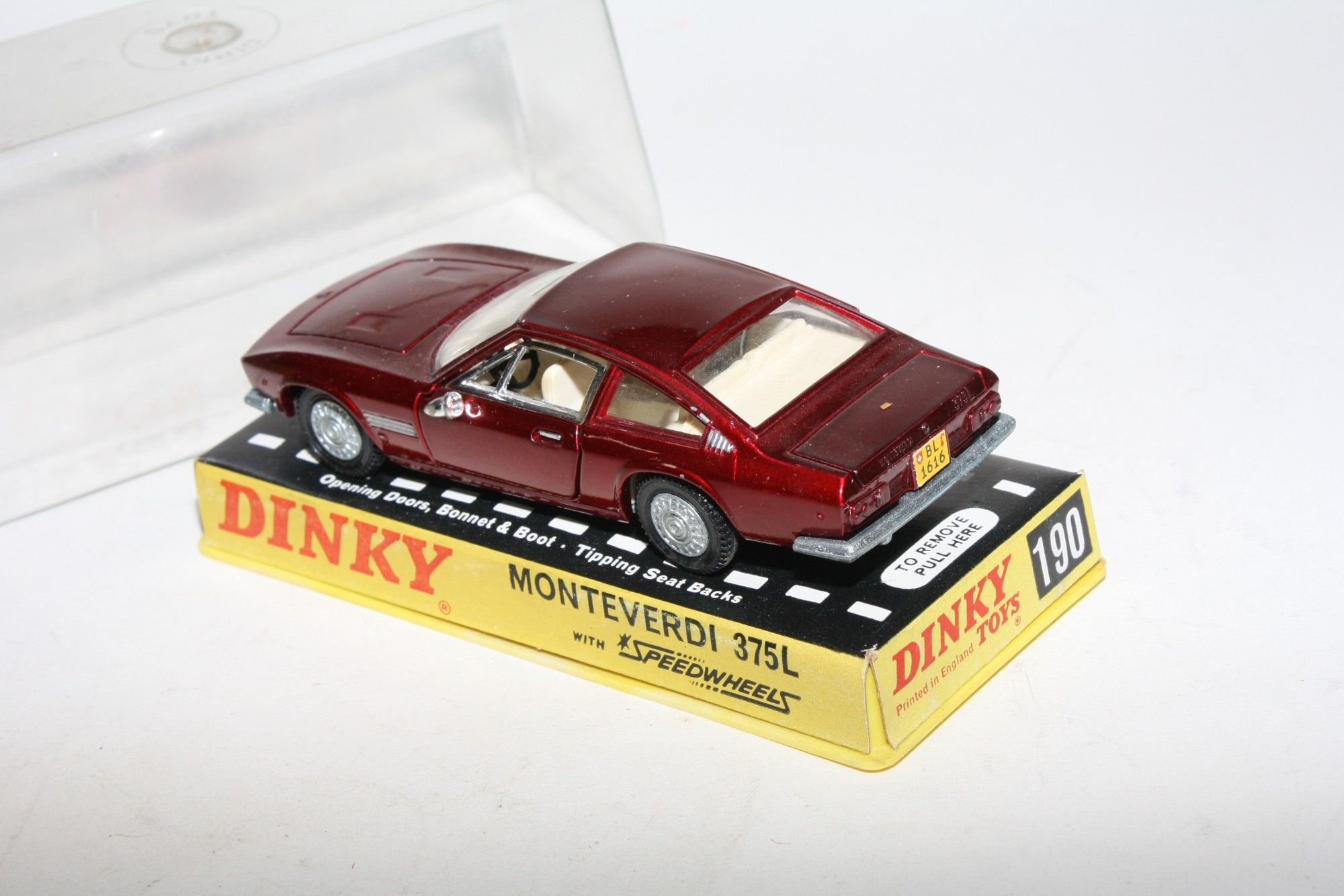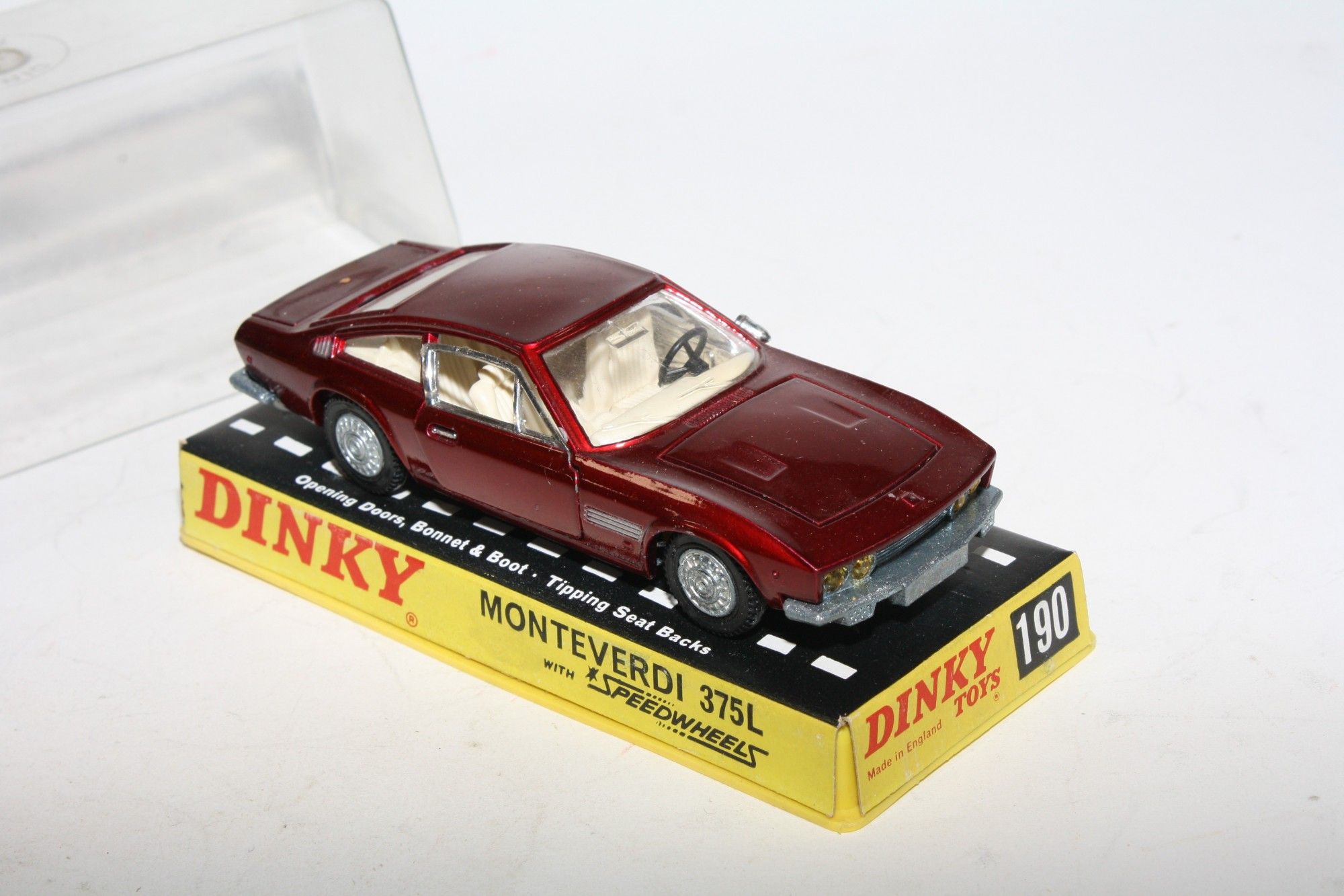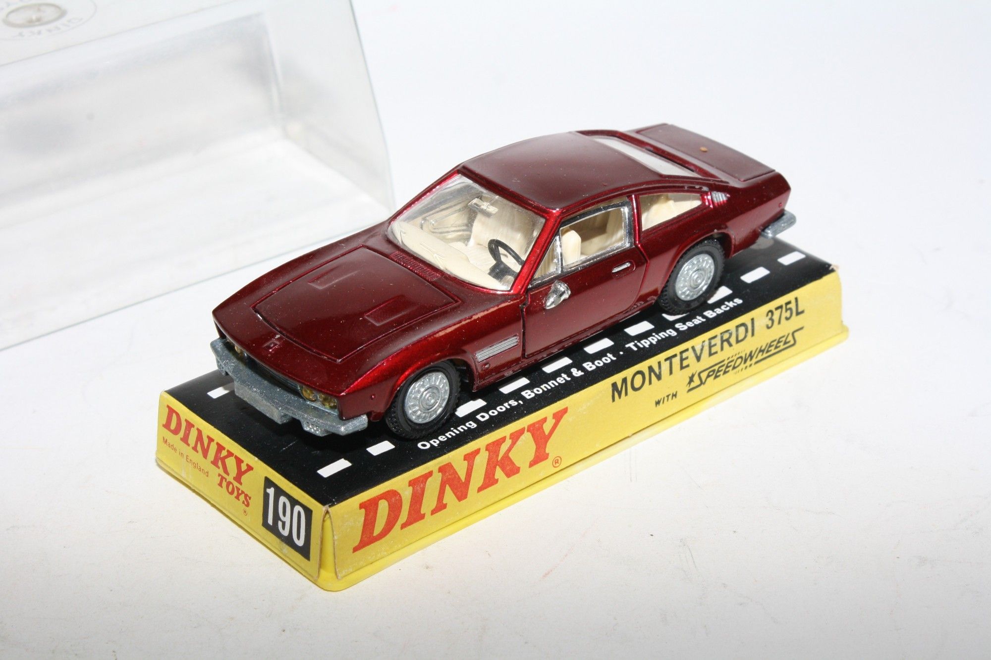 A superb example of this great Dinky model. Gleaming original metallic red paintwork is virtually mint with just a couple of flake fleabites, please study the photos for exact condition. Original tyres on cast hubs, suspension perfect, crystal clear windows, white interior, mint Swiss plate and Mercedes emblems, jewelled headlights, chrome mirror present, baseplate mint.