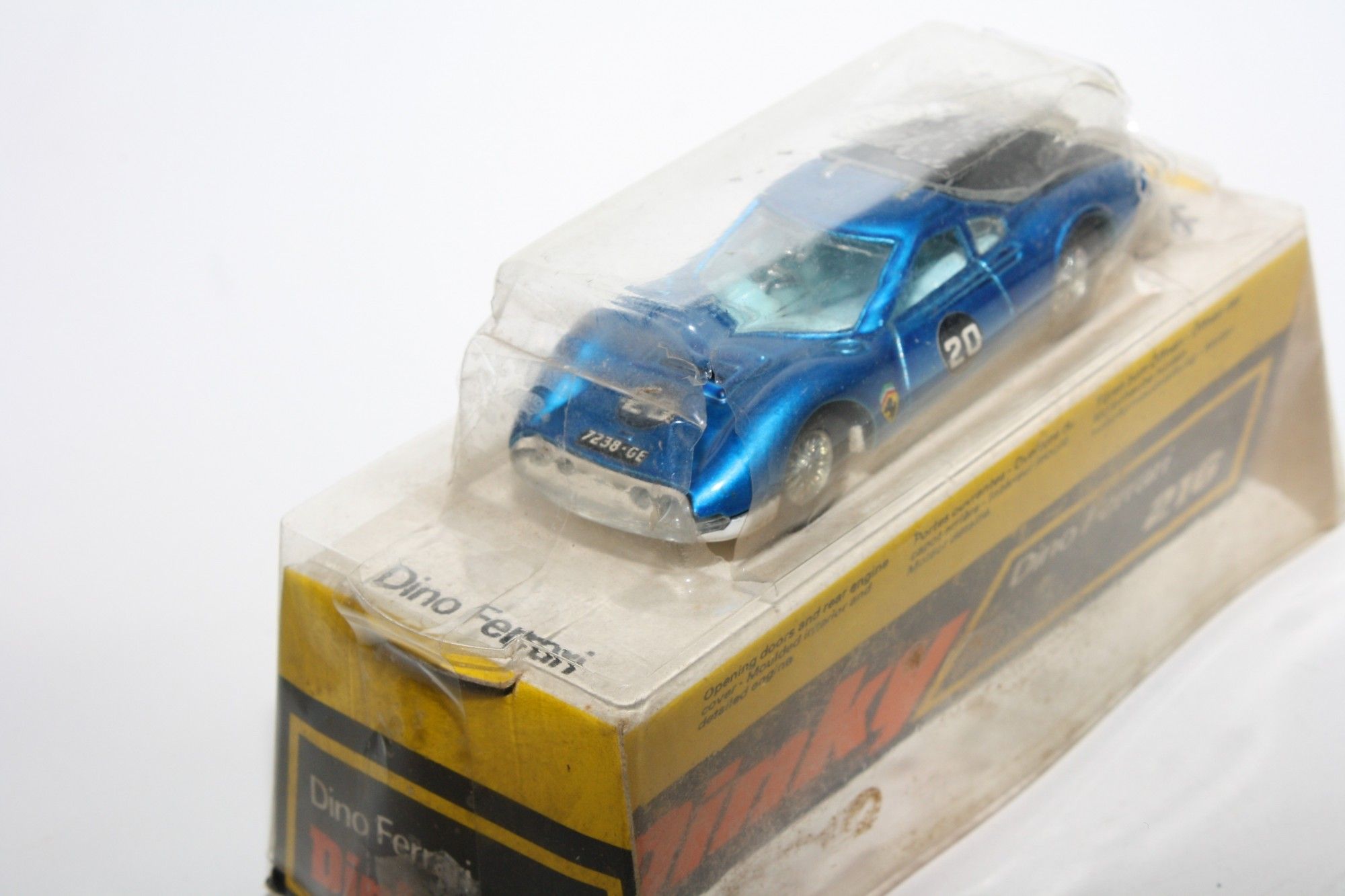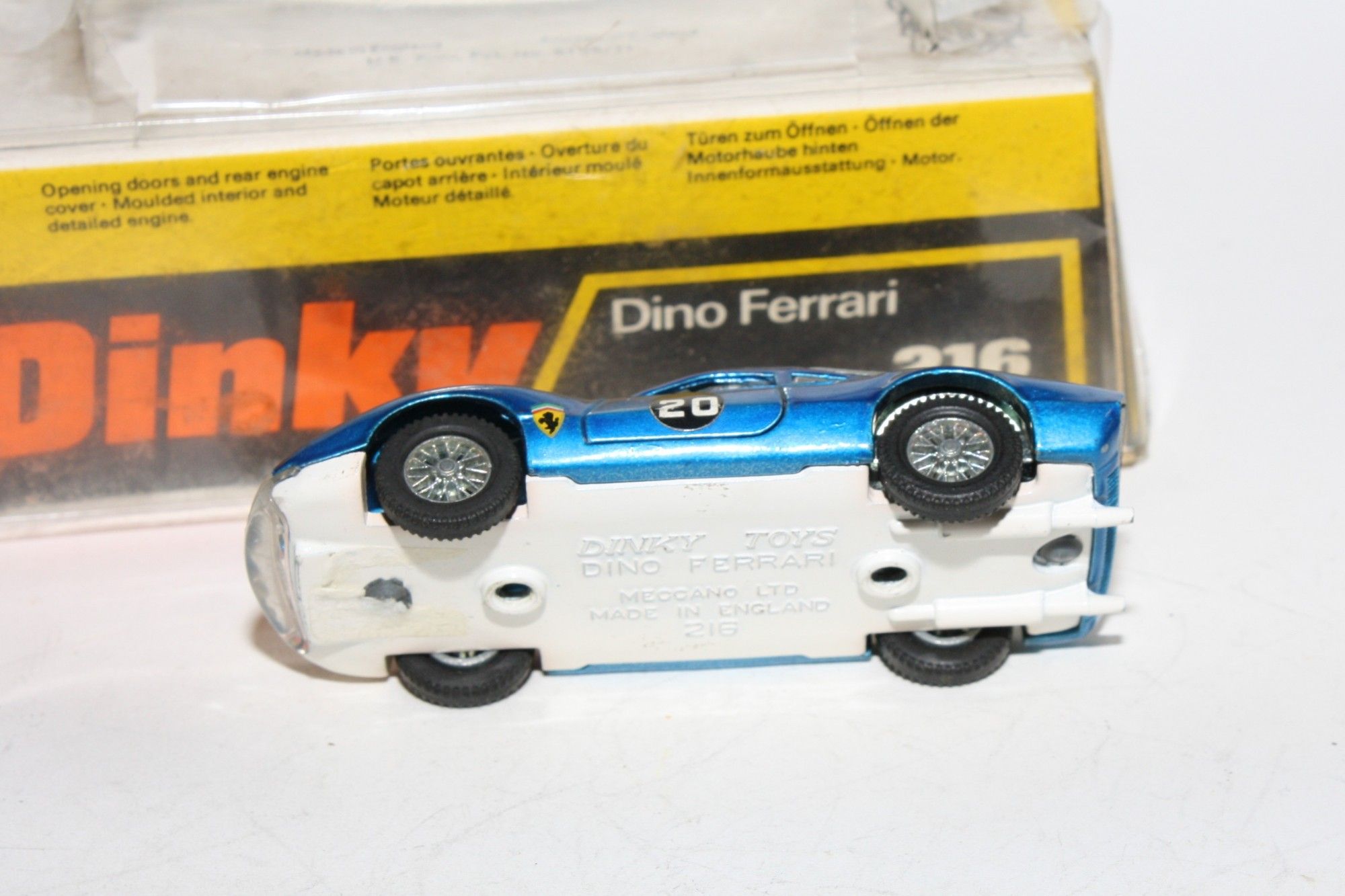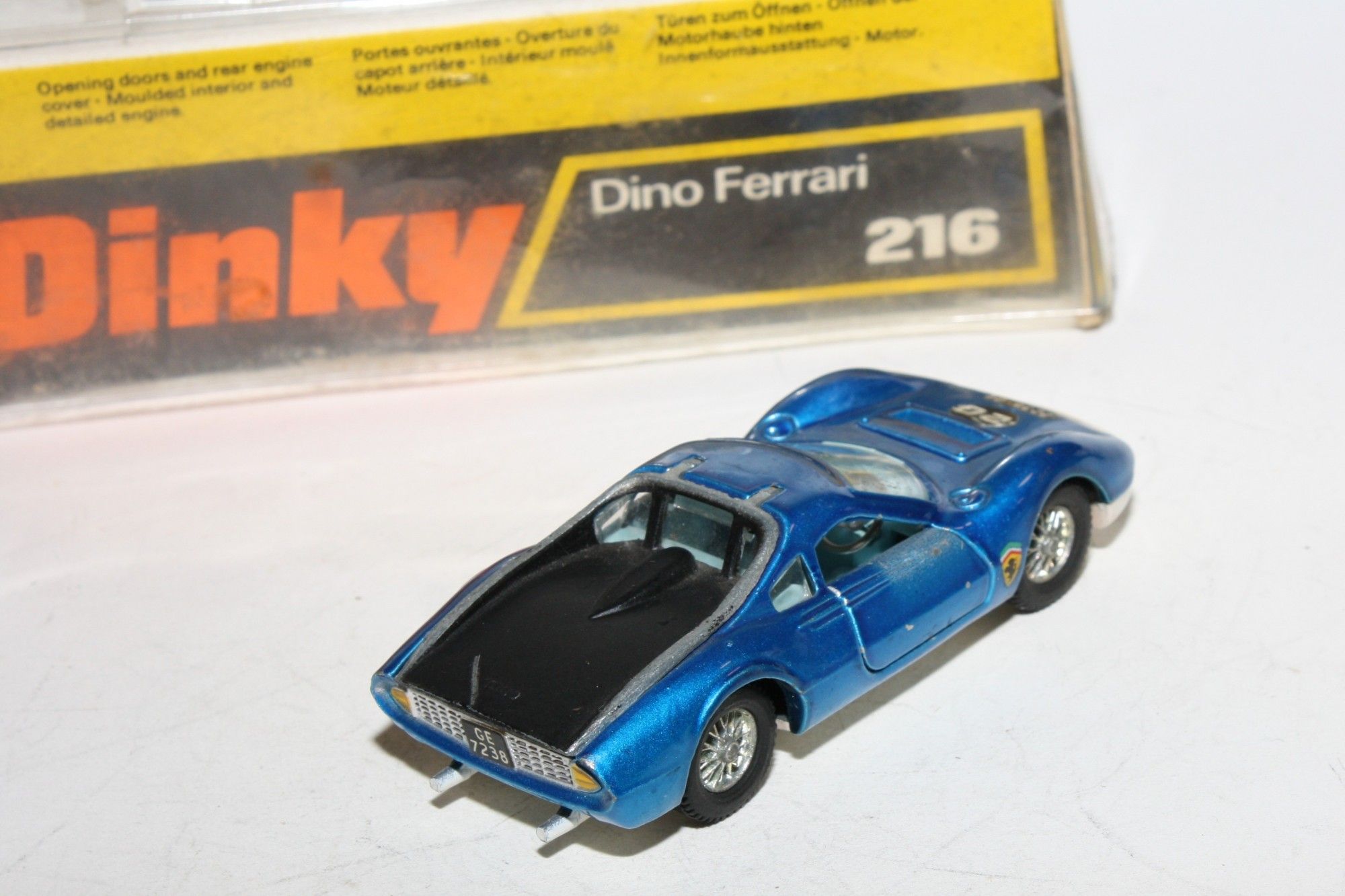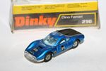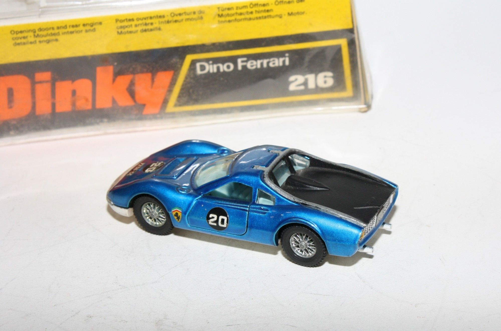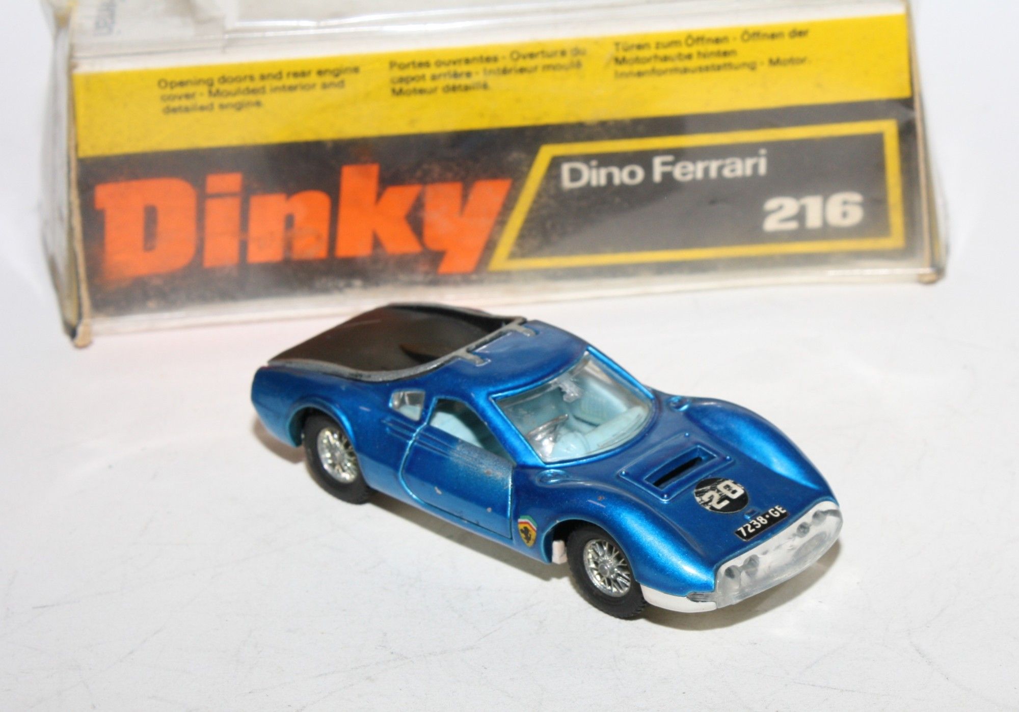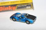 A superb example of this great Dinky model. Original paintwork is very good but with a couple of nicks, a factory spray error to one door and a scratch to black engine cover, please study the photos for exact condition. Original tyres on cast spoked hubs, free rolling axles, crystal clear windows, pale blue interior, good original Italian number plates, perfect decals, baseplate fine.