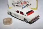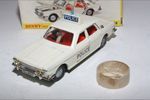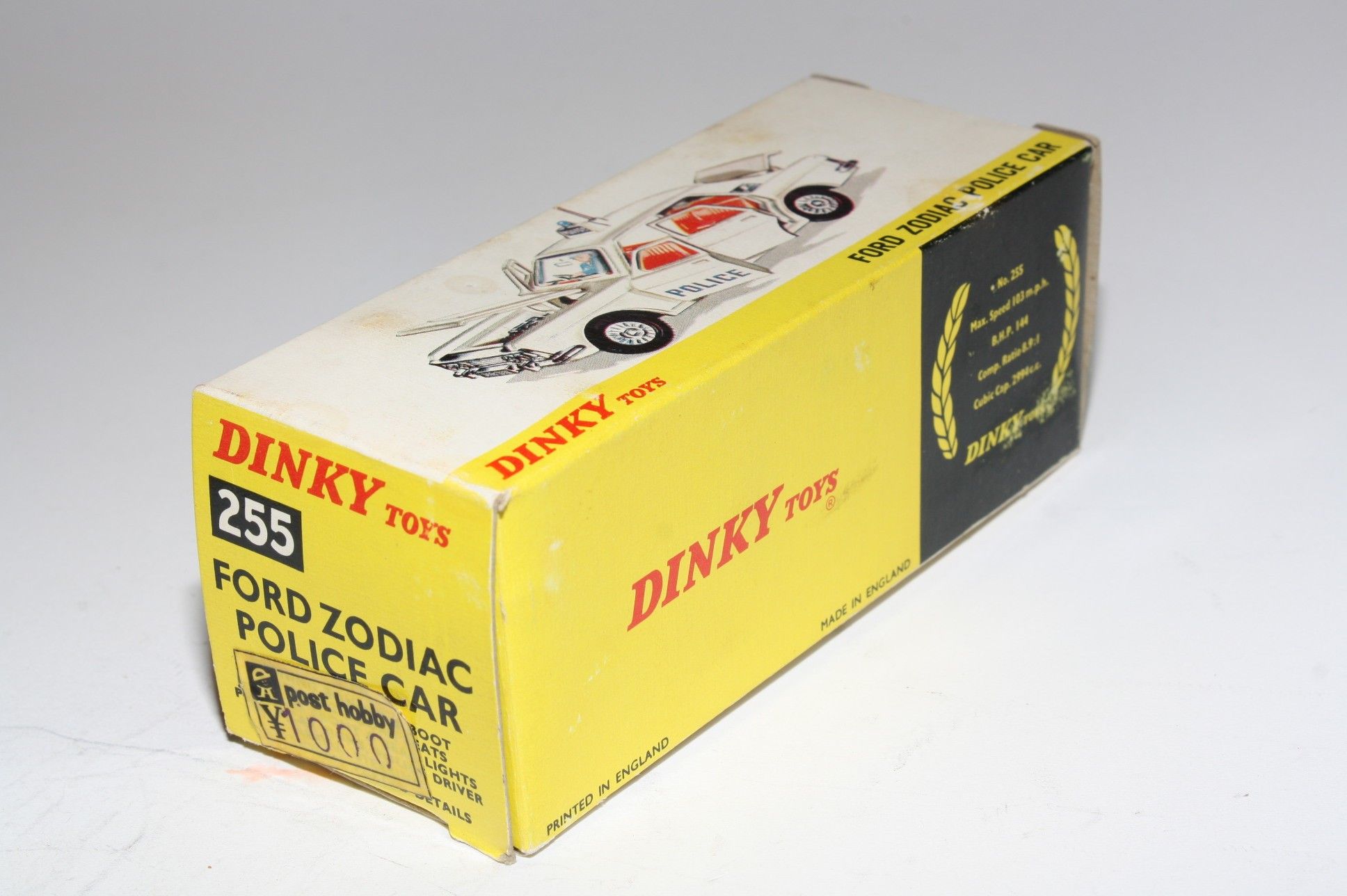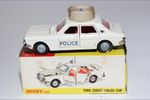 A superb example of this great Dinky Police car. White paintwork is very near mint with just a few tiny rubs, appears unplayed with, please study the photos for exact condition. Original tyres on cast hubs, suspension and steering all fine, crystal clear windows, red interior with police figure present. Roof aerial (original) sealed in protection ring and sign perfect, all jewelled lights front and rear present with excellent chrome and mint number plate stickers. Underside mint