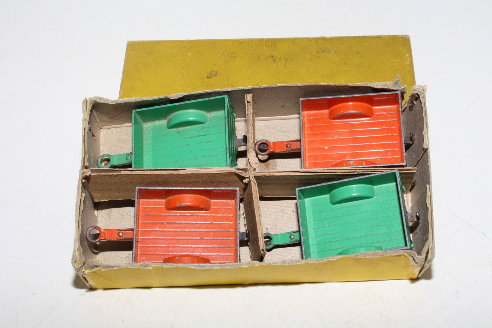 A good trade pack containing 4 Land Rover trailer models, 2 x green with green hubs and 2 x orange with red hubs. All are complete with original tyres. Please study the photos for exact condition.